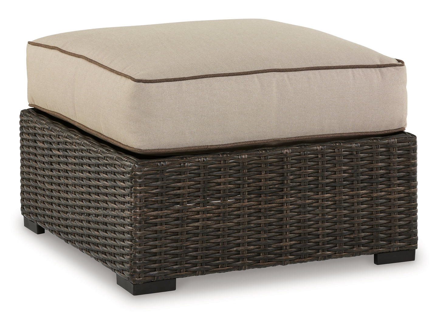 Who says the great outdoors isn’t made for luxury living? This cushioned ottoman offers all the high-end design, plush comfort and durability you could ask for, and then some. Its all-weather, rust-proof aluminum frame provides the easy-breezy wicker look you love without the high maintenance. Rest assured, the high-performing Nuvella® fabric is made to stand up to the elements.