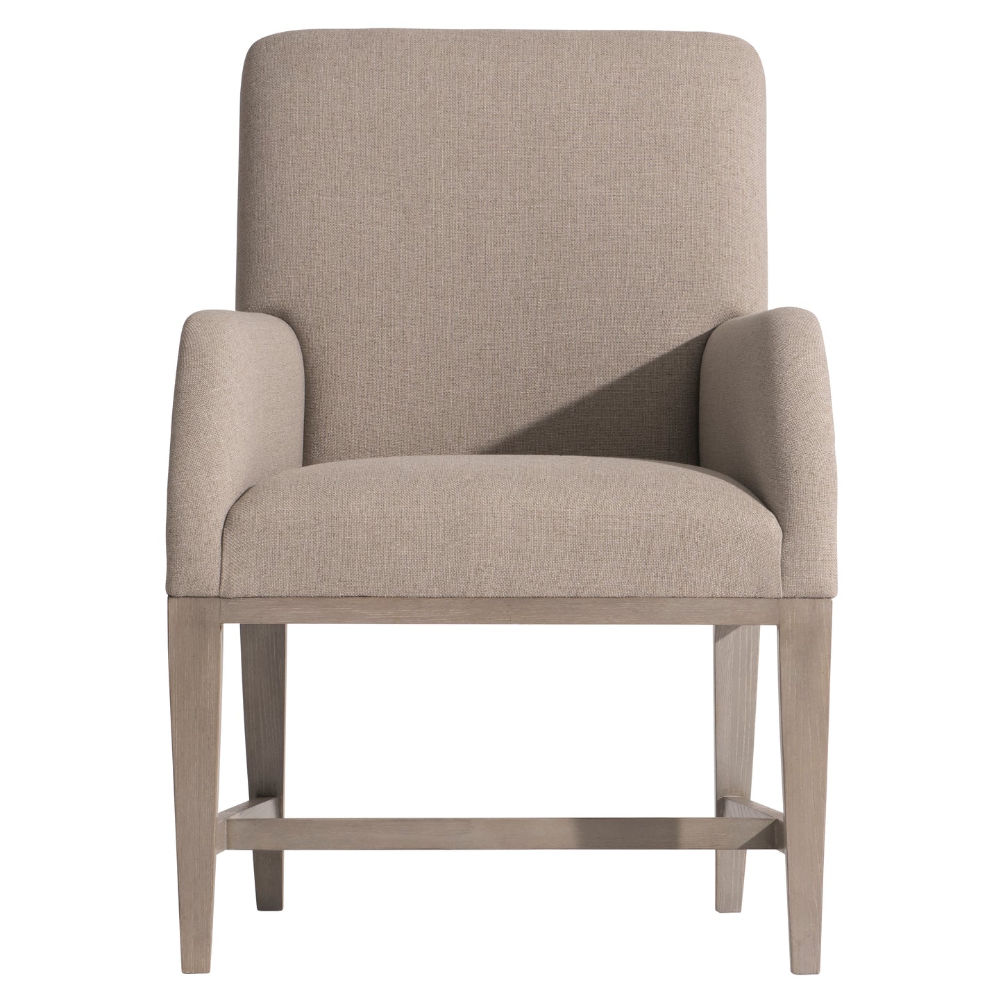 The Cornelia arm chair combines graceful lines and the comfort of upholstery for a chic arm chair. The exposed wood base offers curved lines on the back with straight lines at the front. Featured in the Nebbia finish.