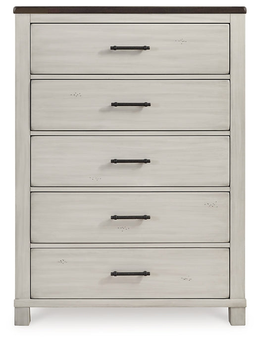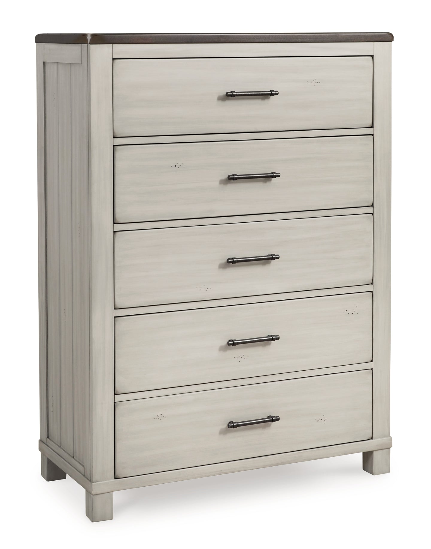 Make a farmhouse-inspired statement with this chest of drawers. Beautifully crafted to stand the test of time, the planked effect and clean two-tone finish lend a relaxing vintage feel. The felt-bottom top drawer adds a touch of luxury for the ultimate tasteful bedroom.
