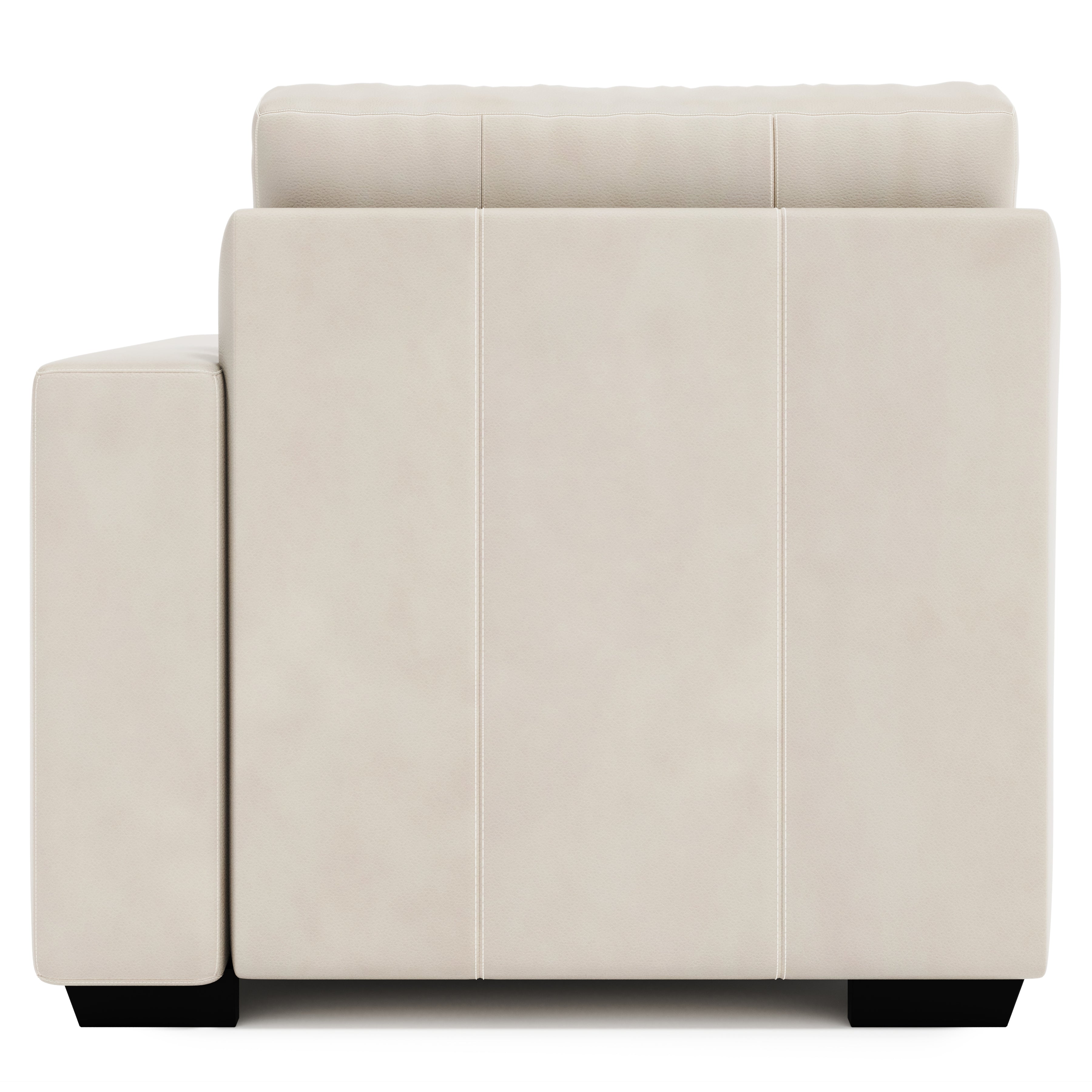 (1) Fiber Back pillow attached with velcro-box edge weltless with topstitch. (1) Luxe Leather seat cushion. Sinuous Spring.