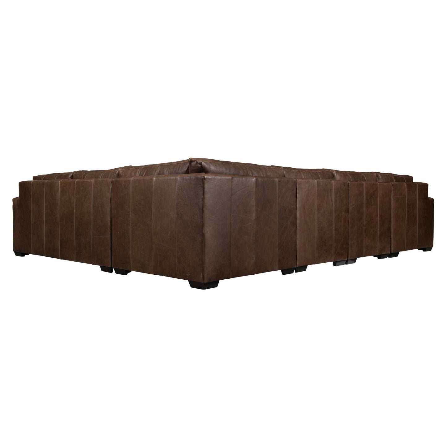 Dressed in luxurious top-grain leather, the Dawkins sofa offers casual comfort with a high-end look. The timeless modern design features wide track arms and tapered block feet, available in a variety of wood finishes. Plush cushions and fiber back pillows make this sophisticated sofa the perfect place to lounge in style.