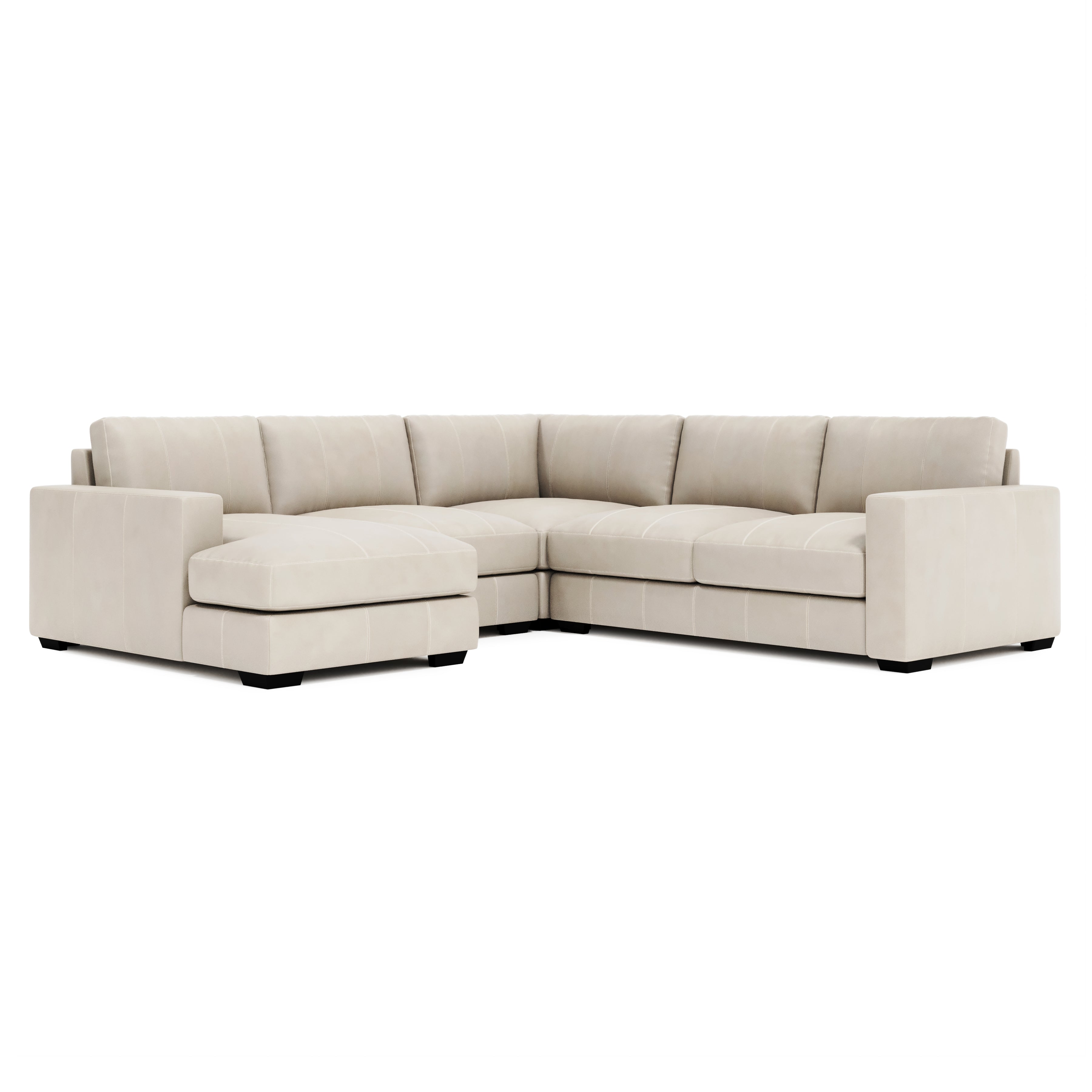 Dressed in luxurious top-grain leather, the Dawkins sofa offers casual comfort with a high-end look. The timeless modern design features wide track arms and tapered block feet, available in a variety of wood finishes. Plush cushions and fiber back pillows make this sophisticated sofa the perfect place to lounge in style.