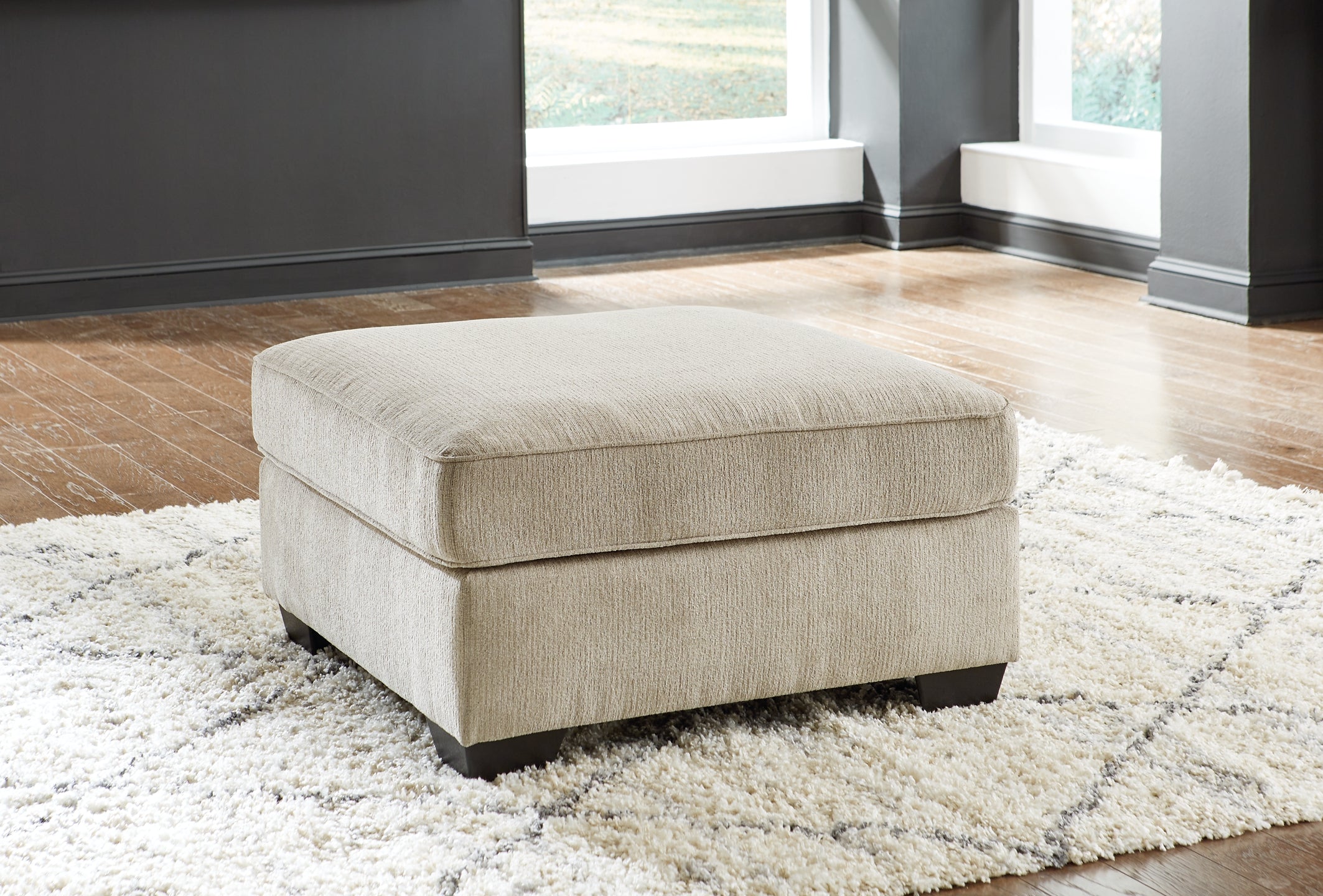 If you're looking for a richly neutral sense of style with clean-lined, contemporary flair, you can't miss with this oversized ottoman. Wrapped in a lovely light taupe chenille upholstery that feels every bit as good as it looks, the simply chic accent ottoman has a warm and cozy appeal with a decidedly modern aesthetic. Top it off with a serving tray and it makes a posh alternative to a traditional coffee table.