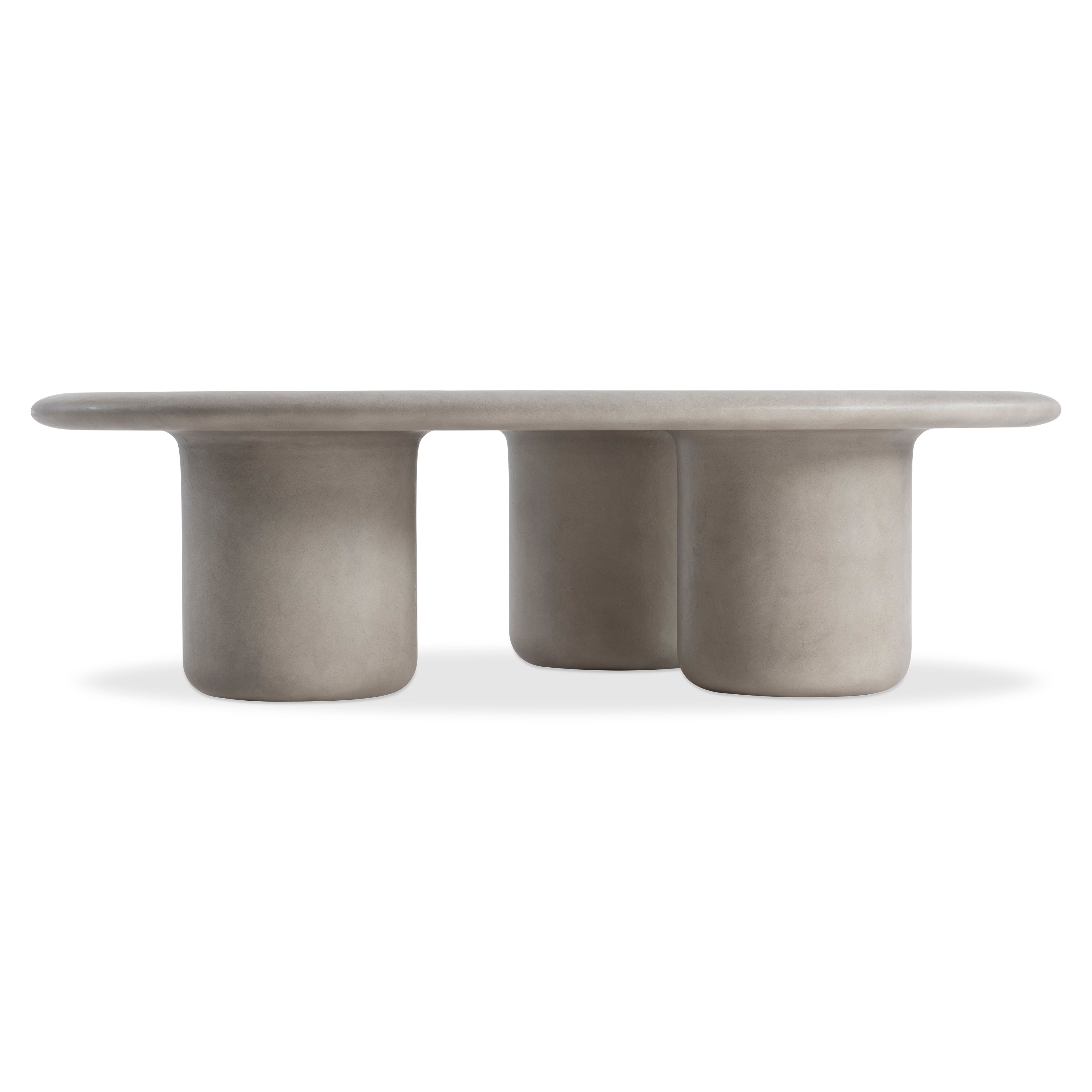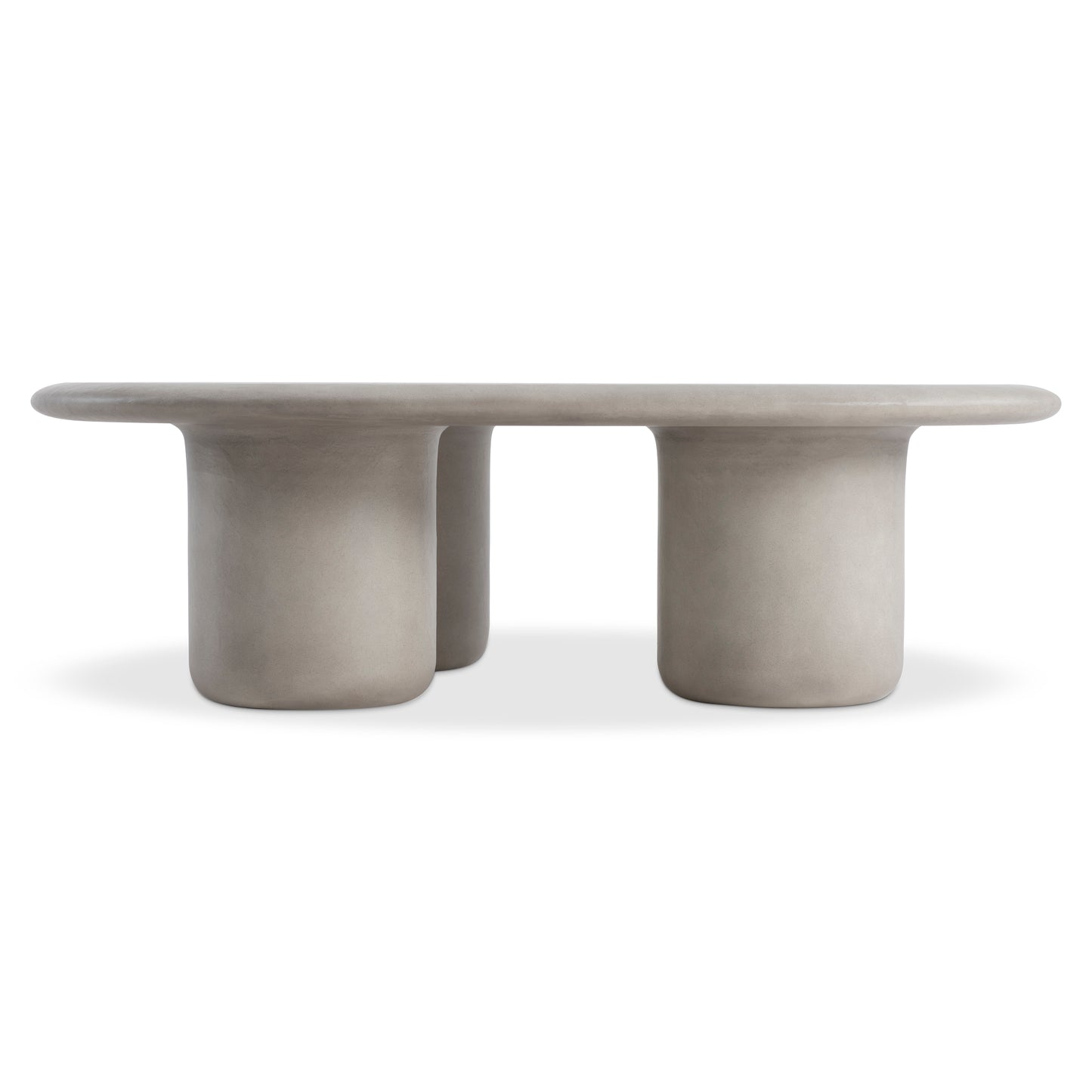Sweeping curves take a unique path for the Decliff cocktail table design. Supported by three pillars, the top has an elemental style that is more organic than geometric. The table is crafted of cast resin in the Pumice finish.