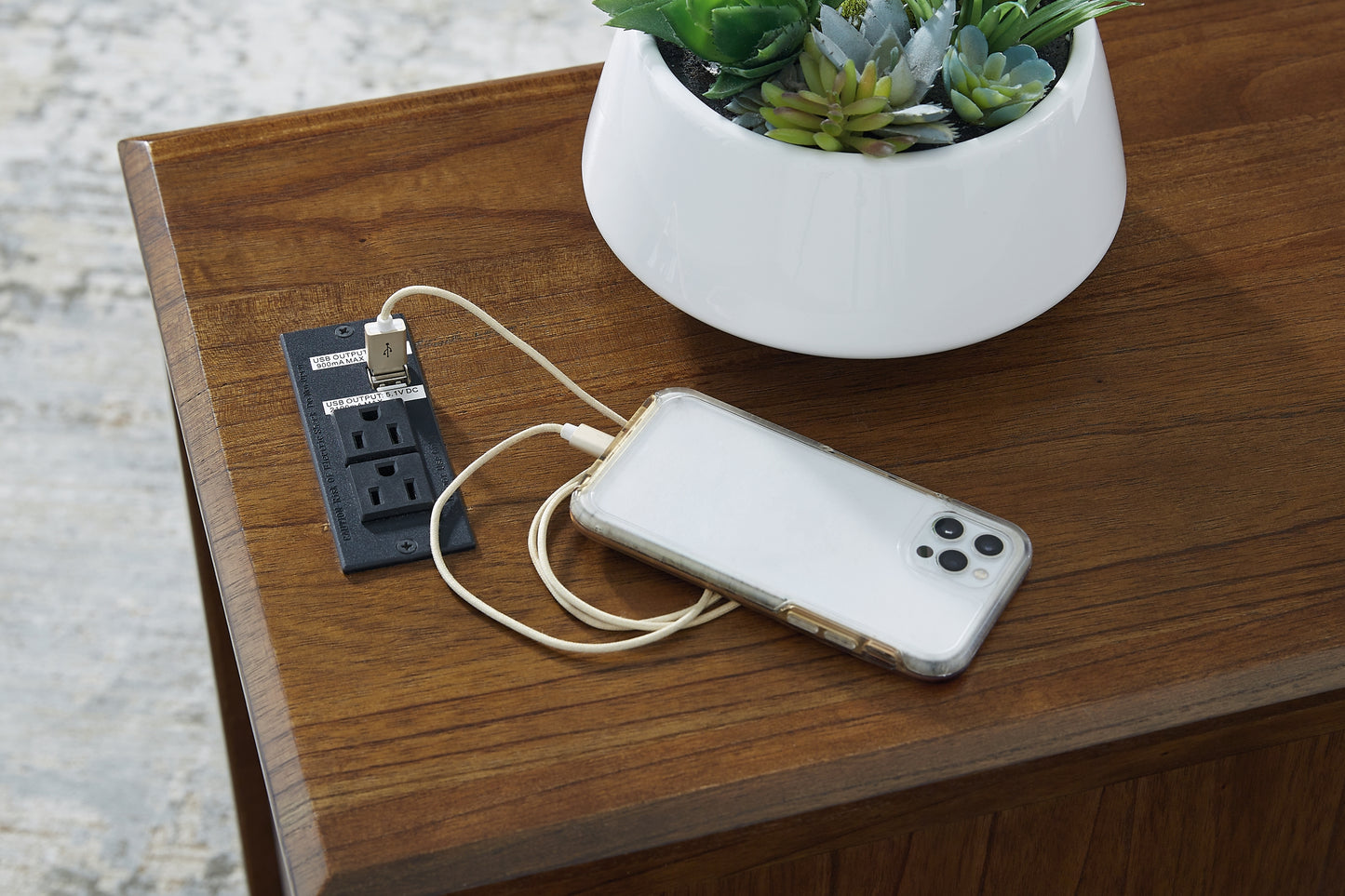 This end table is a simply stunning exhibition of sofa-side function. Your daily routines are upgraded with USB charging and a handy pull-out tray to keep remotes and beverages close at hand. Seeking extra storage? This table is ready to accommodate. Intentionally made for casual lifestyles, it’s an instant everyday essential.