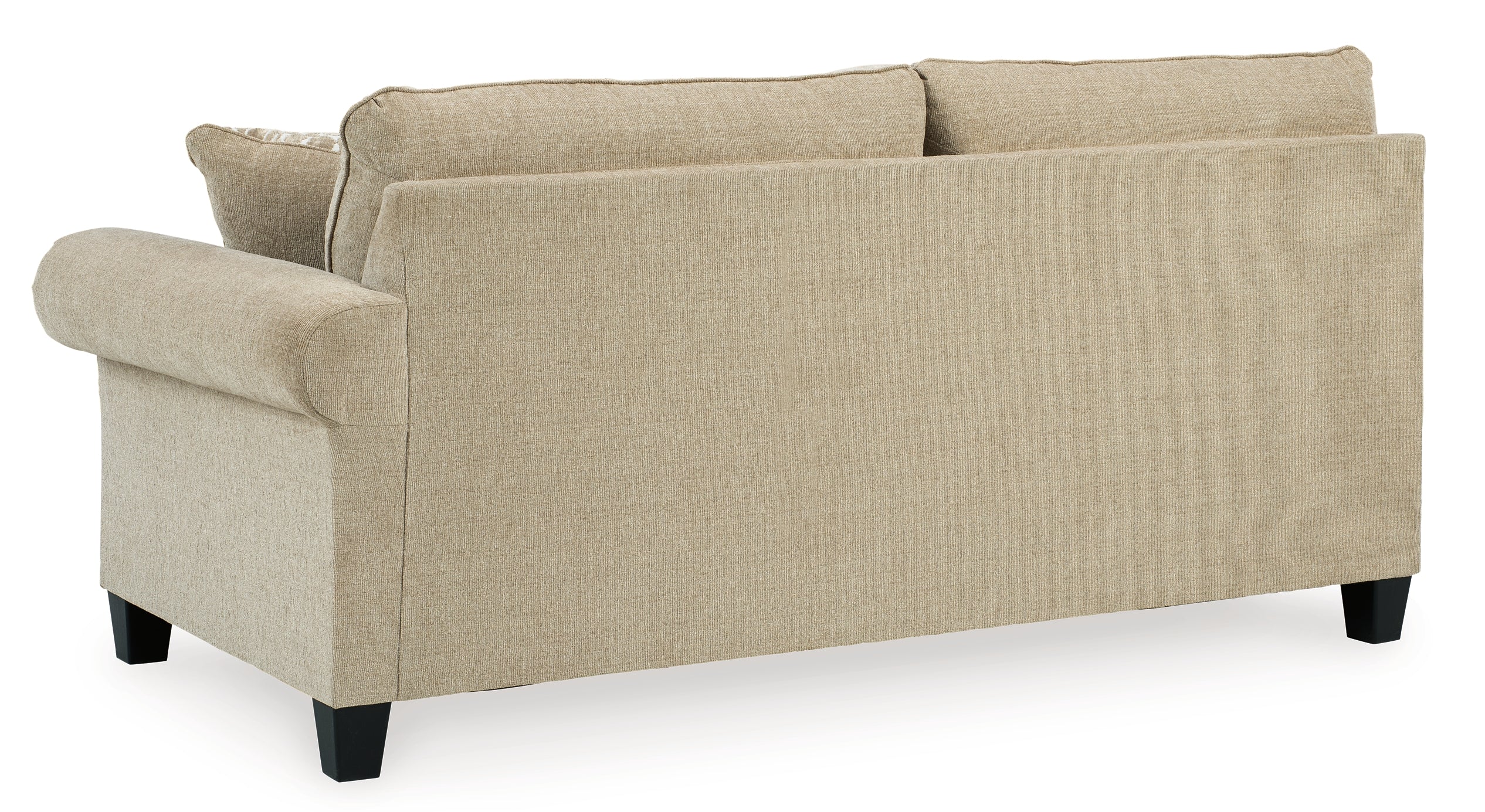 Enticing in chic and sophisticated putty for a look of everyday luxury, the Dovemont 2-piece sectional with ottoman simply says, "You’ve got great taste." Elements that bring in just enough glam include pewter-tone nailhead trim and fanciful roll arms that beautifully go with the flow. Textured cheetah print, fur and crushed velvet throw pillows incorporate fabulous sheen and shine.