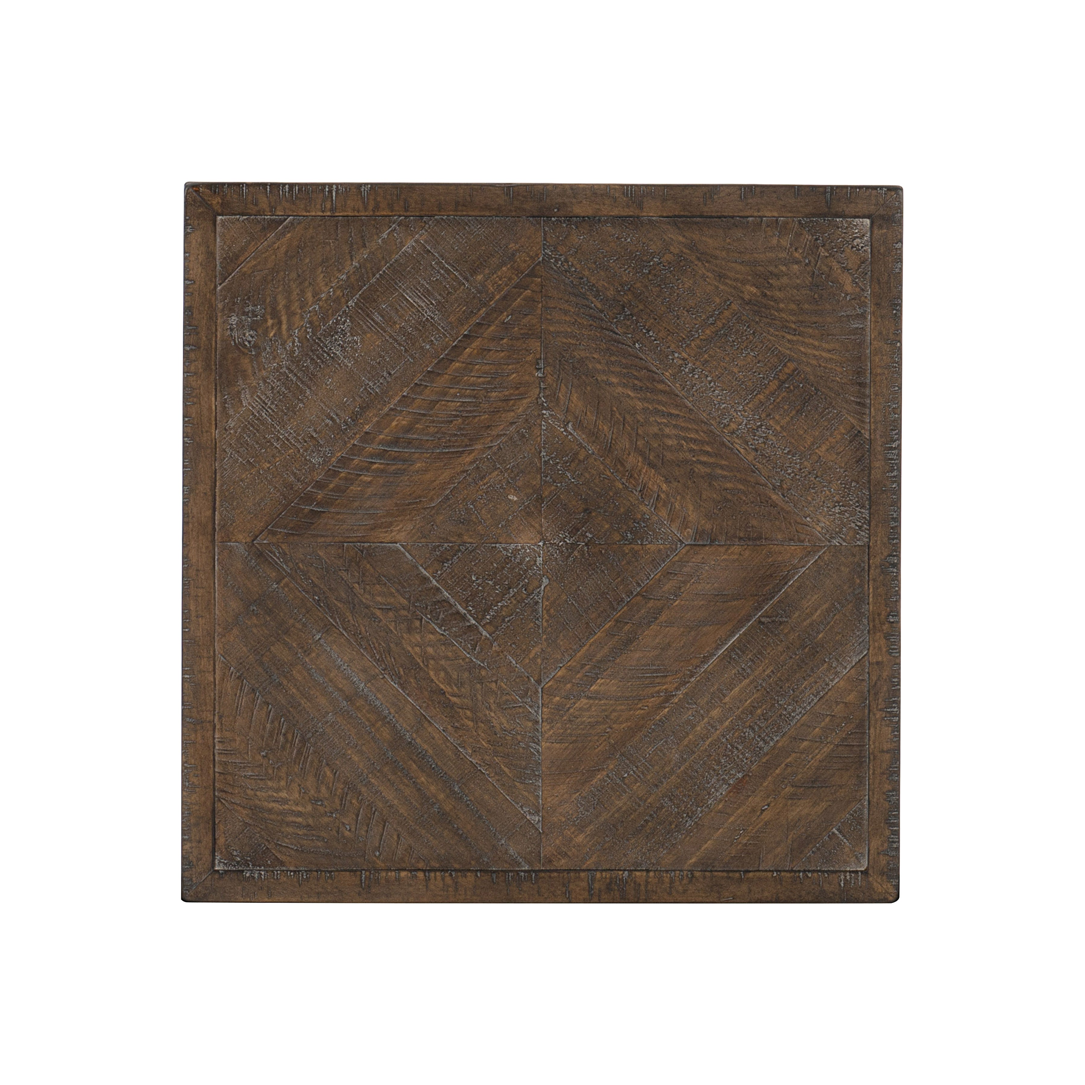 With its architectural structure and minimalist aesthetic, the Draper end table embodies urban sophistication. The fancy face tabletop is crafted from distressed pine finished in a moody Sable Brown that adds rustic texture. Slender tubular steel legs are finished in Gray Mist for a polished, industrial look. Casual in nature, this table brings a hip, edgy vibe to the luxe interior.