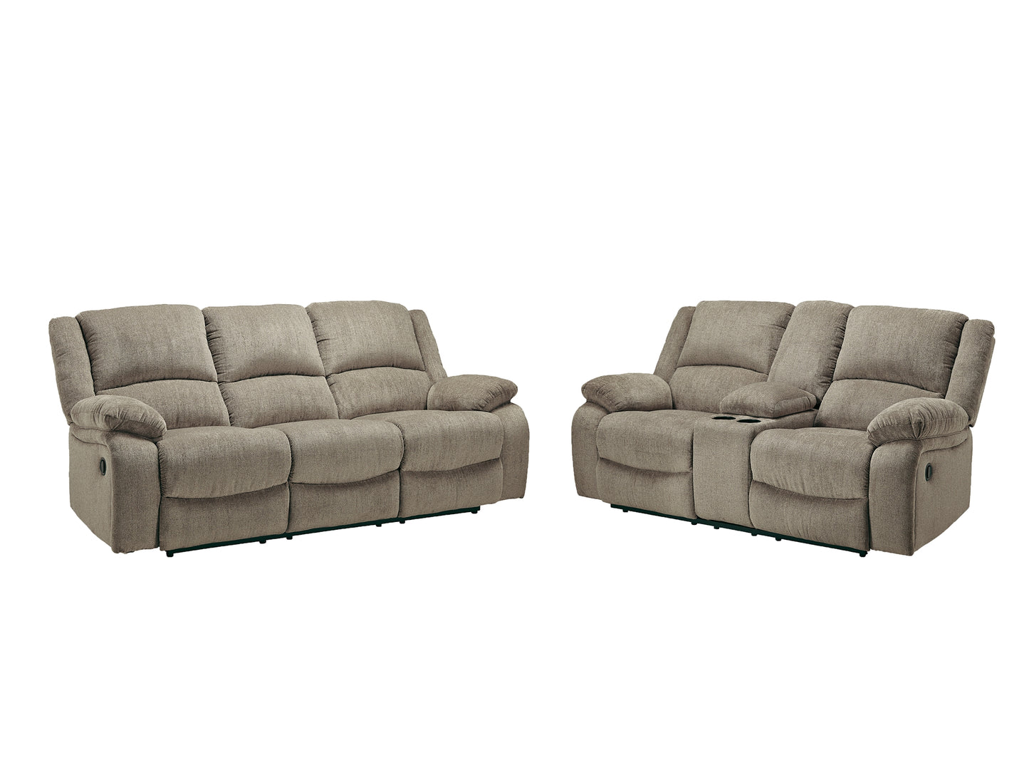 Built for luxury, this reclining sofa and loveseat with center console lets you kick back in reliable style. The thick, softly textured chenille upholstery provides a comfy surface on which to lounge. With bustle back construction and thickly cushioned armrests, this set gives you the dependable support you need to unwind with the convenience of the loveseat’s center console to ease your evening.