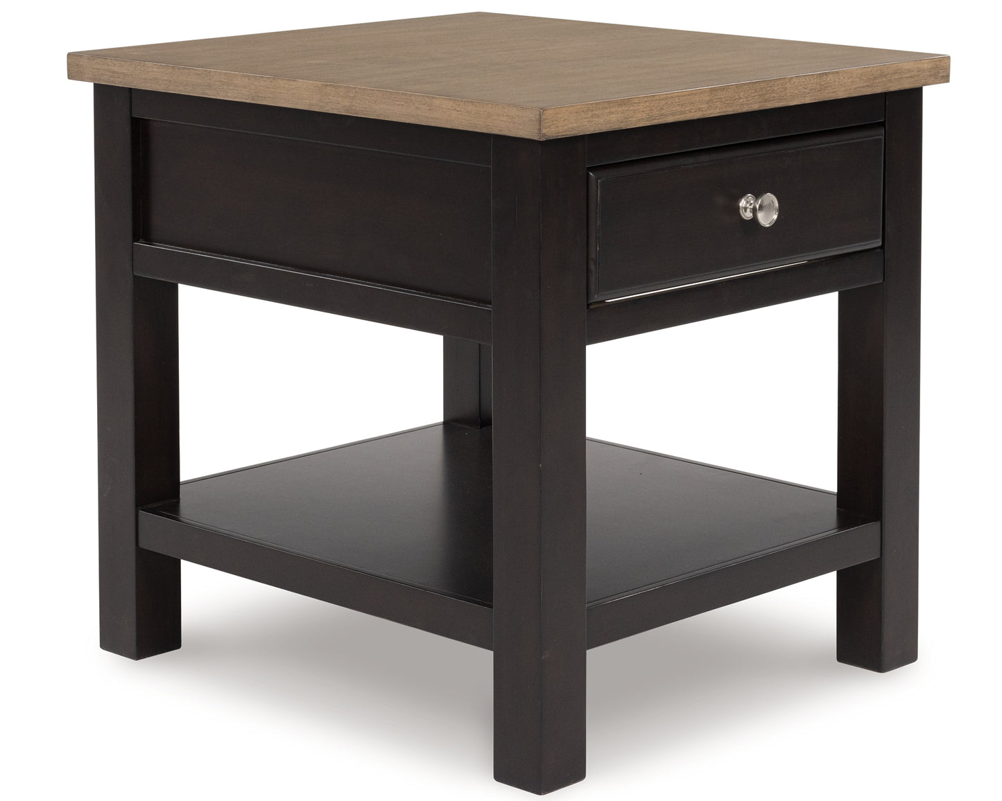 When you’re styling your living room, convenience is key. With this end table, casual flair meets can’t-miss function. Tired of tracking down lost remotes? A handy storage drawer keeps your entertainment essentials close. This fashionably functional piece pairs a dark chocolate brown with a light wood tone, complementing a variety of color palettes.