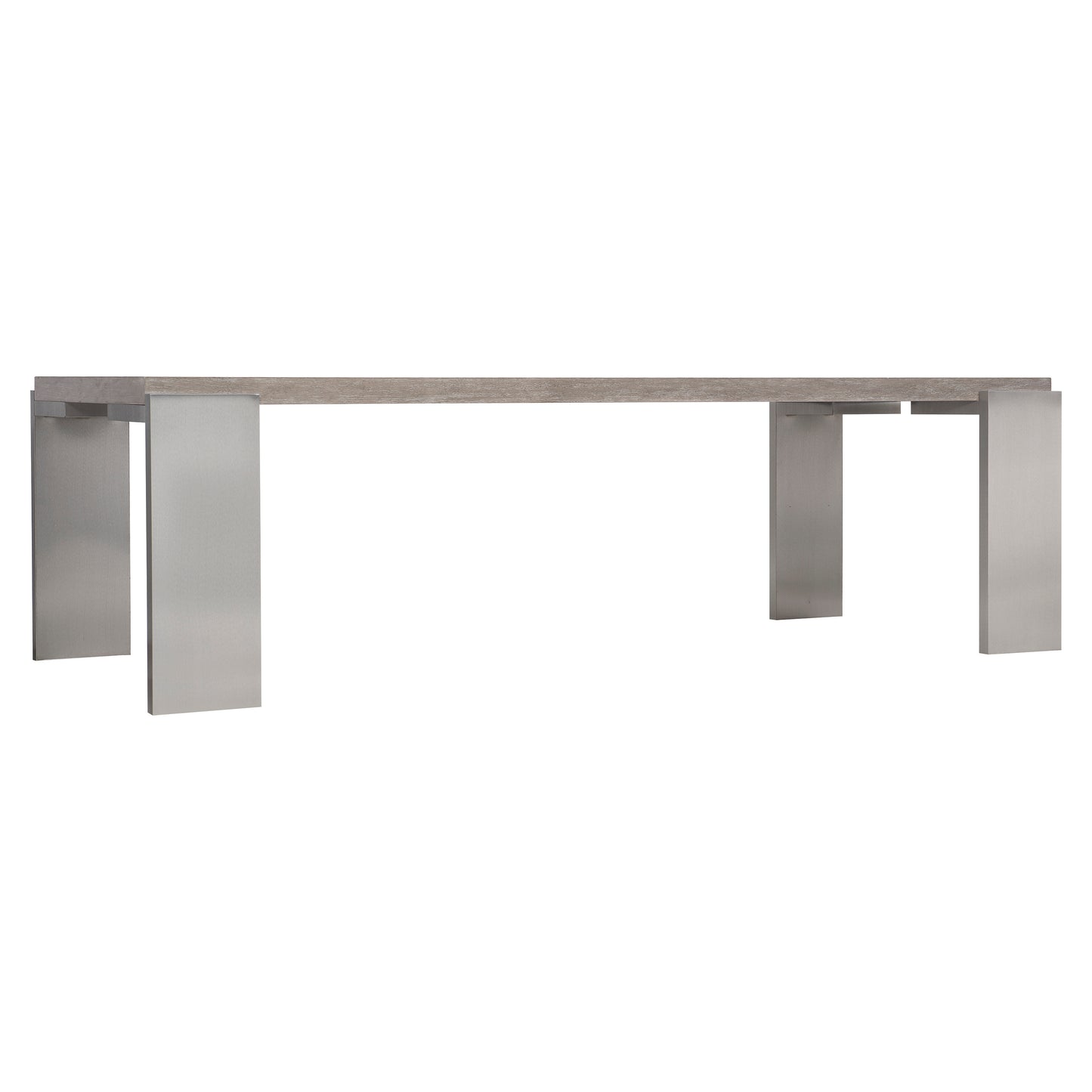 Foundations is a new, refined expression of modern rustic, defined by a minimalist style and relaxed finishes. Featuring a solid acacia top resting on wide steel legs, the sophisticated Foundations dining table is defined by its clean lines and perfectly balanced look. The artful combination of rustic, wire-brushed wood and ultra-modern, brushed stainless steel delivers a unique, elemental appeal.