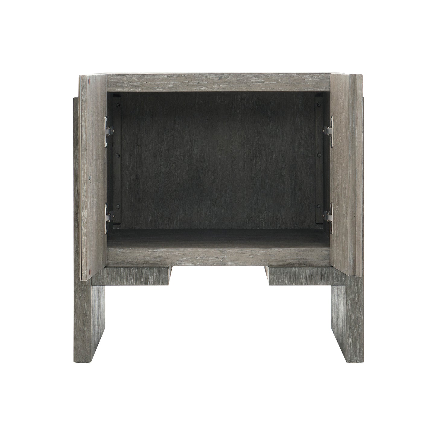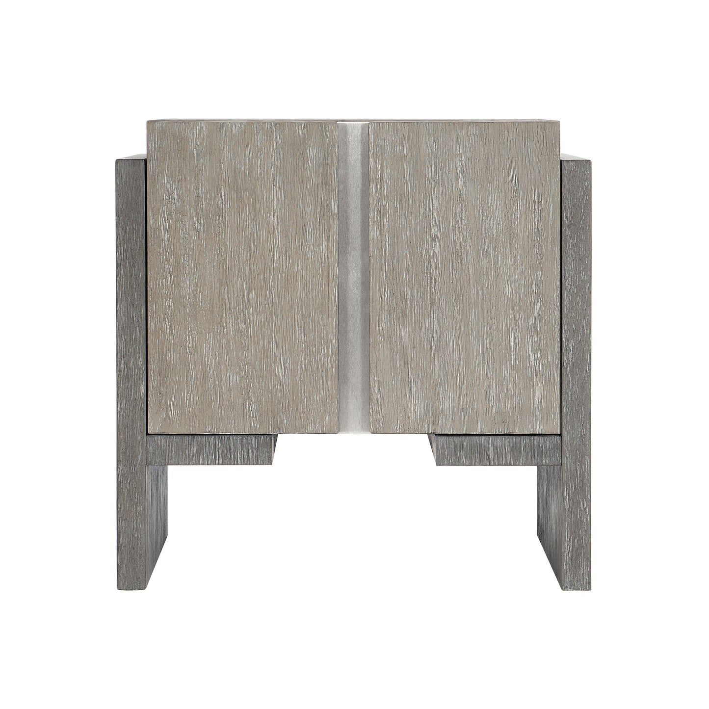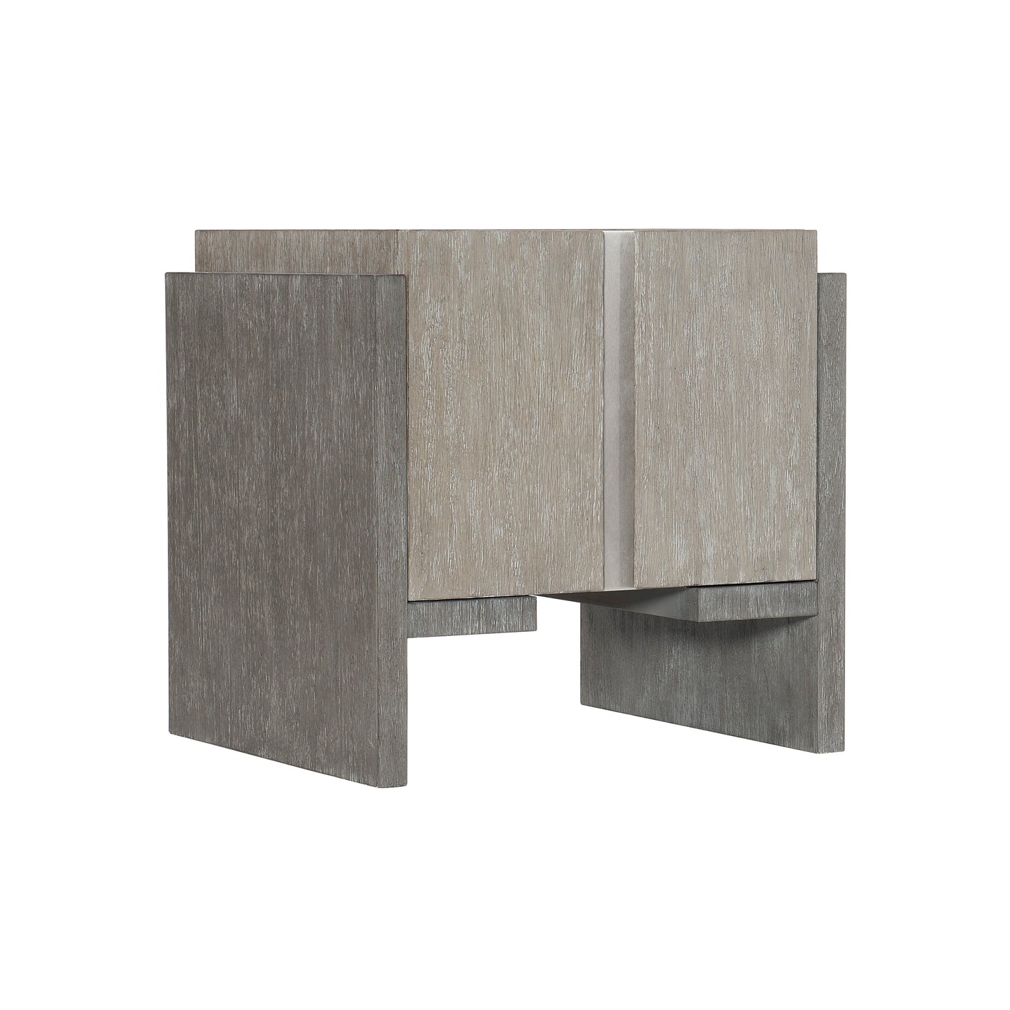 Foundations is a new, refined expression of modern rustic, defined by simple forms and relaxed finishes. Crafted from cerused, wire-brushed acacia, the Foundations side table features clean lines and intersecting, thick-cut planes. A palette of oyster and driftwood grays softens the look, while an inset brushed stainless steel panel reinforces the modern, minimalist aesthetic.