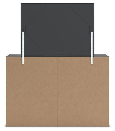 Find serene simplicity in the clean lines and dark neutral tones of this dresser with mirror. It’s a sincere approach to modern elegance, giving you high style at a great value. A sleek hardware-less design creates a fuss-free look. Short on storage? This dresser’s smooth-gliding drawers keep clothes and clutter neatly tucked away.