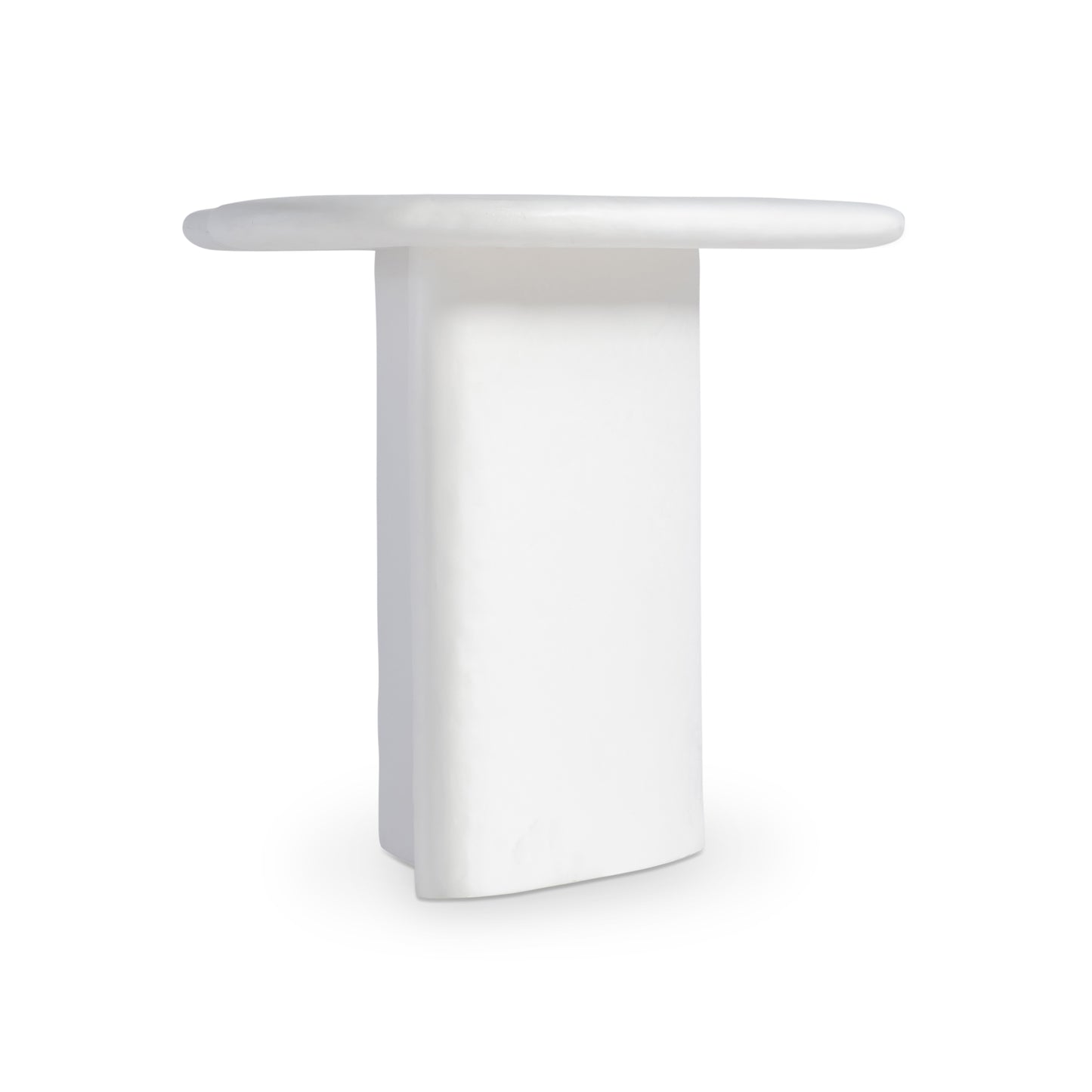 A boldly shaped and flowing base supports a freeform top on the Fresco accent table. The modern organic style has rounded edges and curves that offer an unstructured design. The outdoor design is crafted of glass-reinforced concrete with a plaster texture in Chalky White.