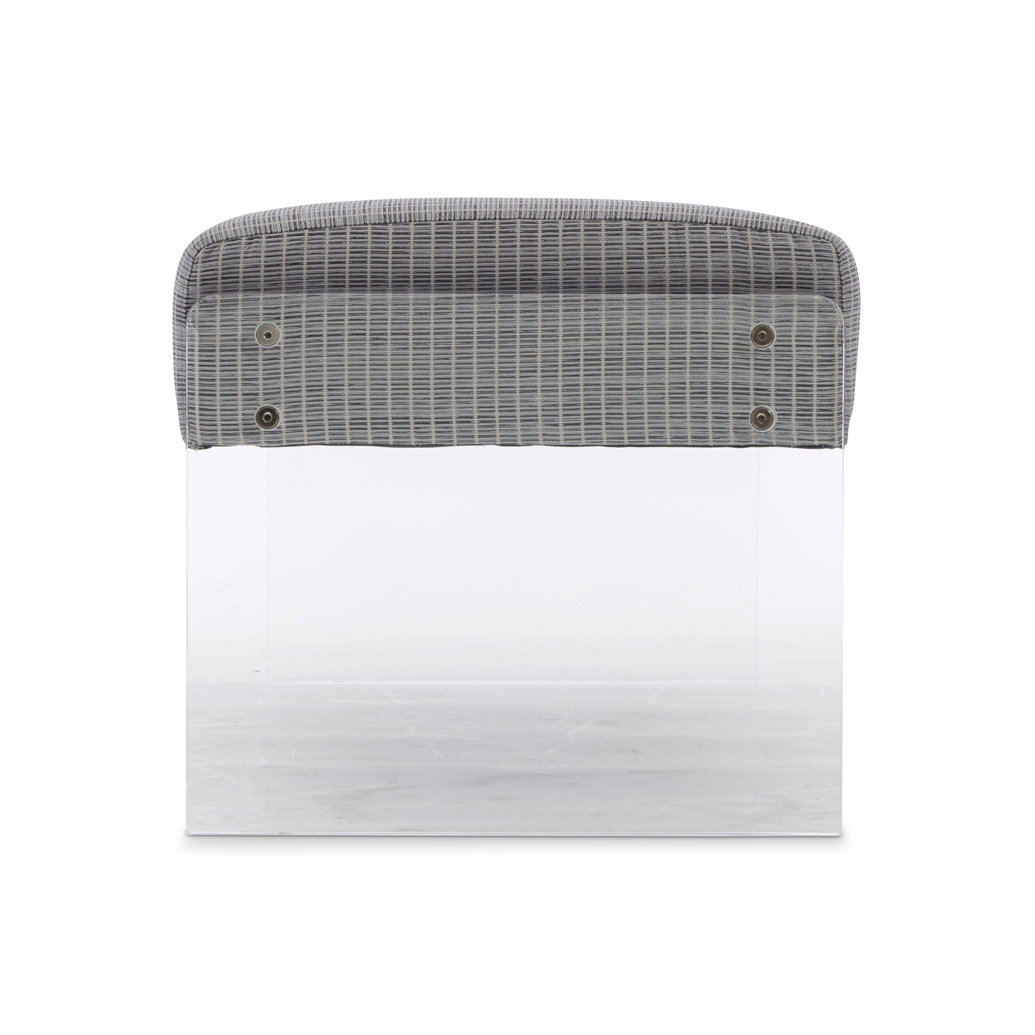 The Frey bench's leather seat appears to float in midair between two acrylic side panels. The design showcases a clearly modern comfort story.