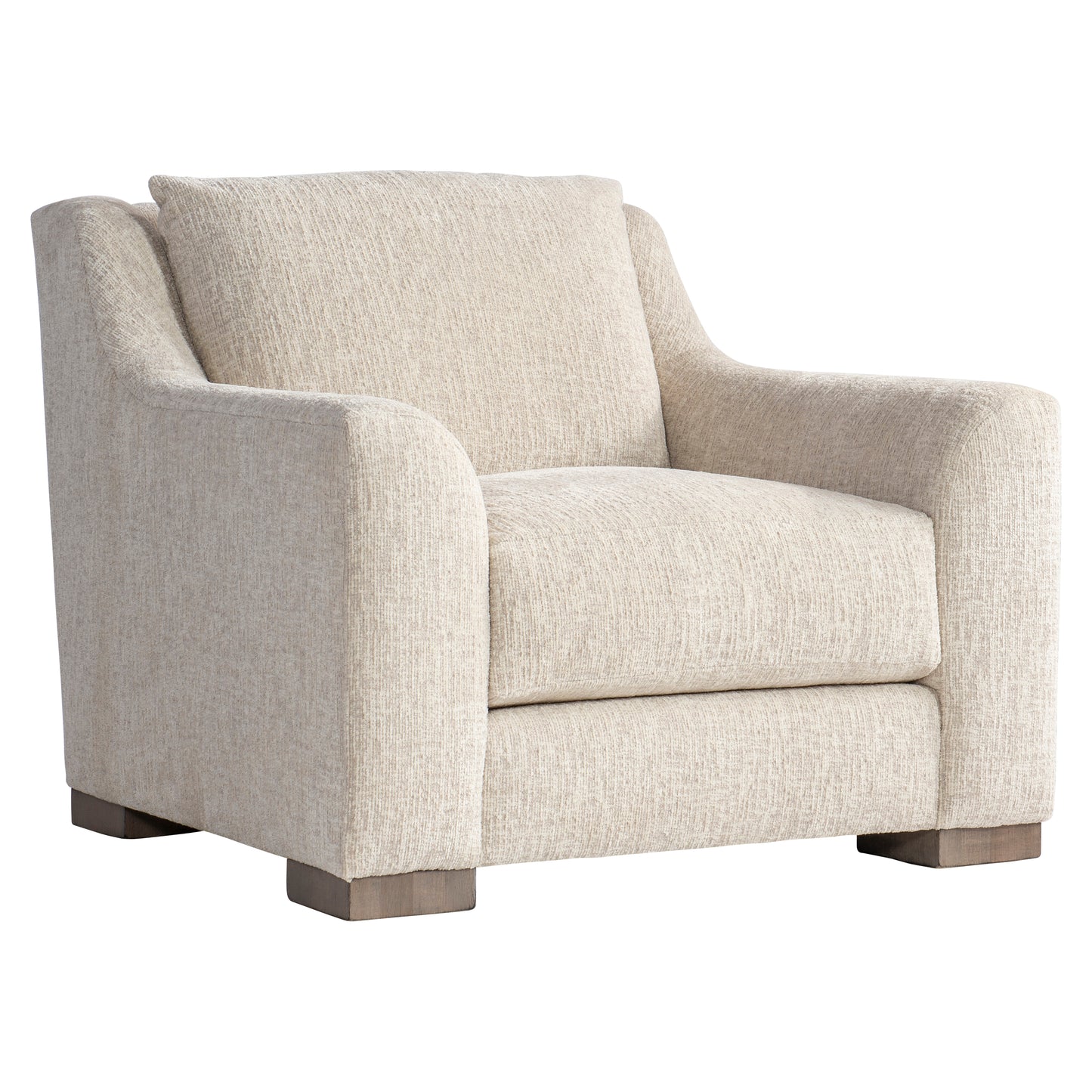 The Gabi fabric chair offers an alluring comfort destination with sweeping lush curves. The oversized arms frame a deep seat and a knife-edge back pillow. Exposed wood block feet support the bold design.
