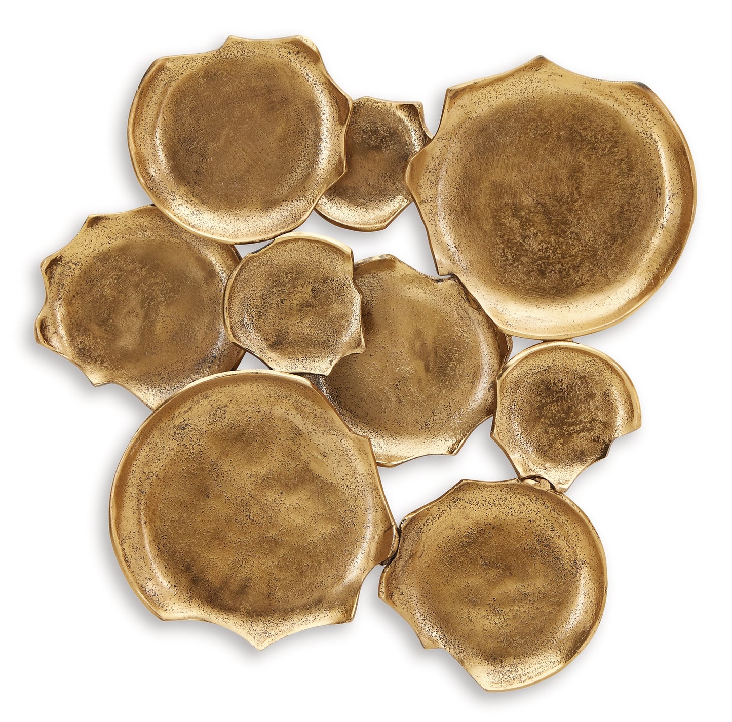 With a minimalistic design and antiqued goldtone finish, this wall art exudes modern sophistication. Whether it's displayed vertically or horizontally, this alluring metal sculpture is on the cutting edge of cool.