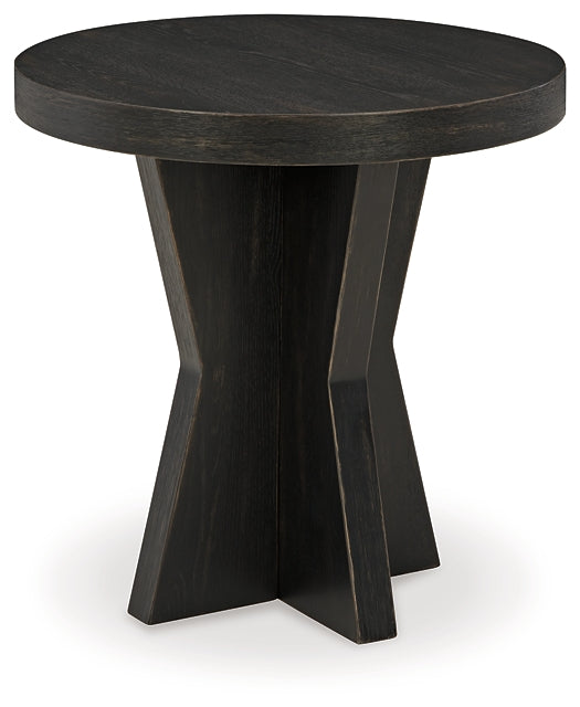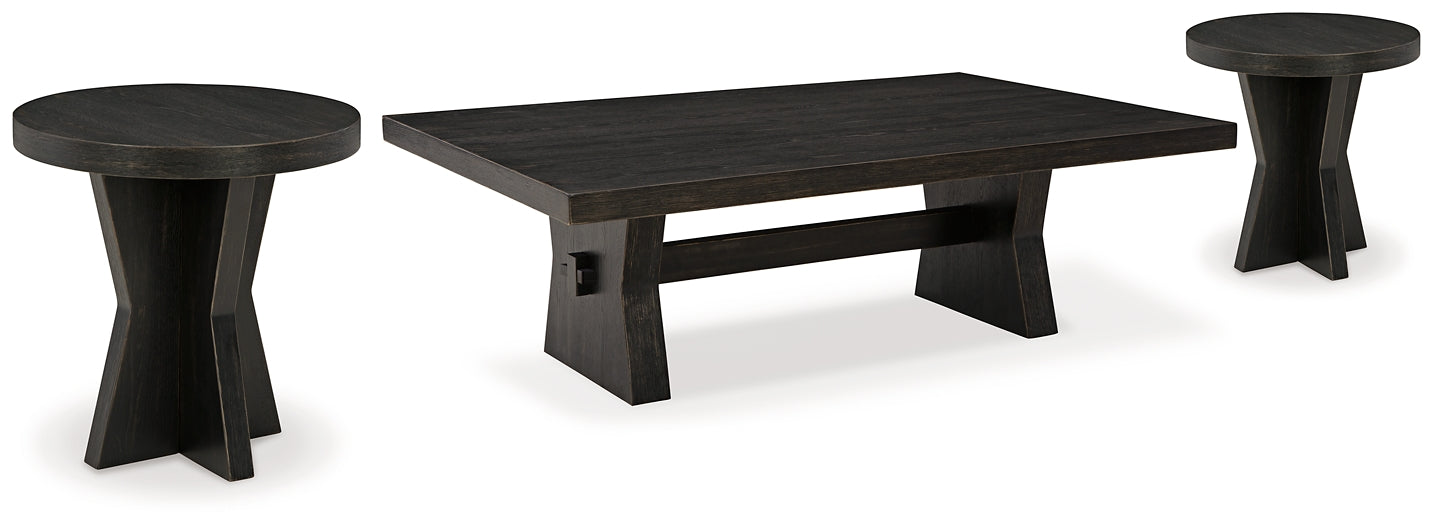 This occasional table package brings a rustic vibe to urban contemporary design. It’s a modern approach to natural beauty, with an aged black finish. And the set's color palette is stunningly simple, allowing you to seamlessly coordinate these tables with your existing decor.