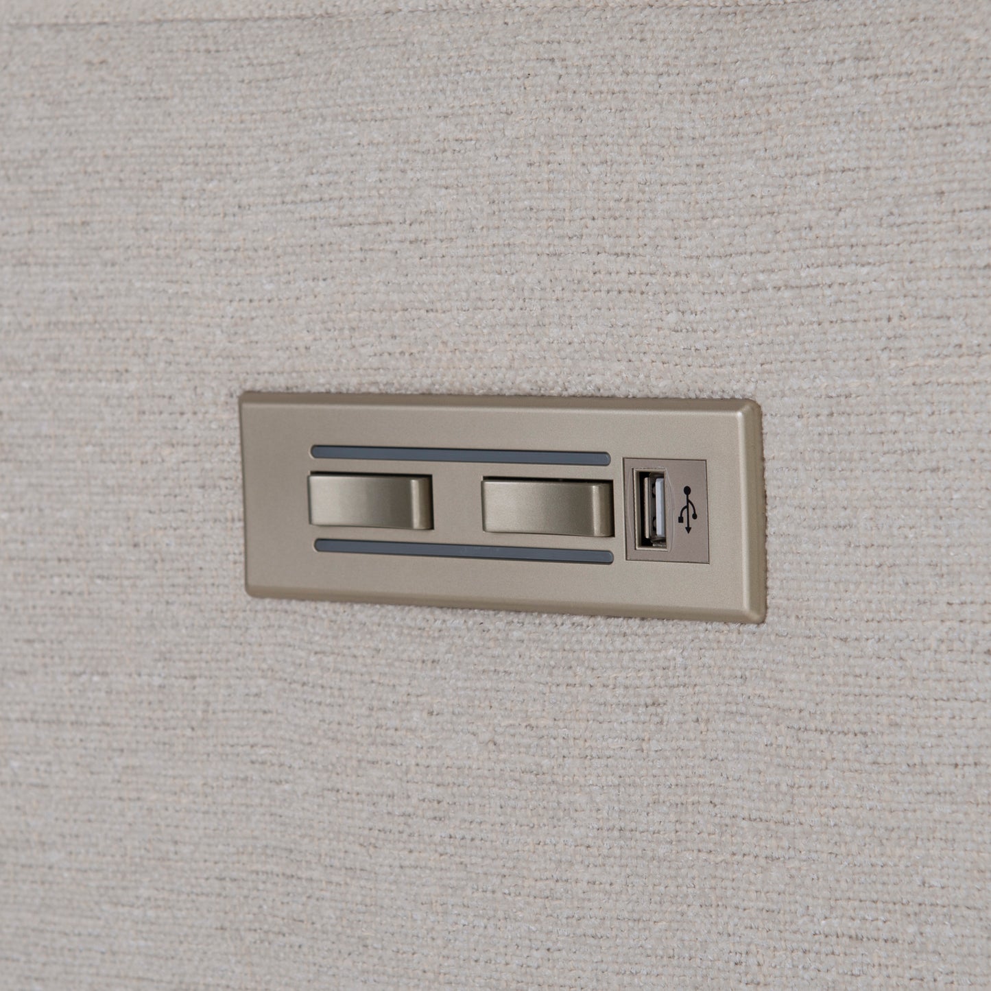 A traditional wingback chair design is reformed with more modern lines and deep comfort on the Germain power motion chair. The back reclines and the footrest rises to offer a relaxing escape. The smooth controls can be found on the side, along with a USB port for phones and tablets.
