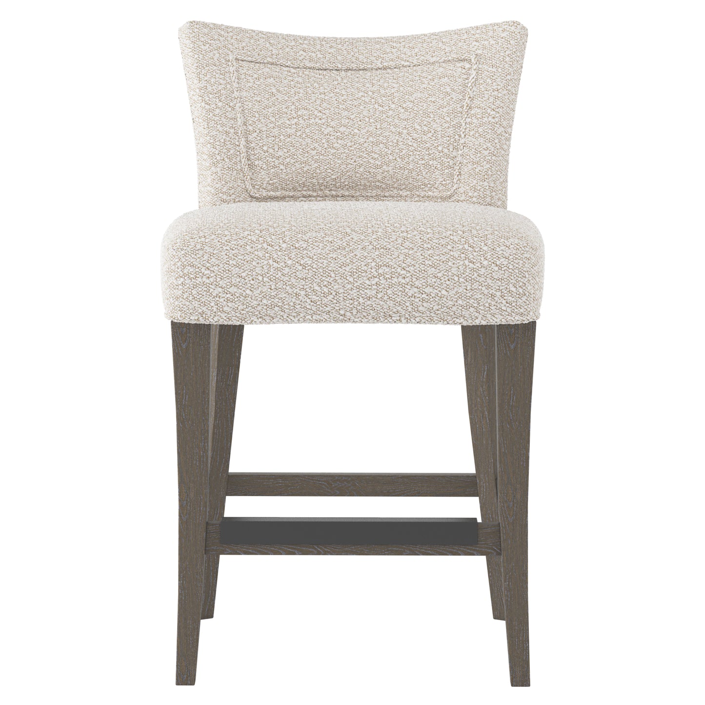 Graceful curves create an elegant look for the Giles counter stool. The low-profile upholstered back is shaped like a trapezoid and features a cutout on the back side framed with welt trim. Available in three smooth wood finishes, the frame features modern saber legs and stretchers with a metal kick plate. The sophisticated silhouette blends seamlessly with a variety of styles.
