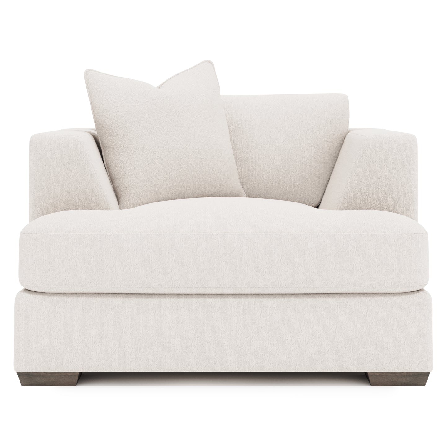 Stylish and modern with deep, luxurious seating, Plush Bernhardt combines natural fabrics with relaxed tailoring, sumptuous down cushions and gracious scale. The superb craftsmanship of the Giselle chair features sinuous spring construction and loose fiber back pillows. Decorative knife edge pillows add an extra touch of comfort and sophistication. With its inviting, quiet beauty, this chair works seamlessly with a diverse range of interiors.