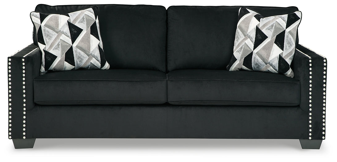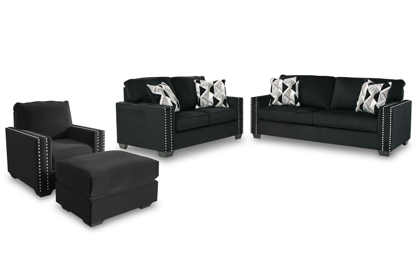 Raise your standard of living with this upholstery package in onyx black. Reserved exclusively for those with a penchant for high-glam home decor, this ultra-chic set is dressed to impress with a clean-lined profile and sleek track arms punctuated with nailhead trim. Easy on the eyes and alluring to the touch, this decidedly contemporary set is covered in a low-pile soft velvet that’s impossible to resist. Abstract-patterned throw pillows enhance the posh appeal.