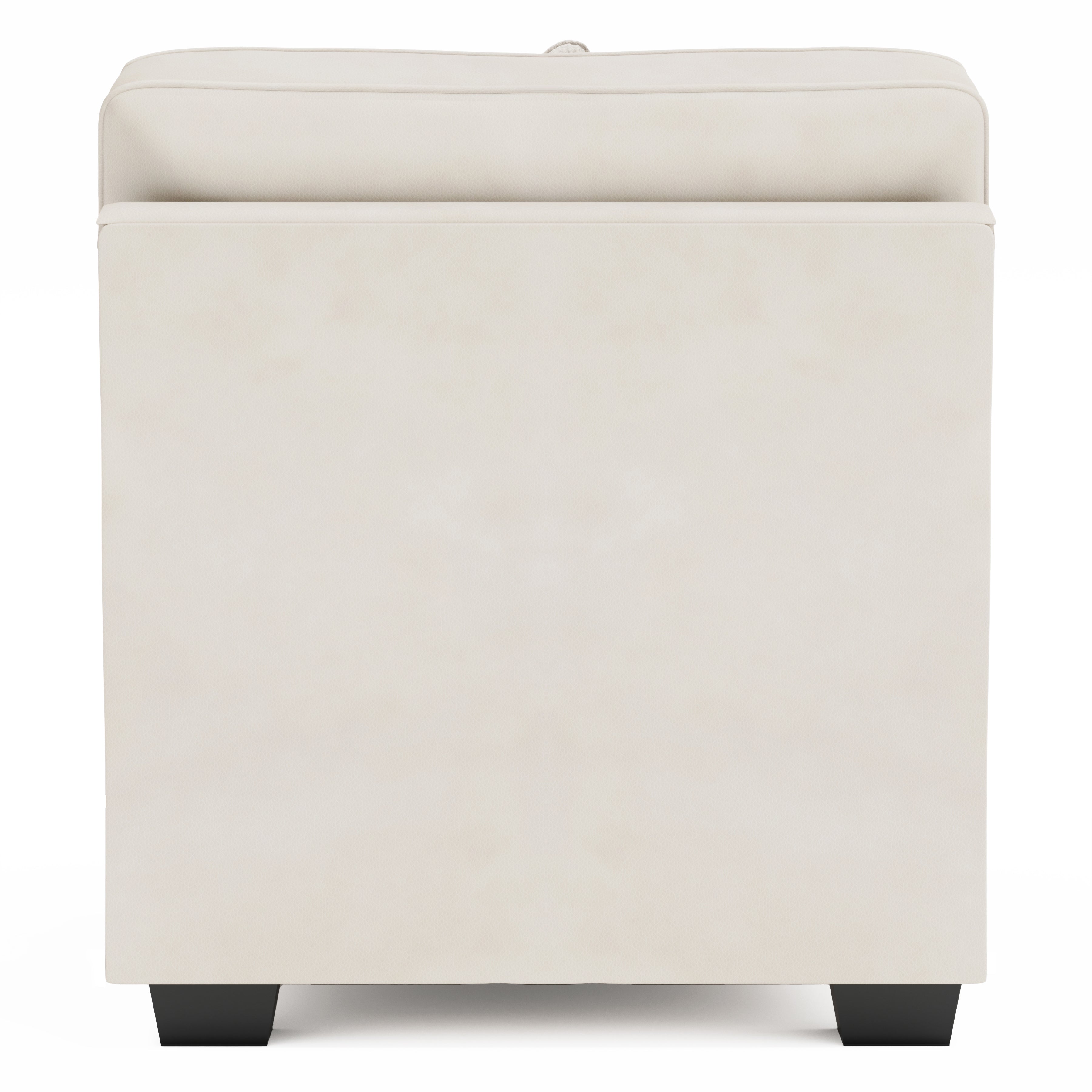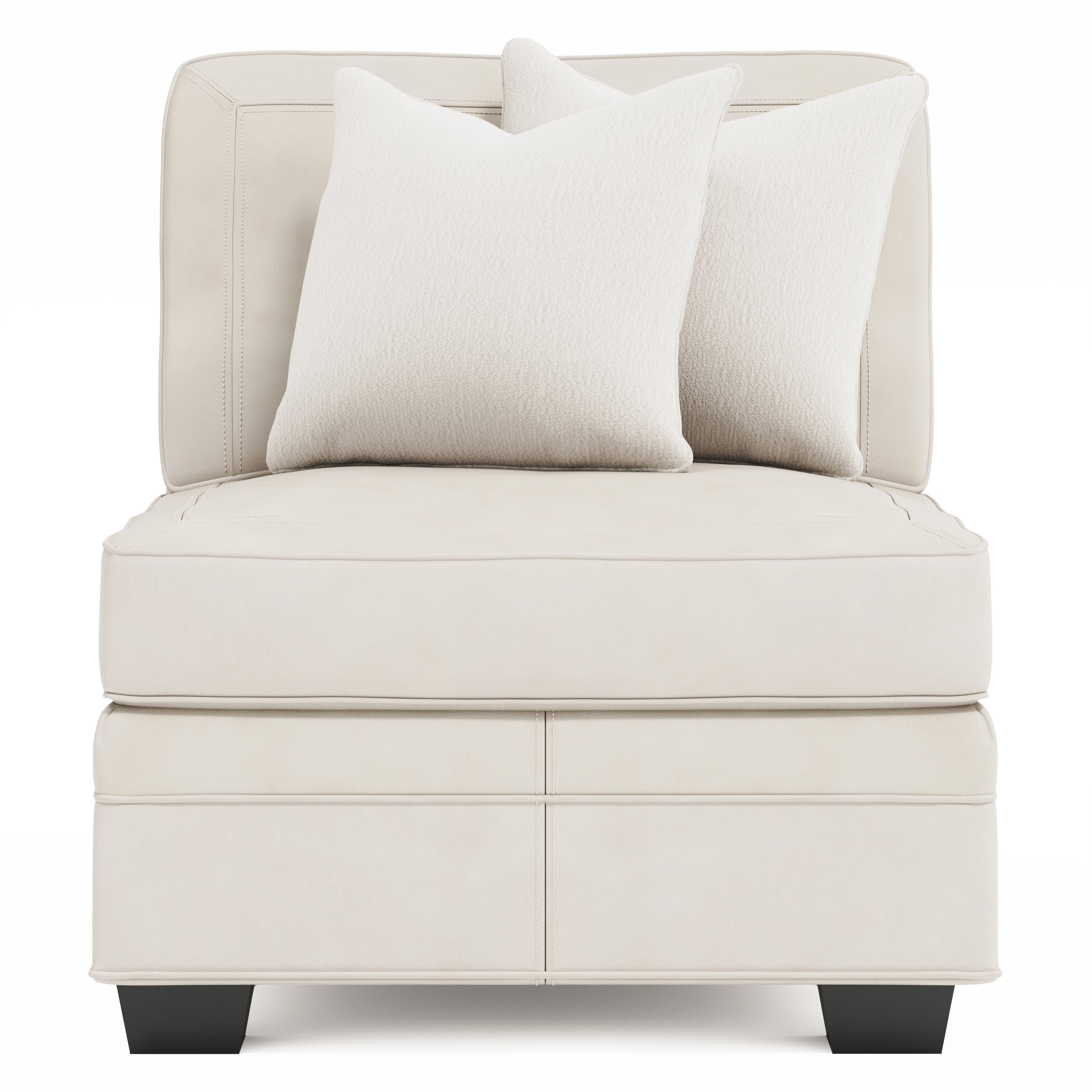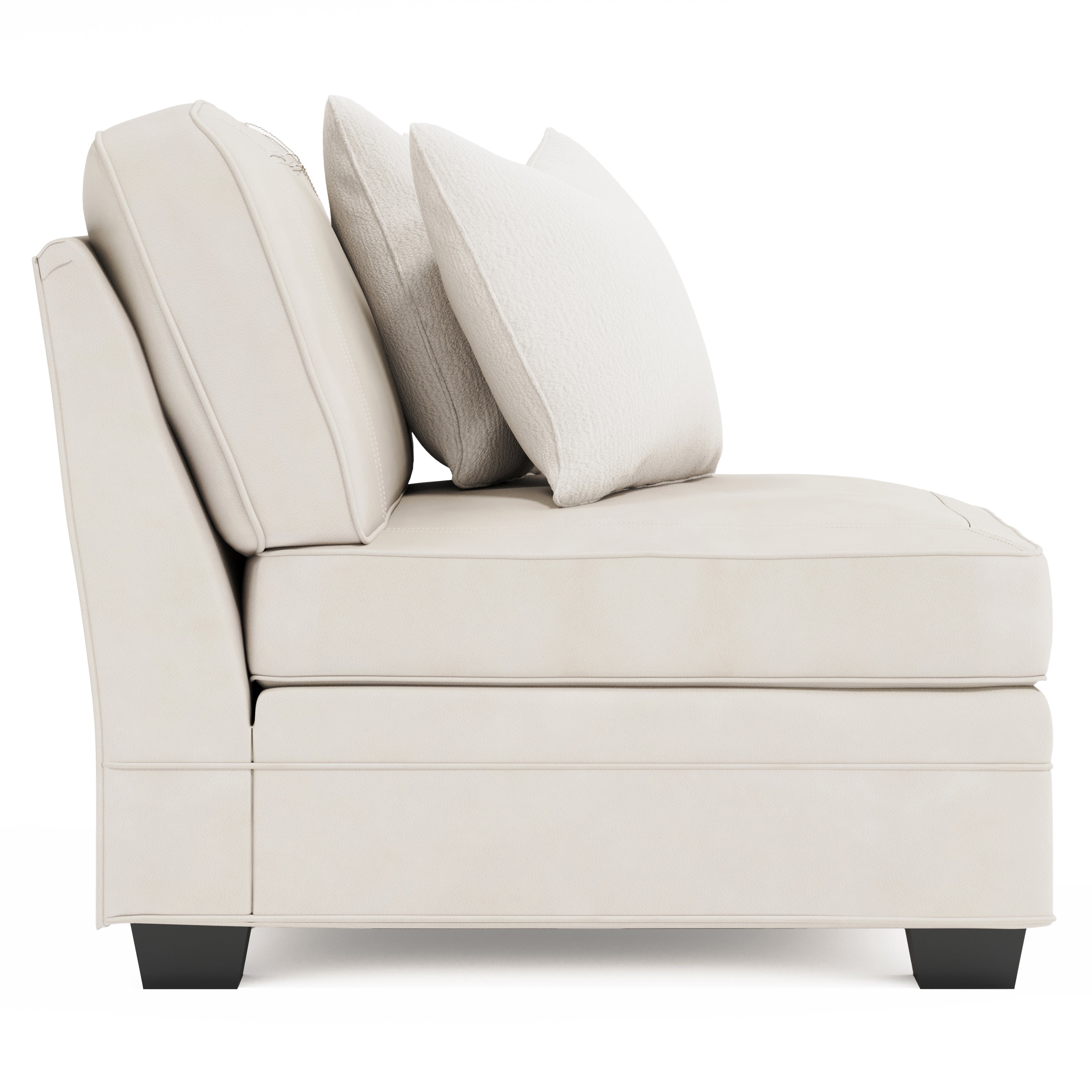 Elegant and sophisticated, the leather Grandview armless chair features a clean, modern frame and an ultra-comfortable spring down cushion. Welt trim brings an air of refinement, while tapered block feet add a contemporary touch. Blendown throw pillows add a luxurious accent.