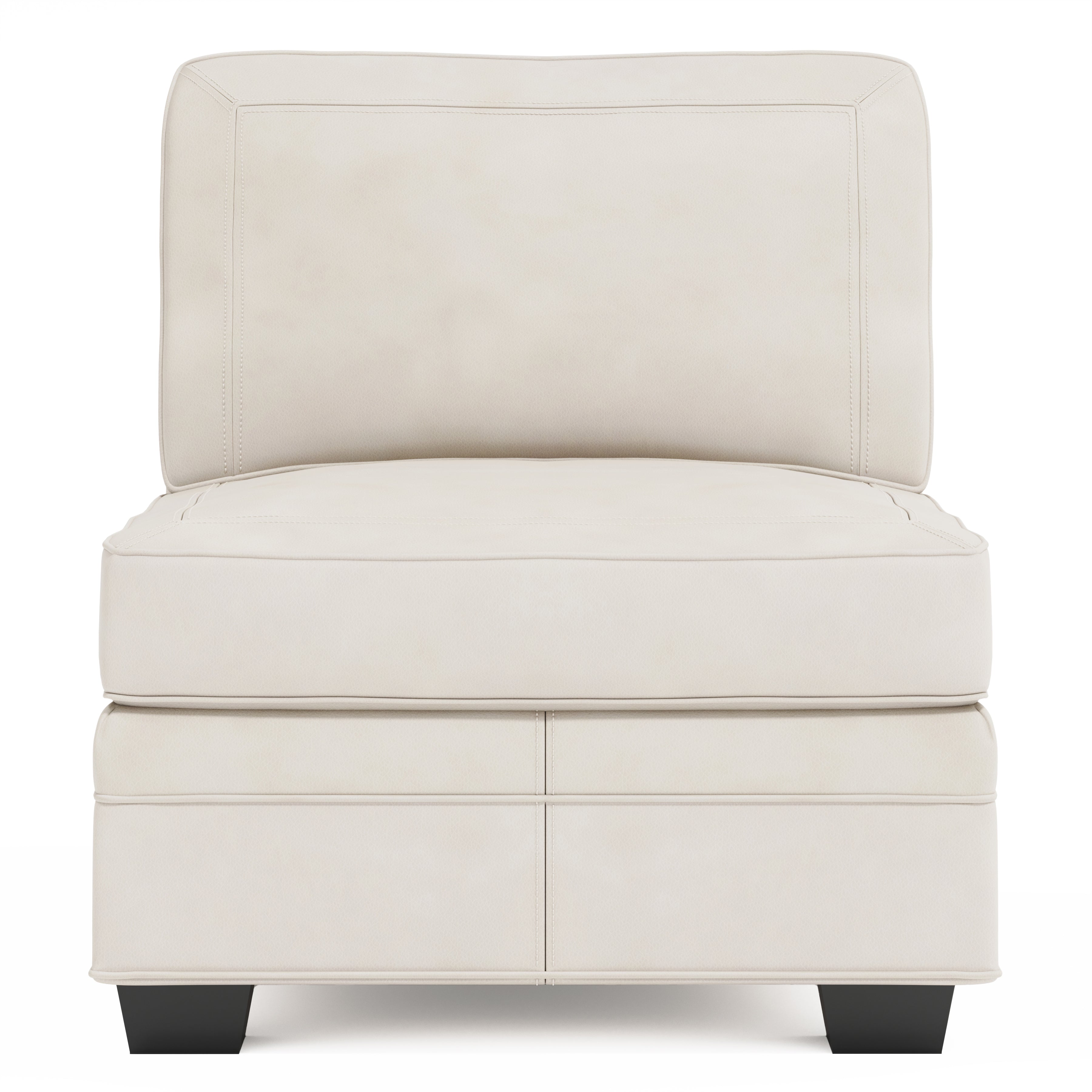 Elegant and sophisticated, the leather Grandview armless chair features a clean, modern frame and an ultra-comfortable spring down cushion. Welt trim brings an air of refinement, while tapered block feet add a contemporary touch.
