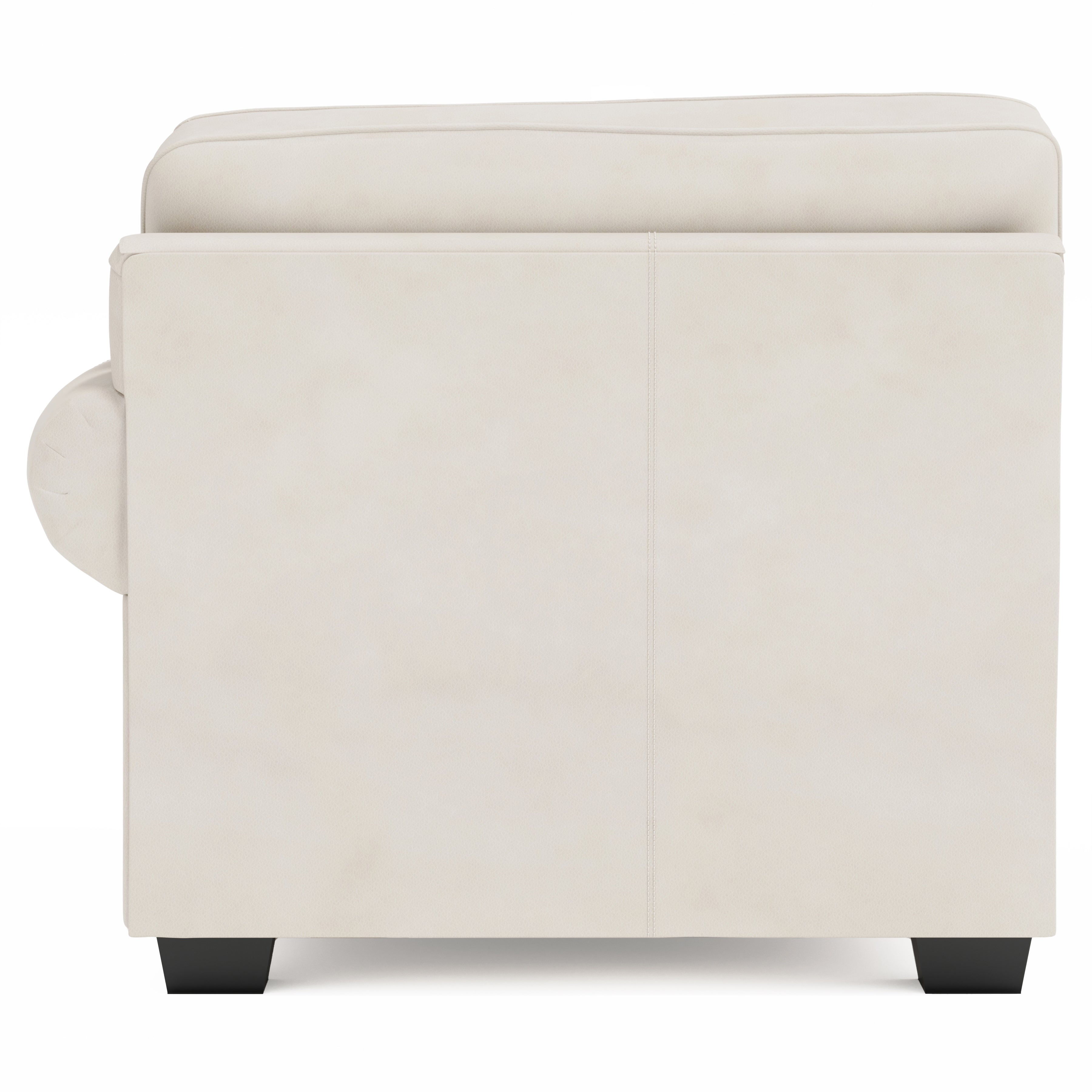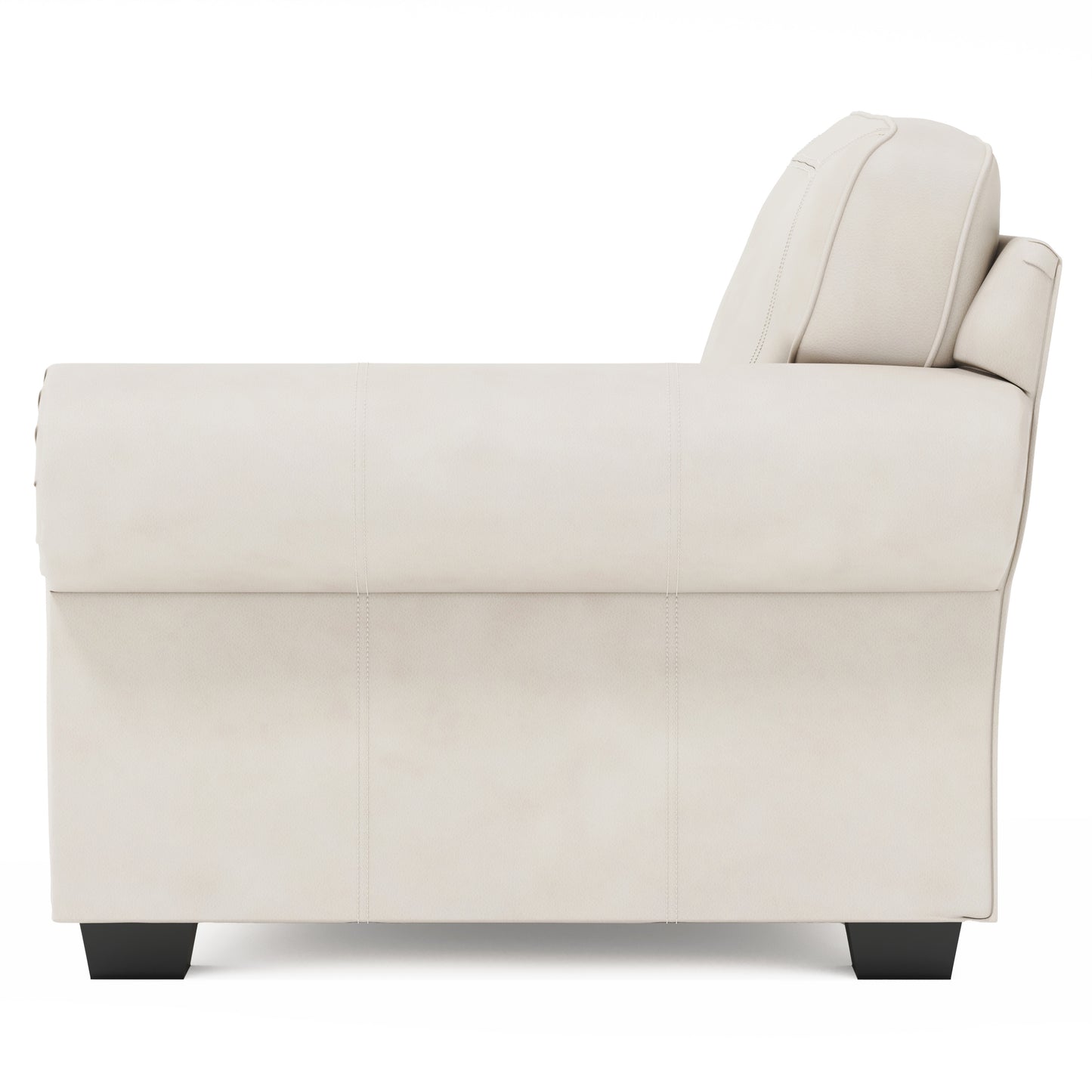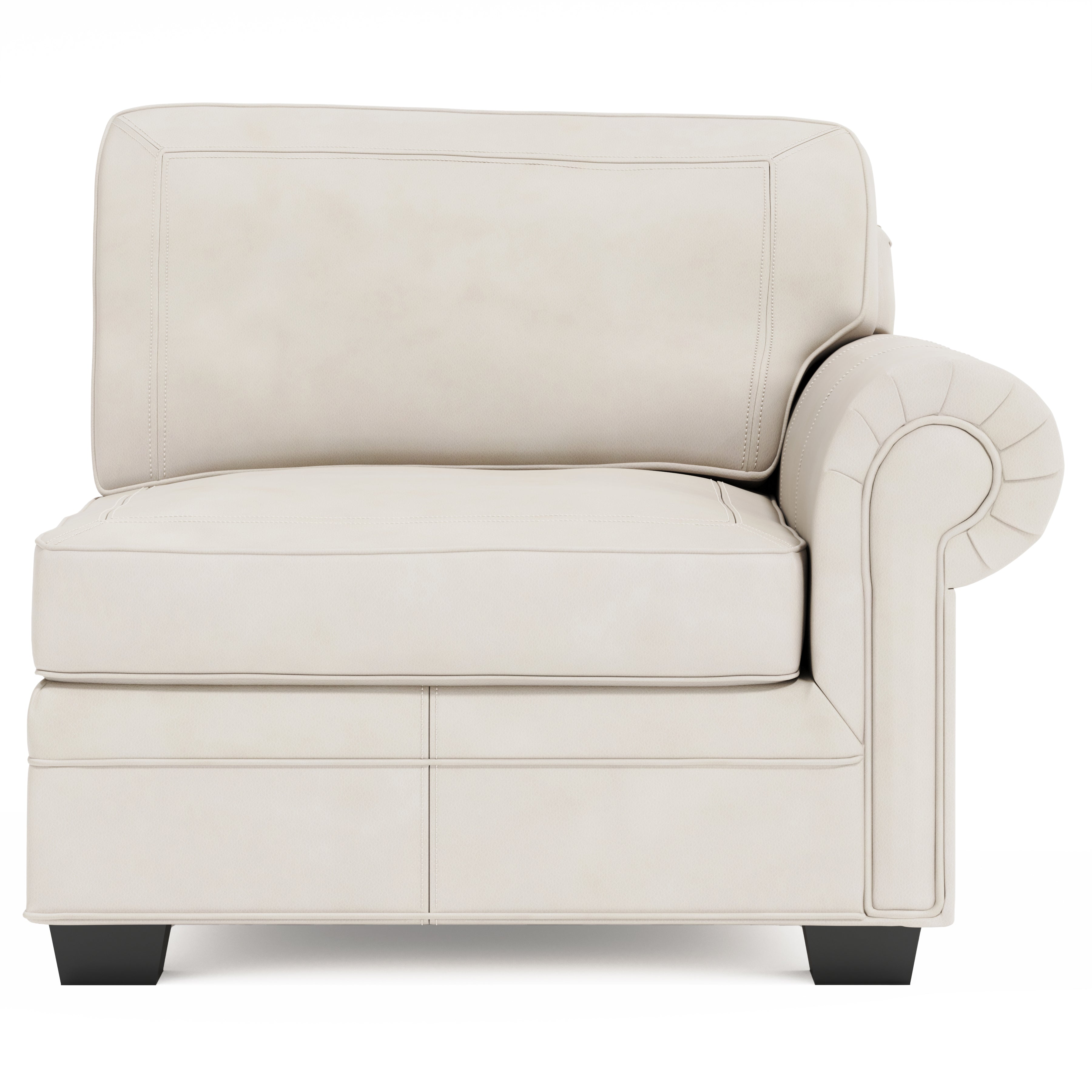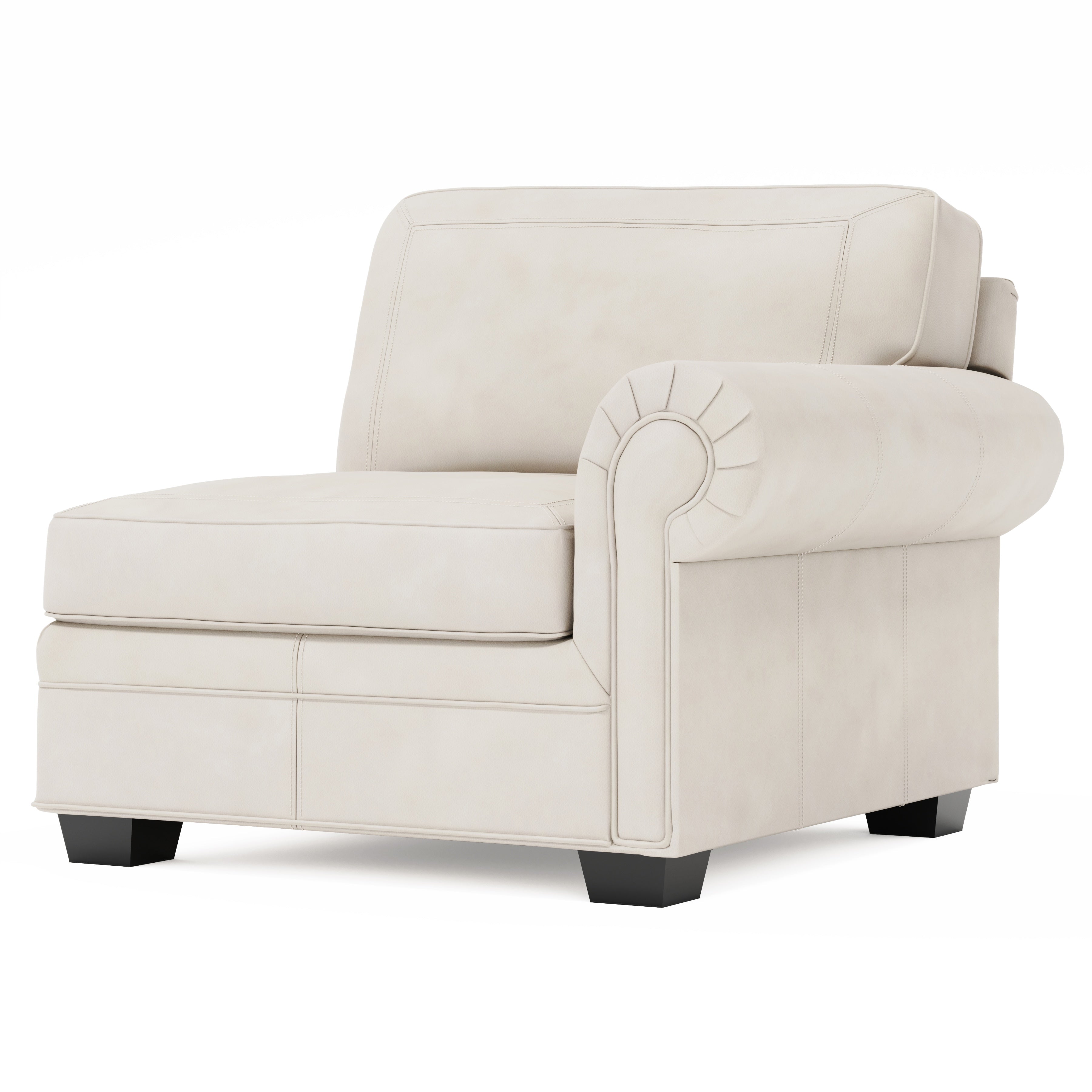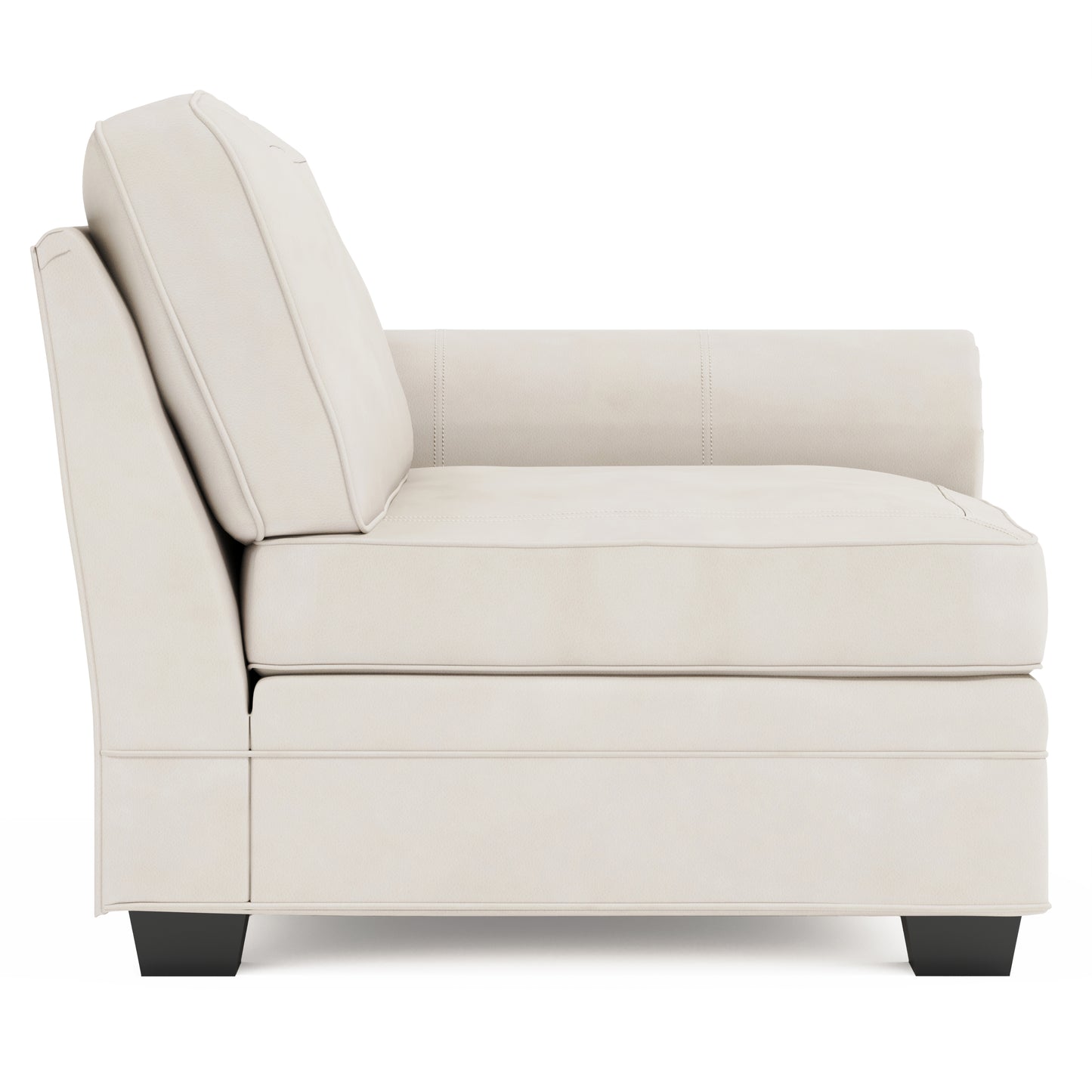 Elegant and sophisticated, the leather Grandview right arm chair features a clean, modern frame and an ultra-comfortable spring down cushion. A rolled arm and welt trim bring an air of refinement. Tapered block feet add a contemporary touch.