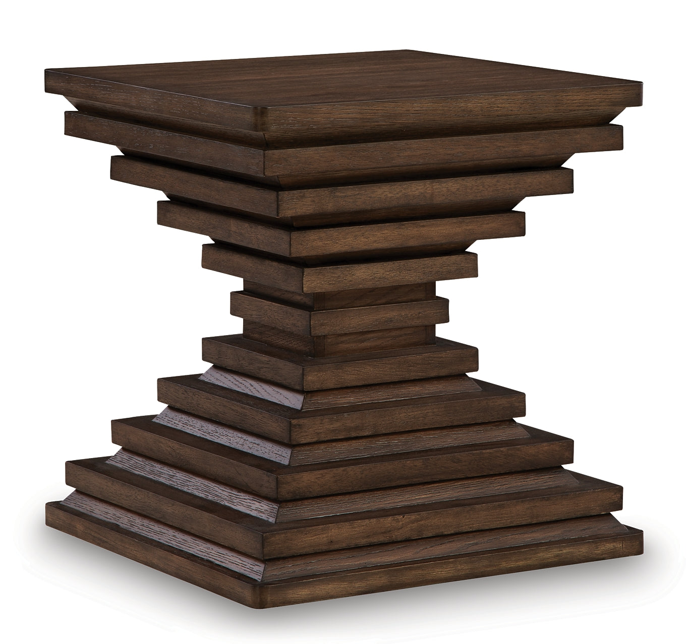 A statement-making table? Yes, please. The distinctive silhouette of this end table is sure to captivate lovers of contemporary design. Featuring head-turning architectural geometry and a rich, inviting warm brown finish, this piece is ready to take your decor to the next level.