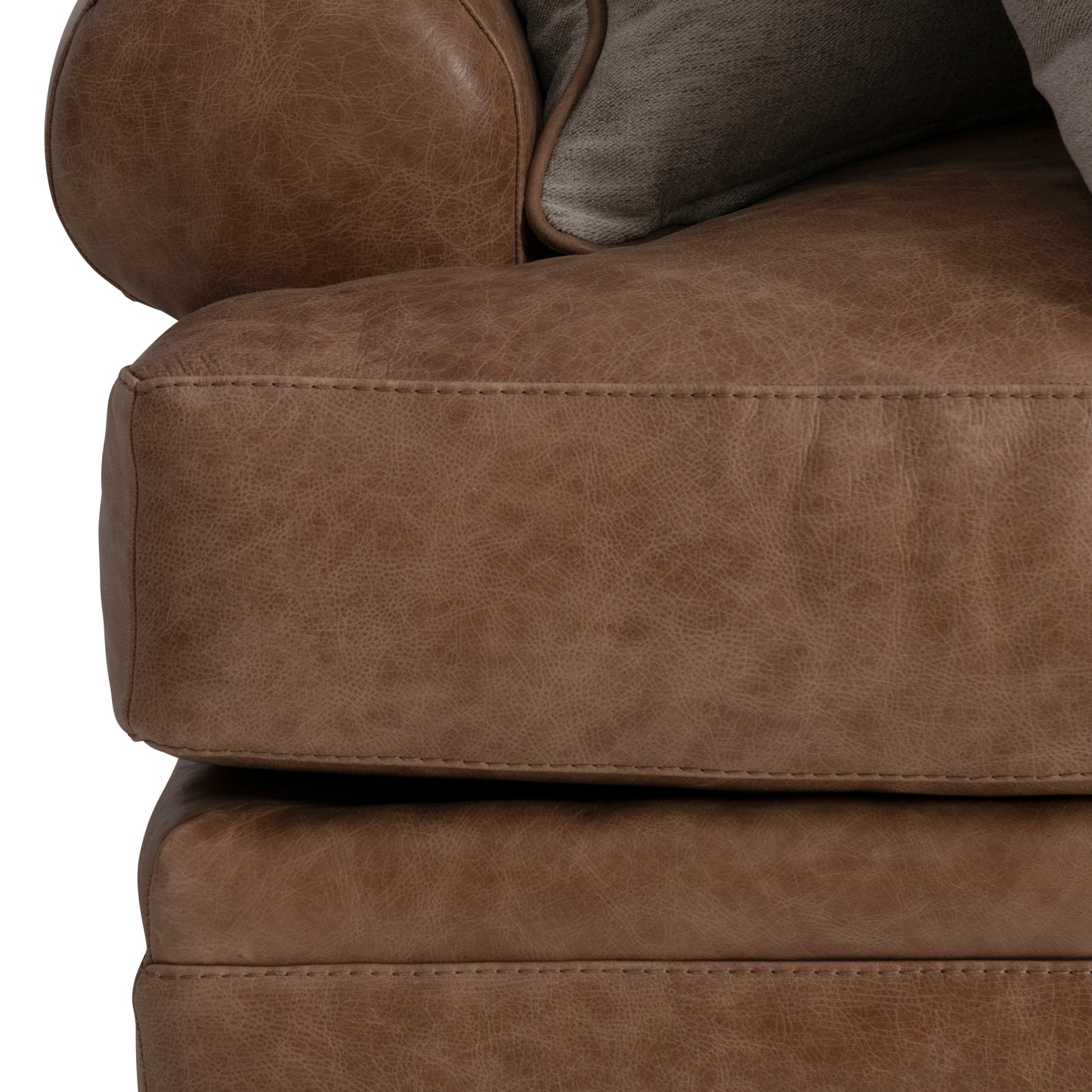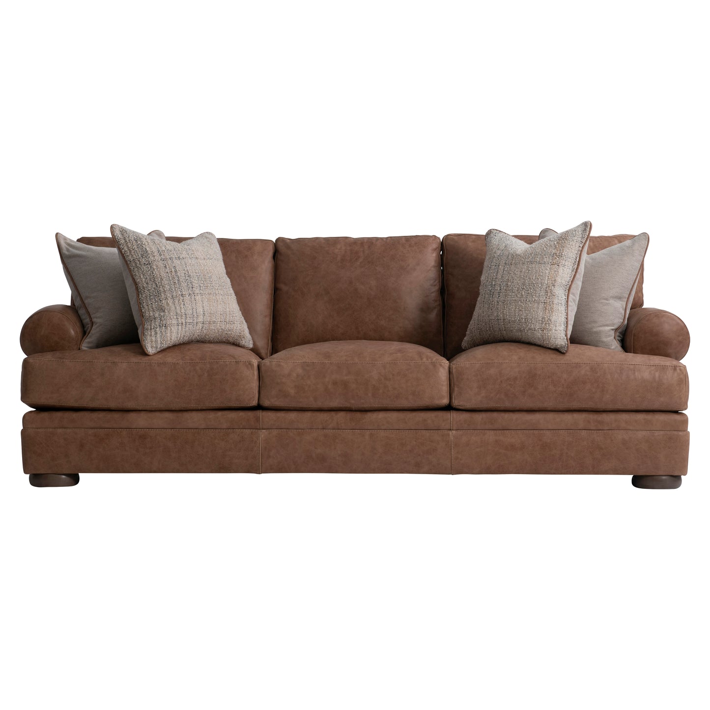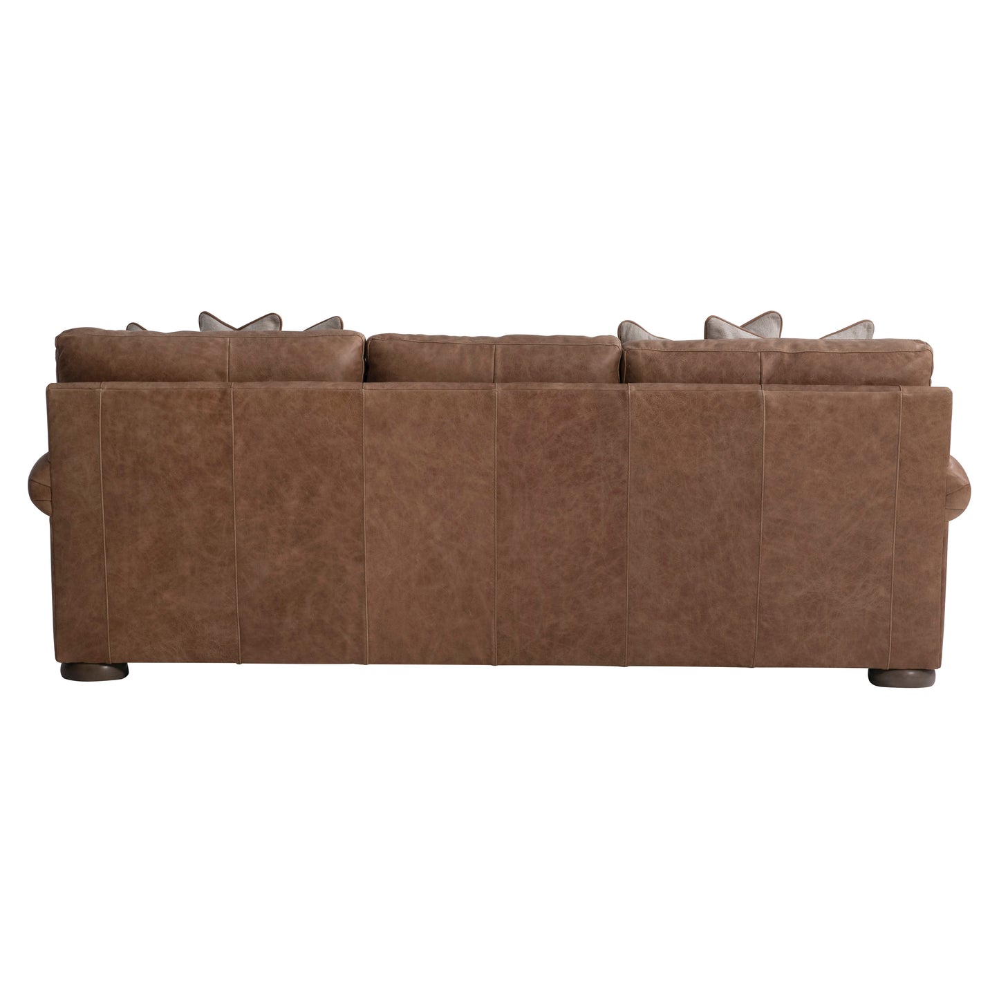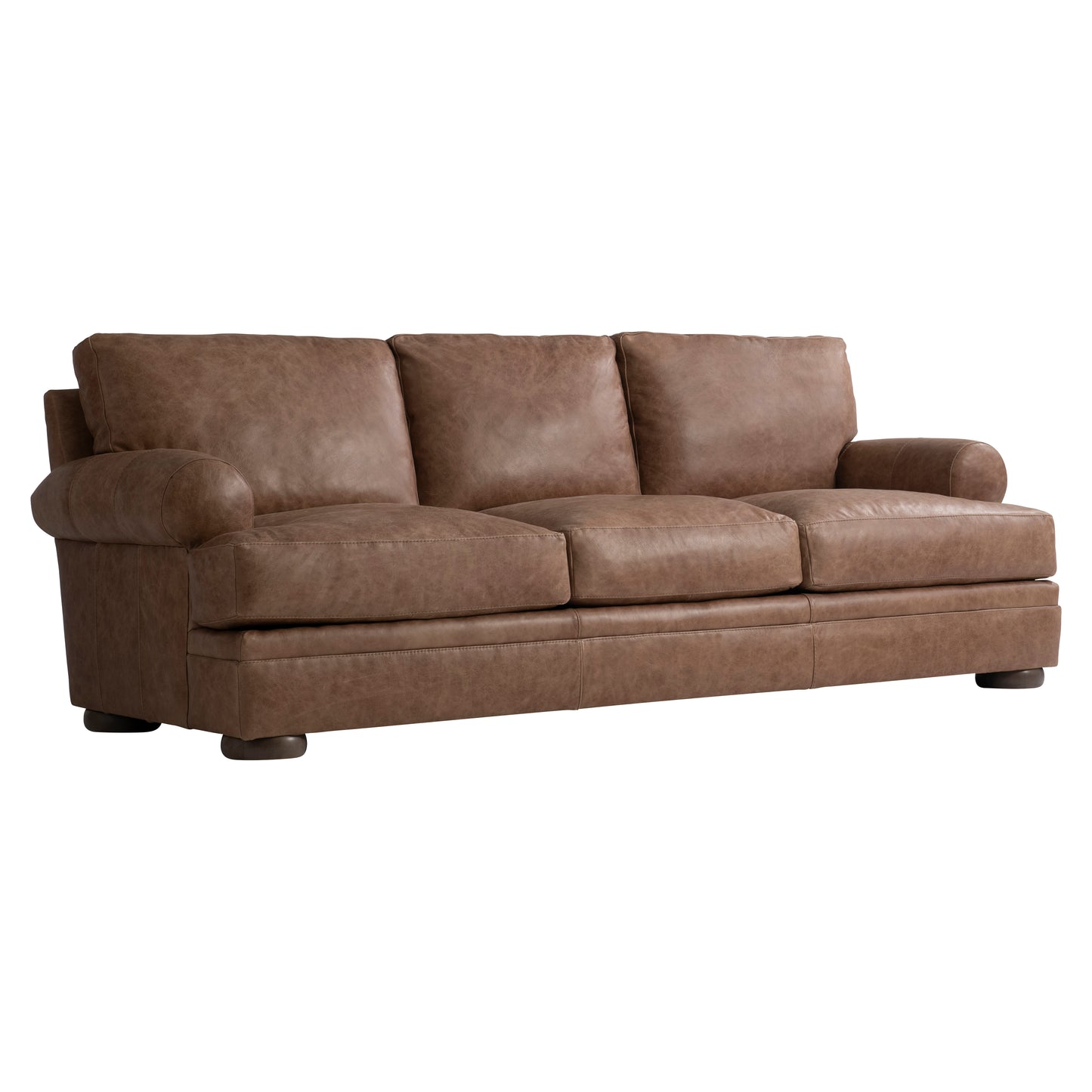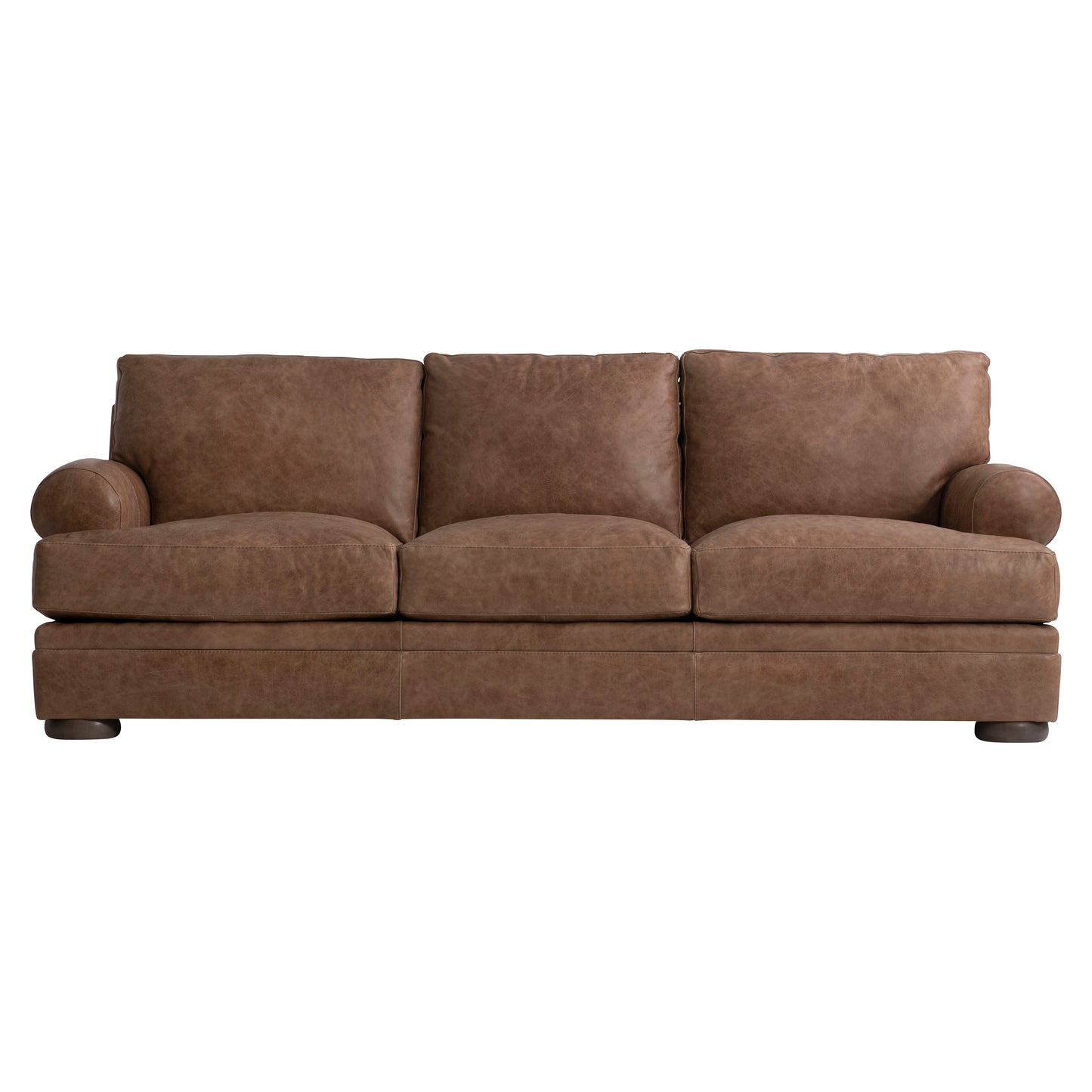 The Harrison sofa has lush curves and deep cushions that highlight comfort and style. Tailored details include stitched welts on the sides and back, beautifully curved arms, and a deep base. Luxe leather wraps the frame for an updated traditional design.