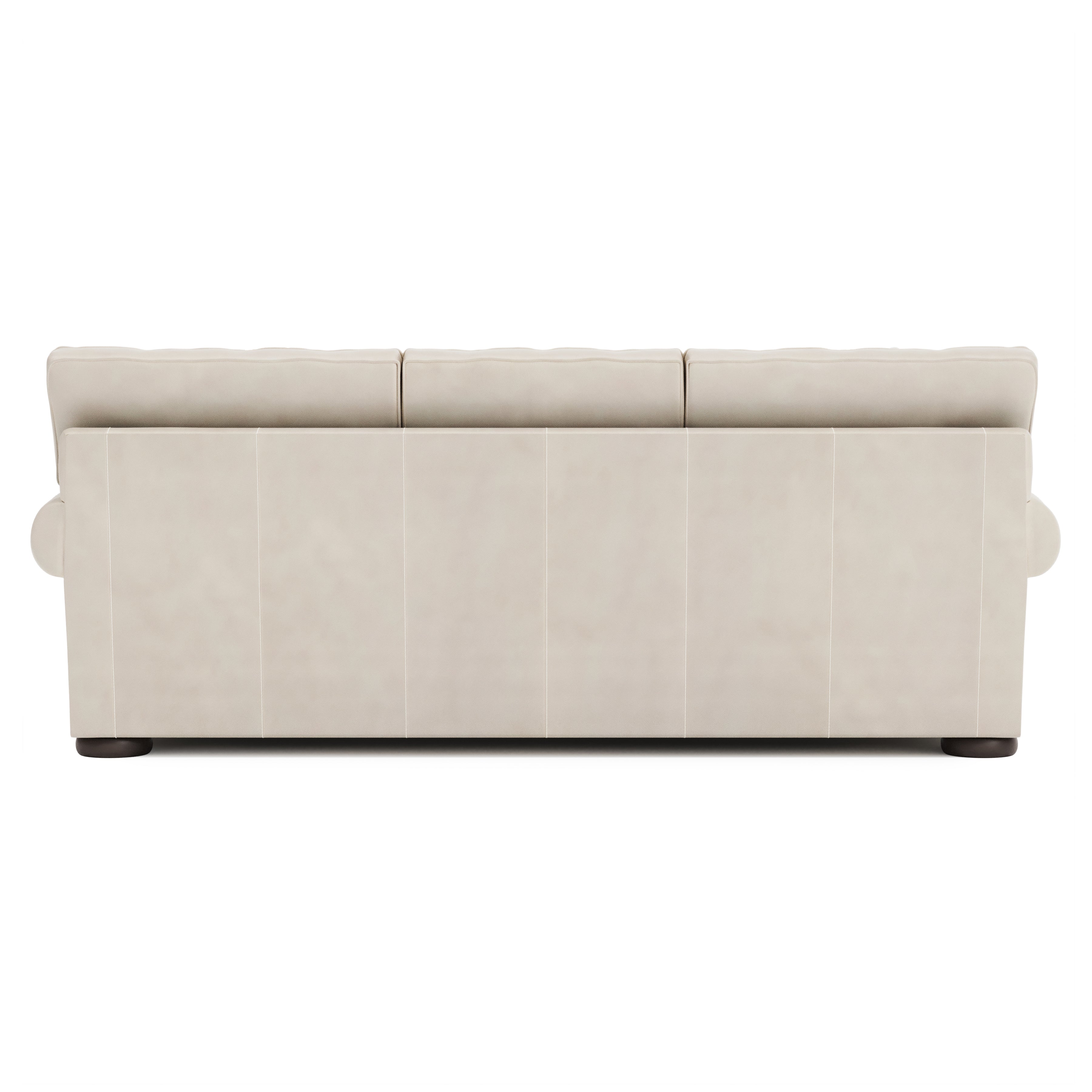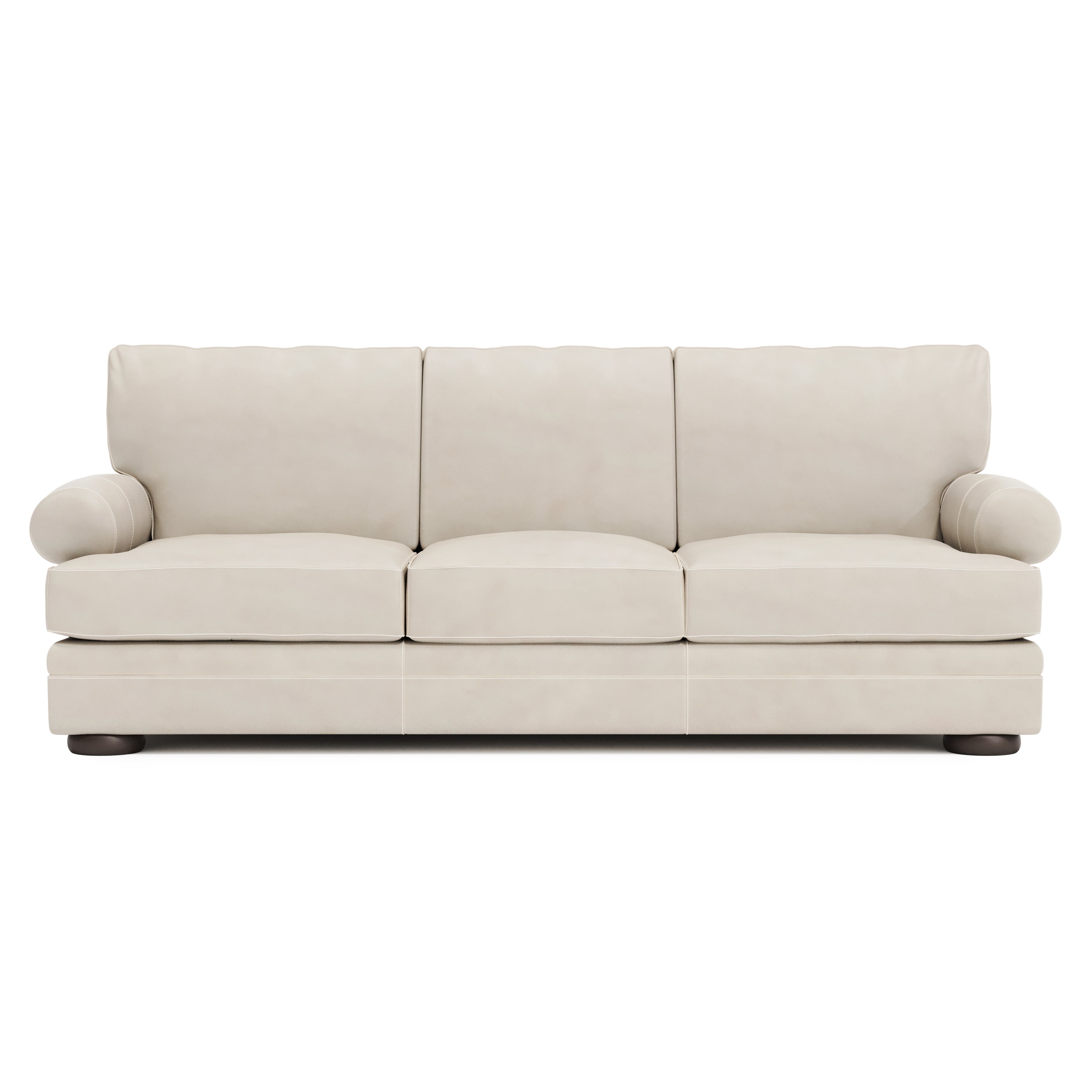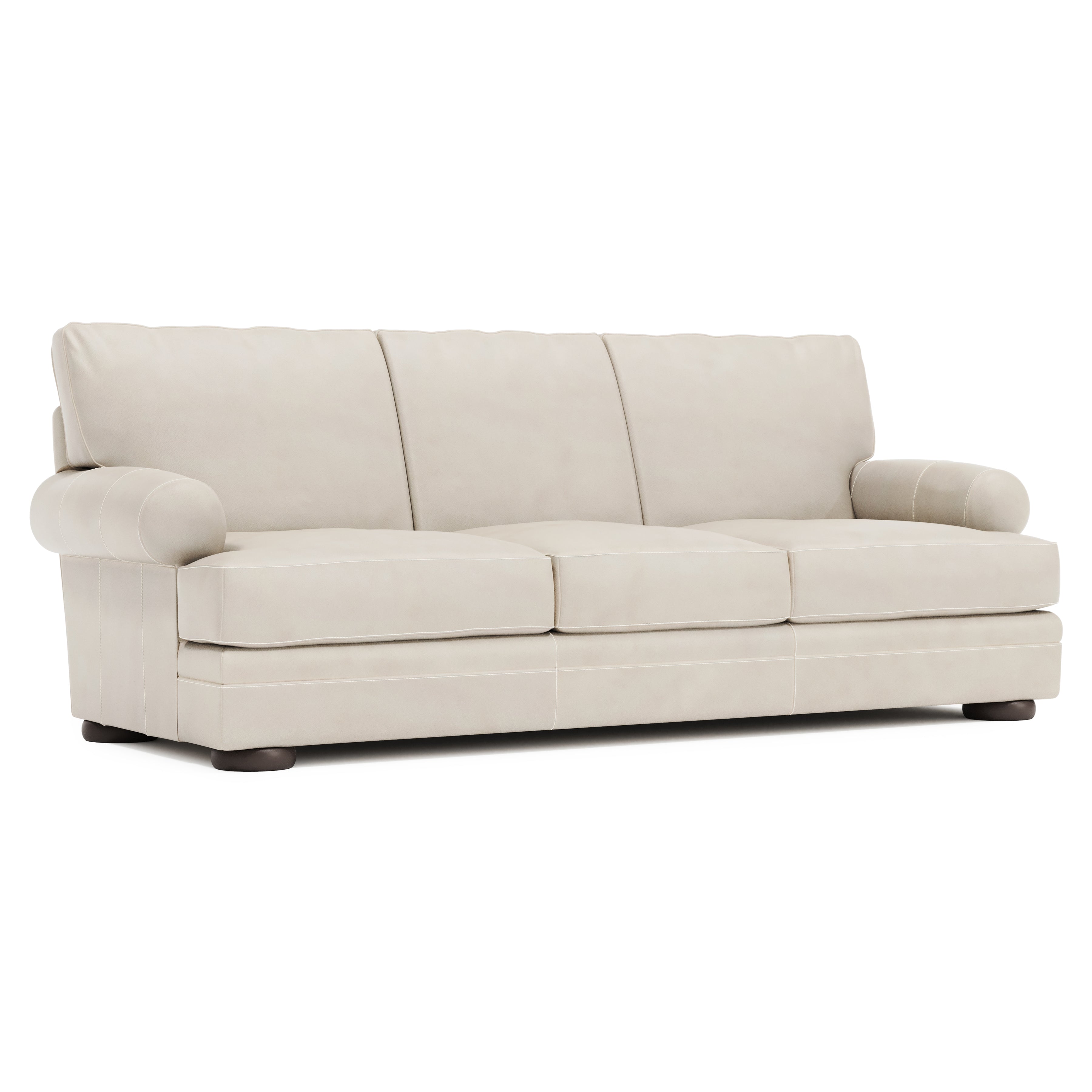 Rounded arms and deeply plush cushions offer both comfort and style for the Harrison leather sofa. Stitched details run from the arms down the sides, giving the design a tailored look. Block feet are rounded for a more modern finish.