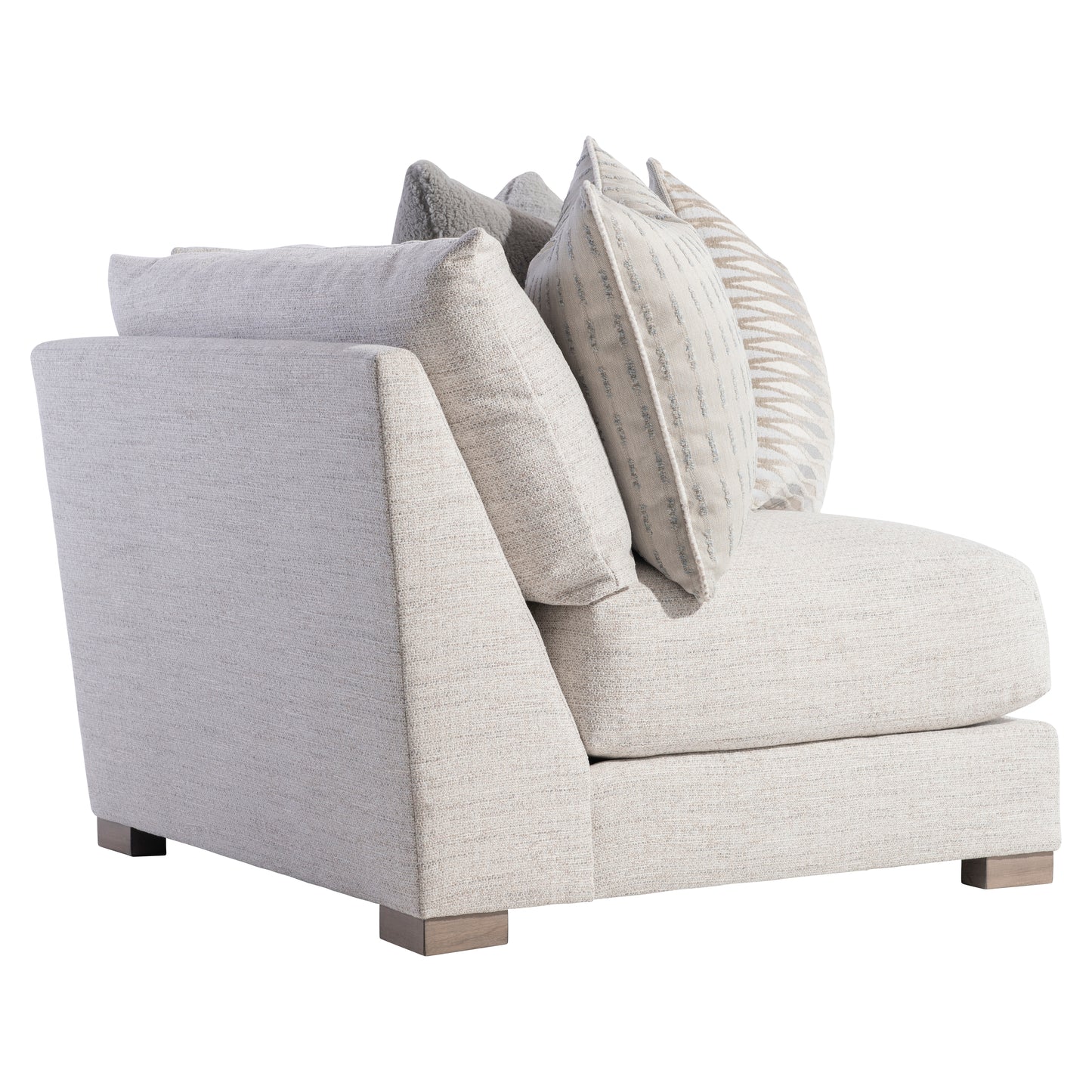 The perfectly named Heavenly corner chair offers a deep, lush cushion, two knife-edge back pillows and curated throw pillows to create a blissful seat. Angled back panels add to the comfort quotient. The chair can stand alone or be used as part of the Heavenly sectional.