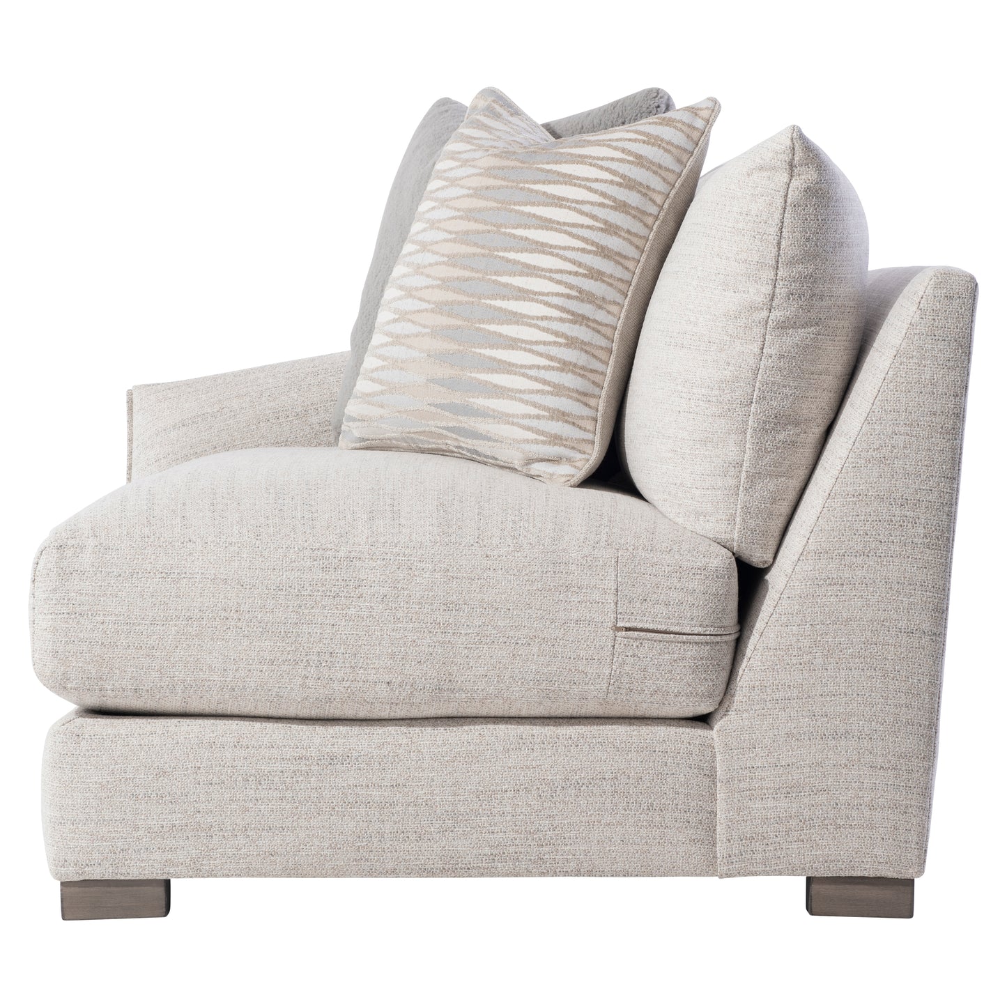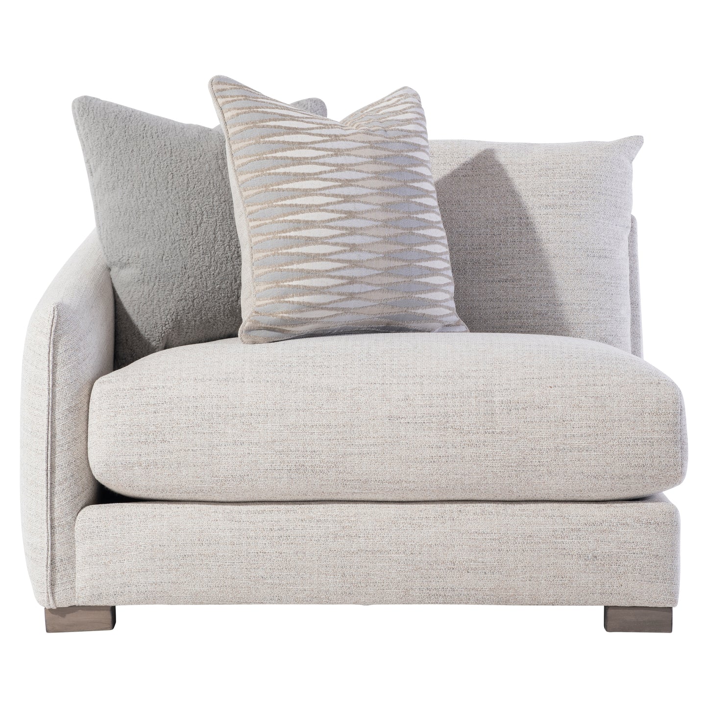 The perfectly named Heavenly left arm chair offers a deep, lush cushion, a knife-edge back pillow and curated throw pillows to create a blissful seat. An angled back panel and a padded arm with flange detailing add to the comfort quotient. The chair can stand alone or be used as part of the Heavenly sectional.