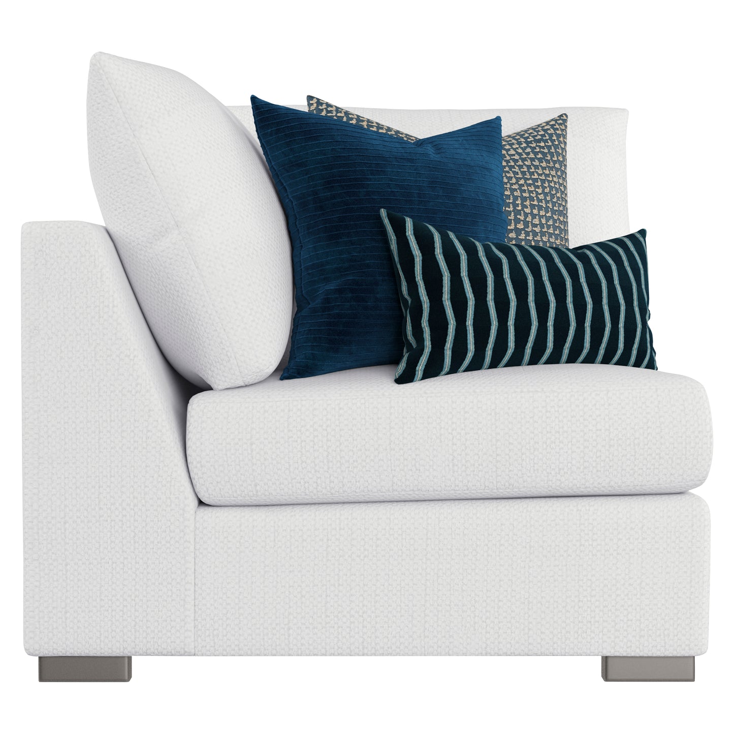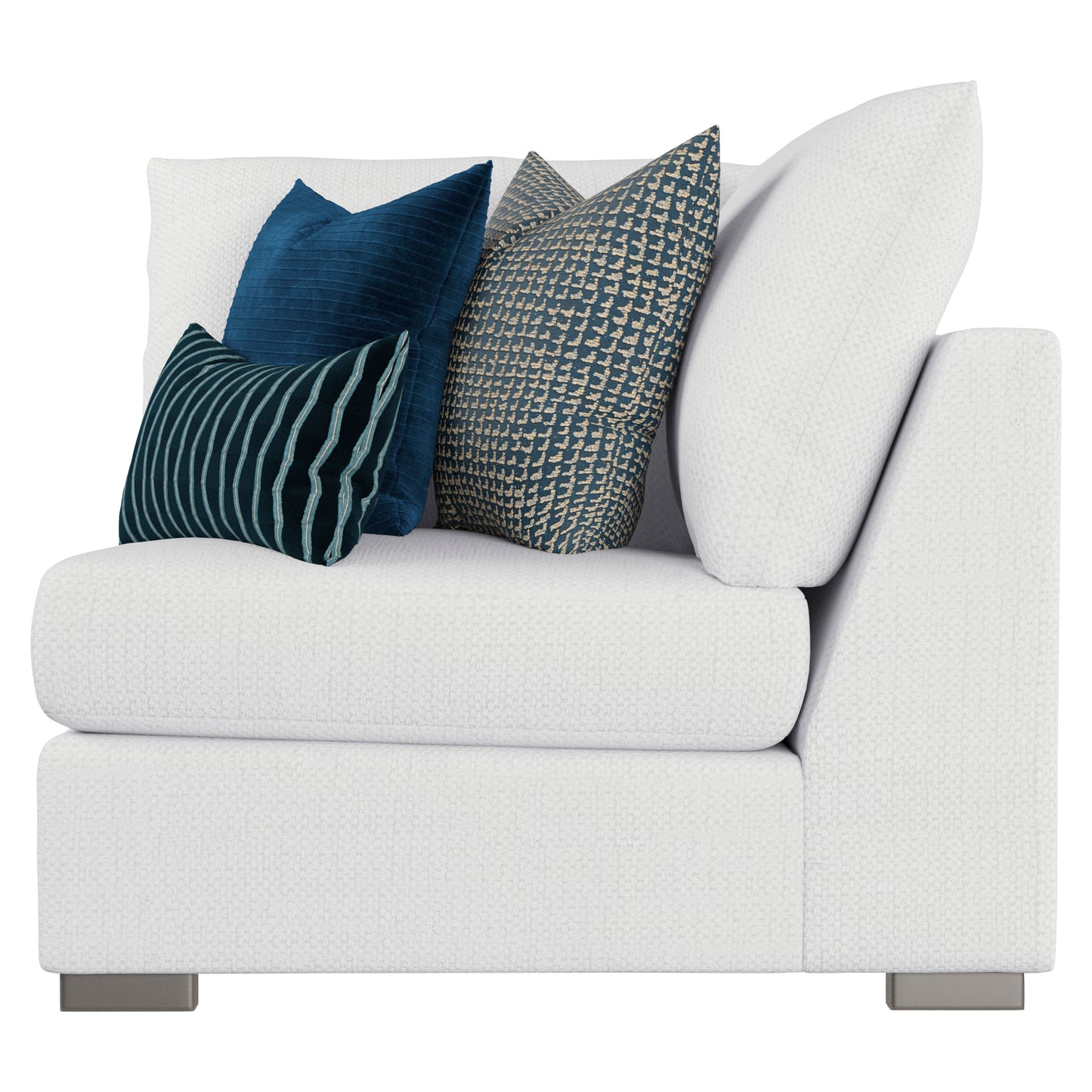 Traditional in shape and style the Helena corner chair shows off its modern side with substantial, chunky legs. It is wrapped in beautiful neutral fabric and filled with Luxe Feather Down to offer a welcoming spot for repose. Elegant and exquisitely crafted, this piece will elevate the style of any interior.