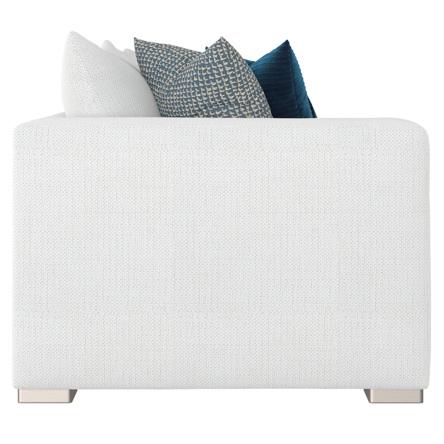(2) Fiber back pillows-knife edge weltless with topstitch. (2) Luxe Feather Down seat cushions. Sinuous Spring. (1) Blendown throw pillow-knife edge weltless-23"x23"; (1) Blendown throw pillow-knife edge weltless-21"x21"; (1) Blendown kidney pillow-knife edge weltless-12"x22".