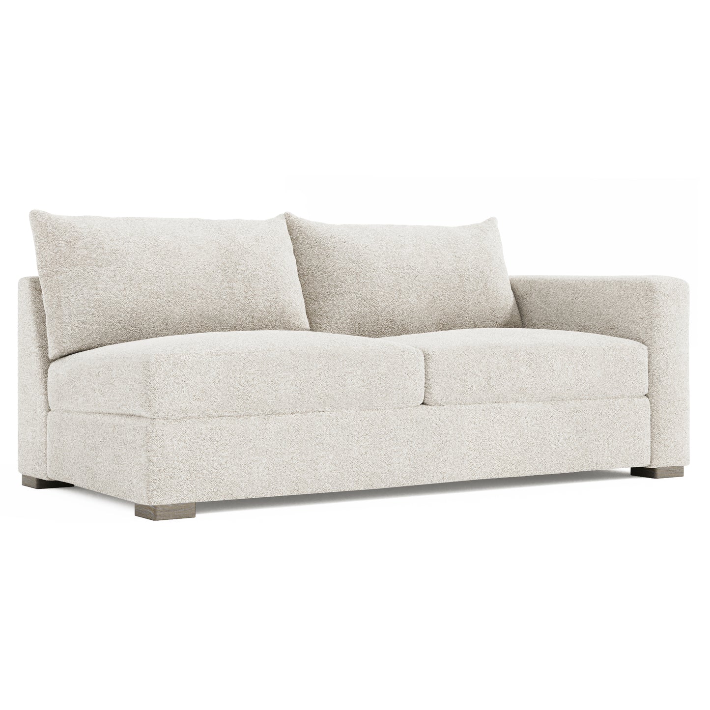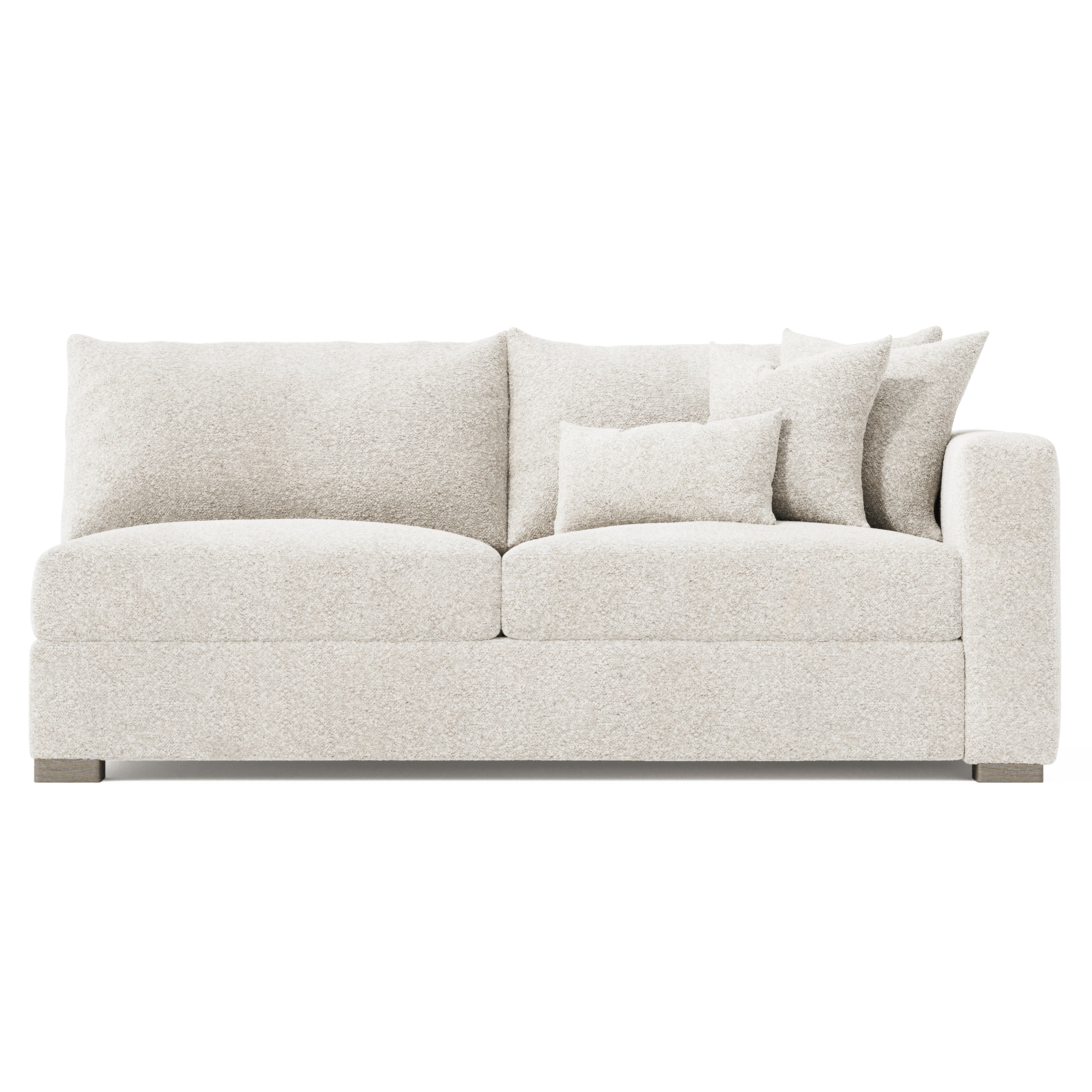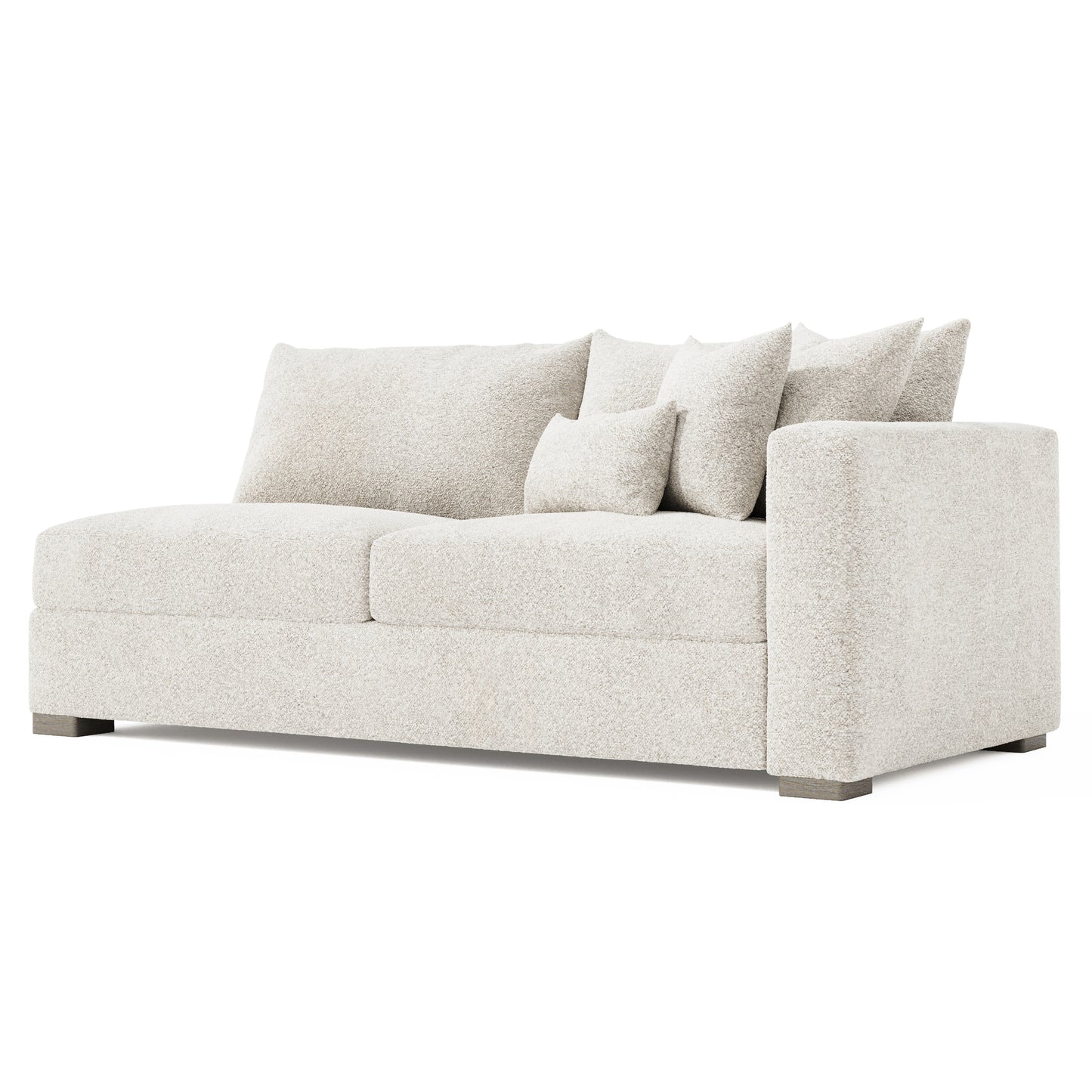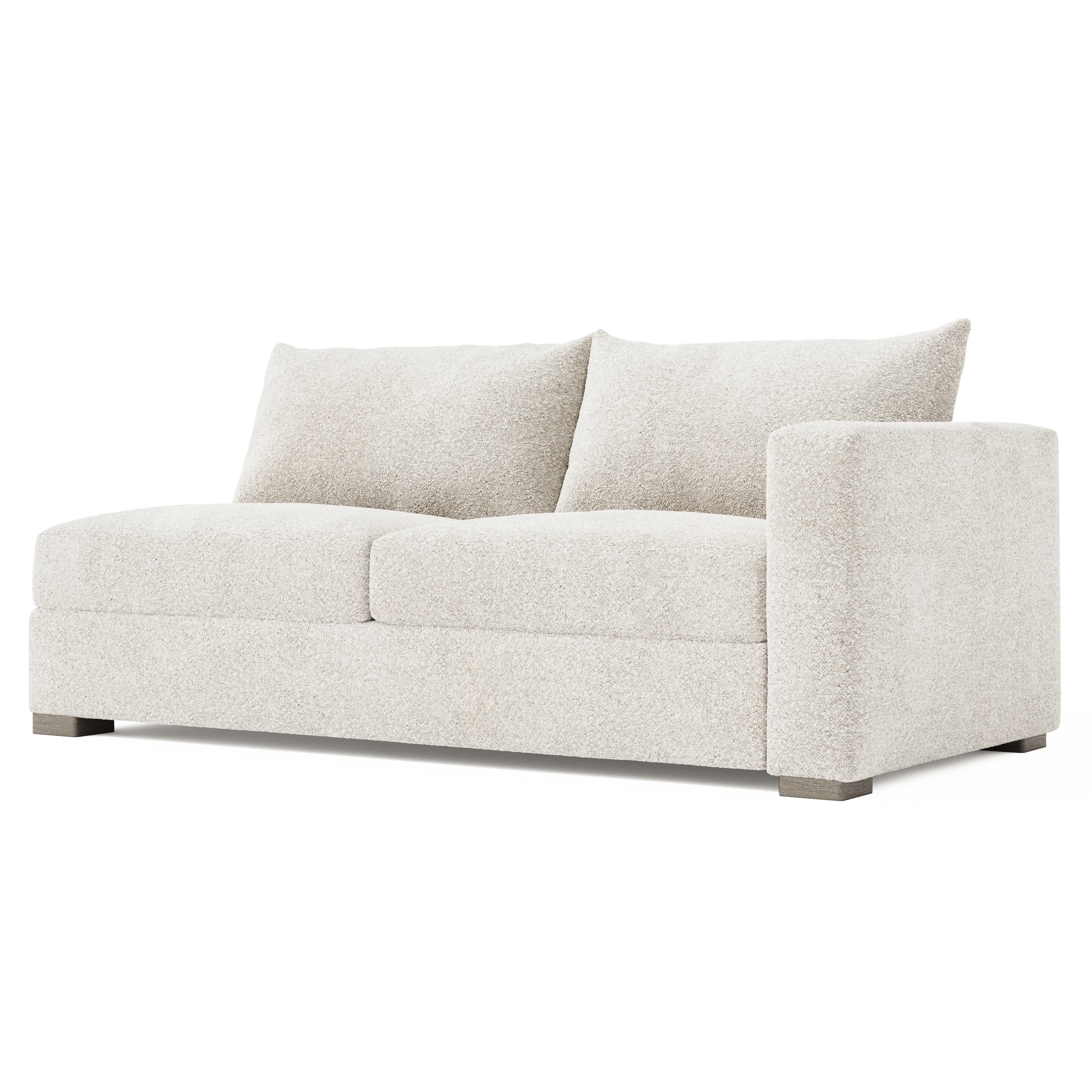 Traditional in shape and style the Helena right arm loveseat shows off its modern side with substantial, chunky legs. It is wrapped in beautiful neutral fabric and filled with Luxe Feather Down to offer a welcoming spot for repose. This piece can stand alone, or be part of the Helena sectional