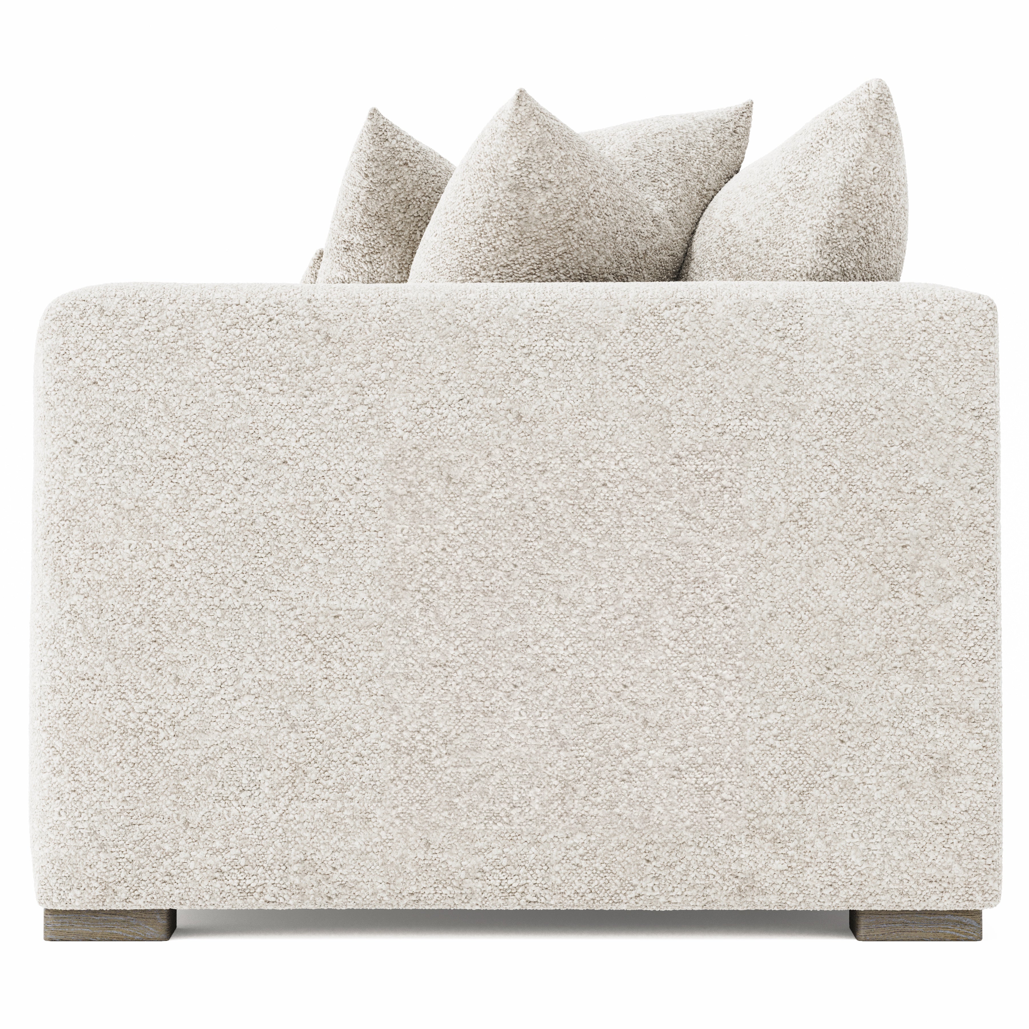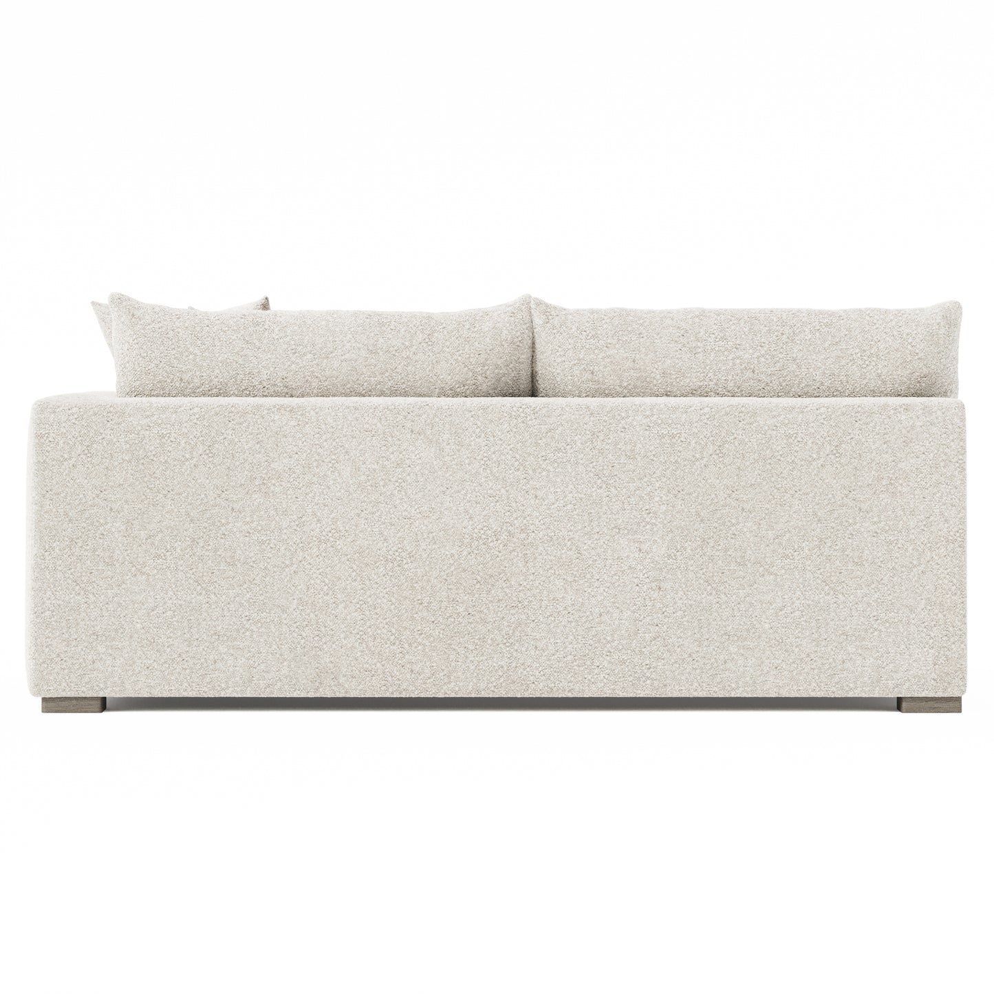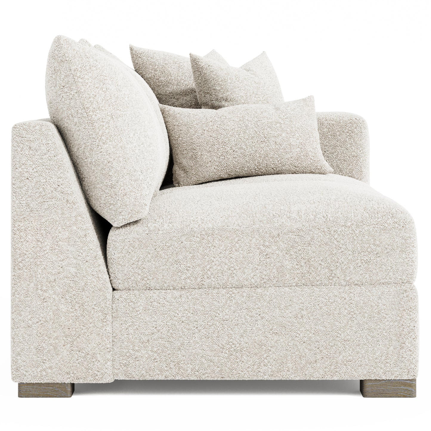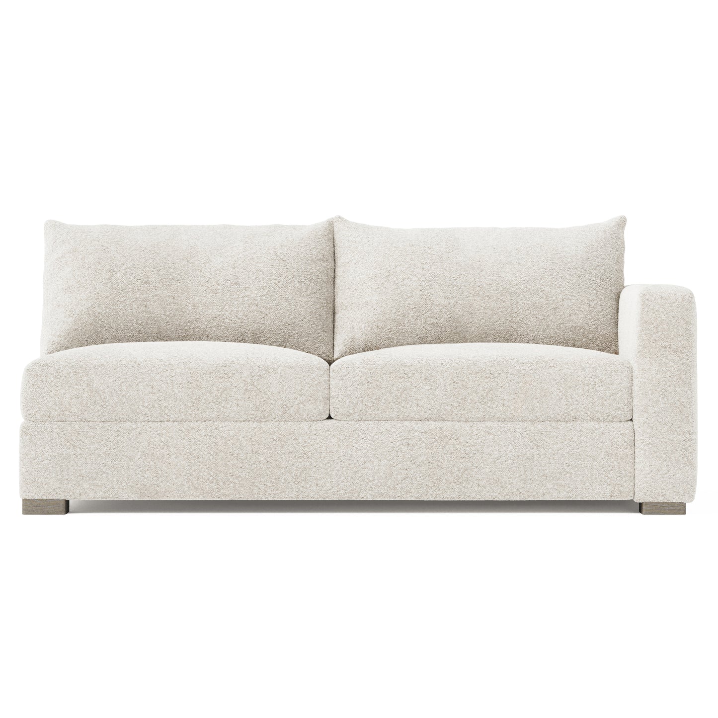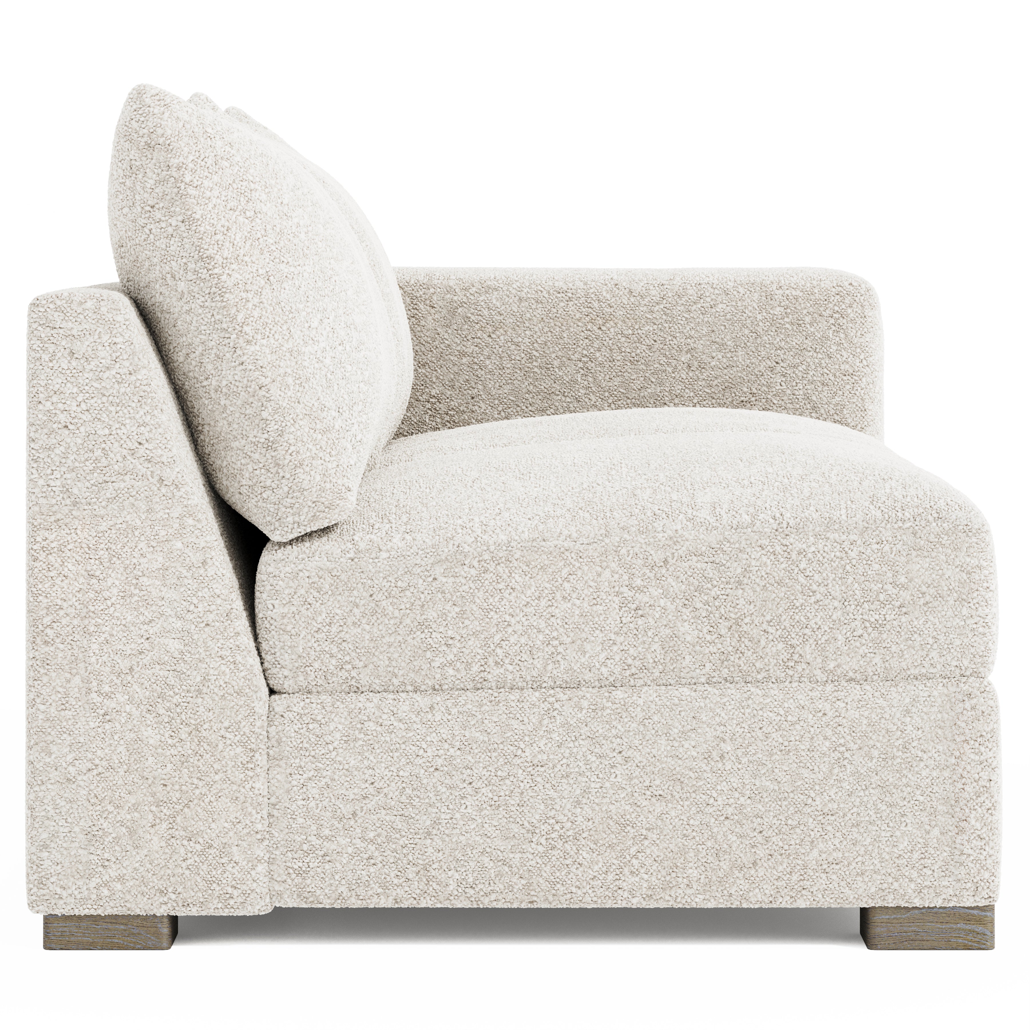 Traditional in shape and style the Helena right arm loveseat shows off its modern side with substantial, chunky legs. It is wrapped in beautiful neutral fabric and filled with Luxe Feather Down to offer a welcoming spot for repose. This piece can stand alone, or be part of the Helena sectional