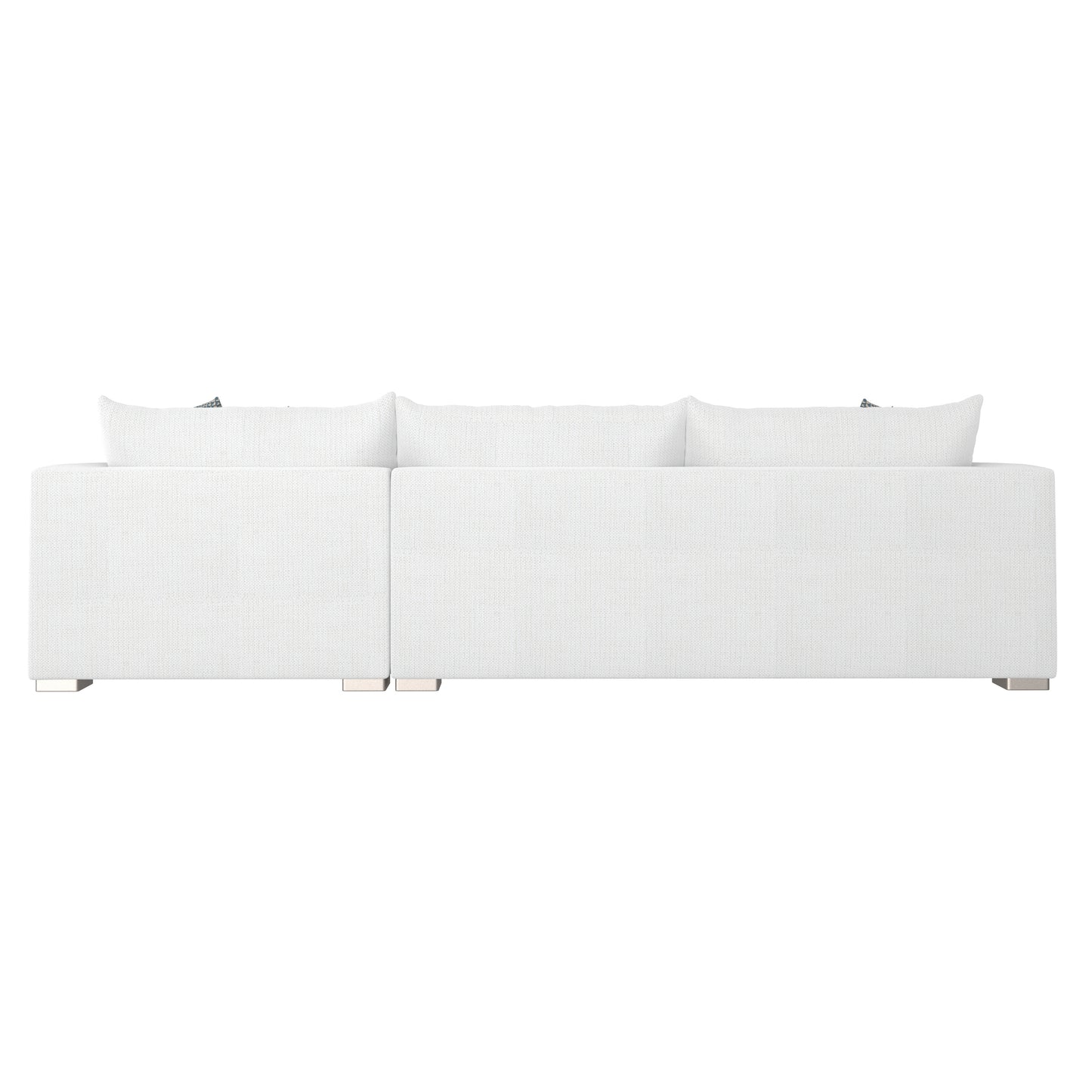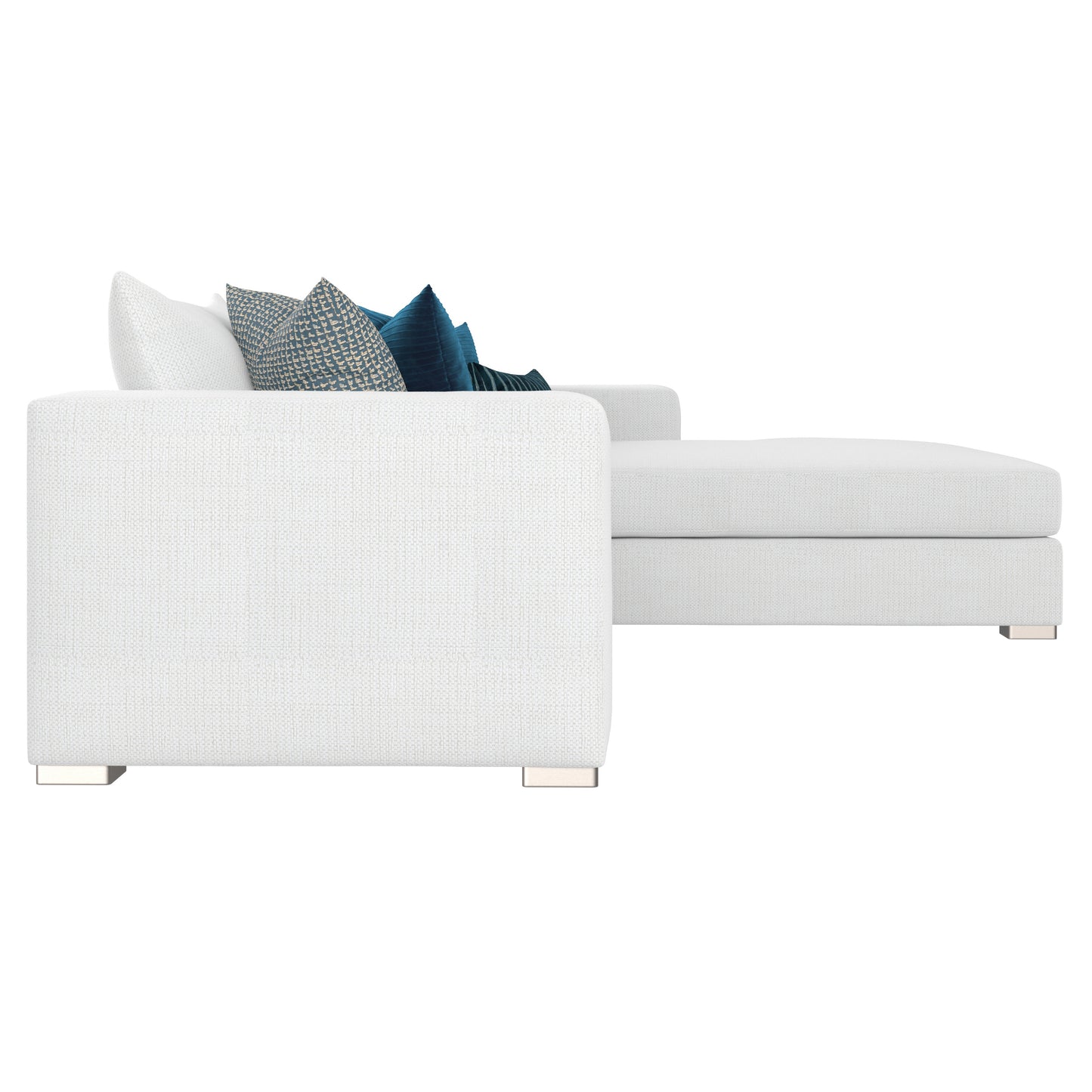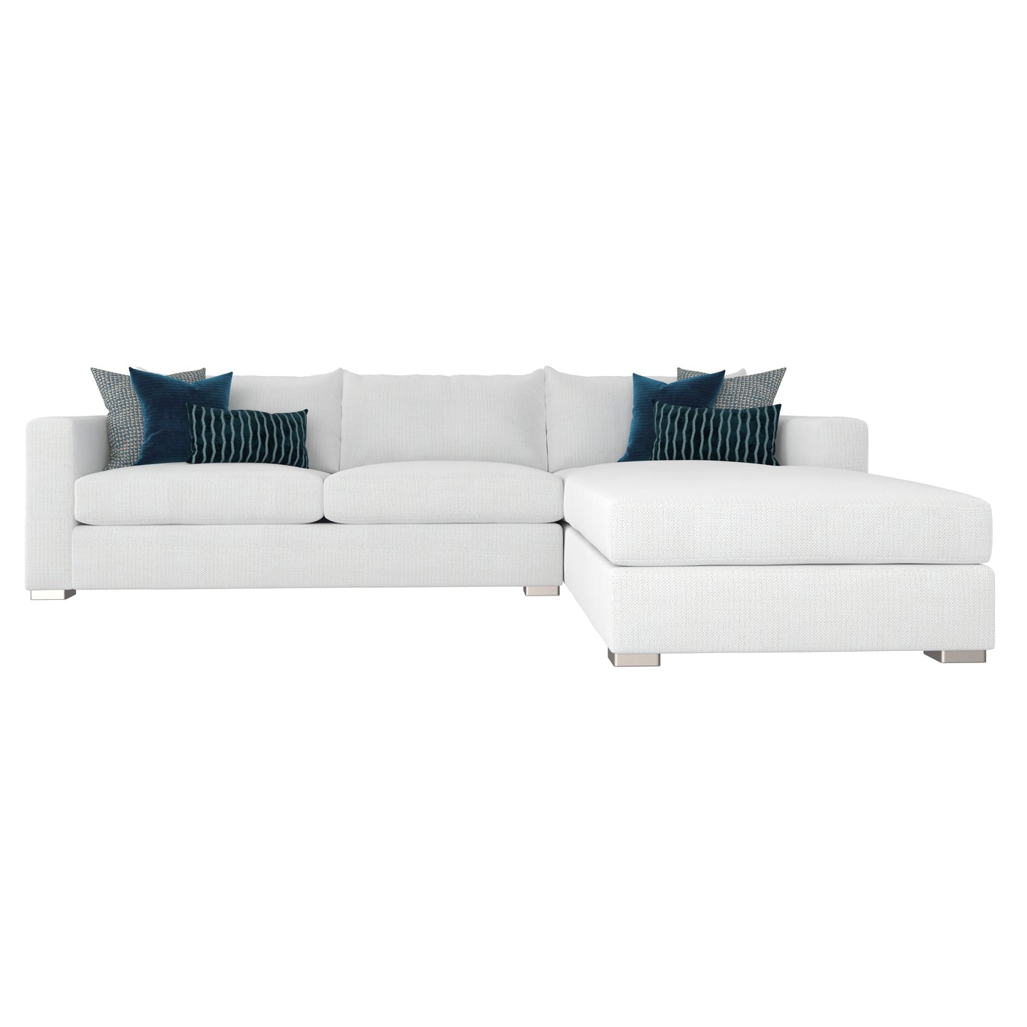 The Helena sectional's oversized track arms, low profile, and brushed stainless steel feet lend it a streamlined look rooted in contemporary design. Designed with sinuous spring construction for durability and comfort, the sectional offers luxe feather-down cushions for the ultimate in relaxation.