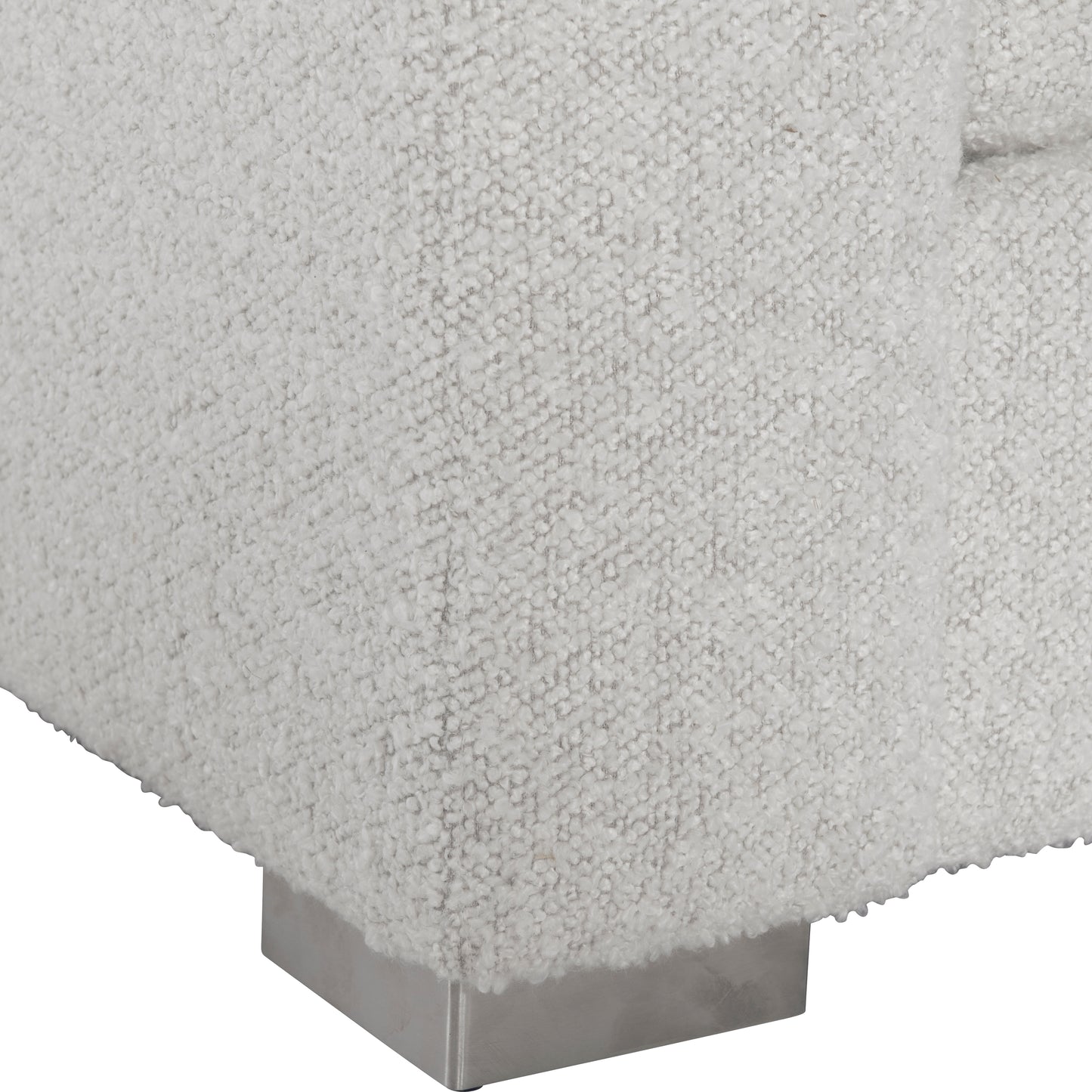 The Helena sofa's oversized track arms, low profile, and brushed stainless steel feet lend it a streamlined look rooted in contemporary design. Designed with sinuous spring construction for durability and comfort, the sofa offers luxe feather-down cushions for the ultimate in relaxation.