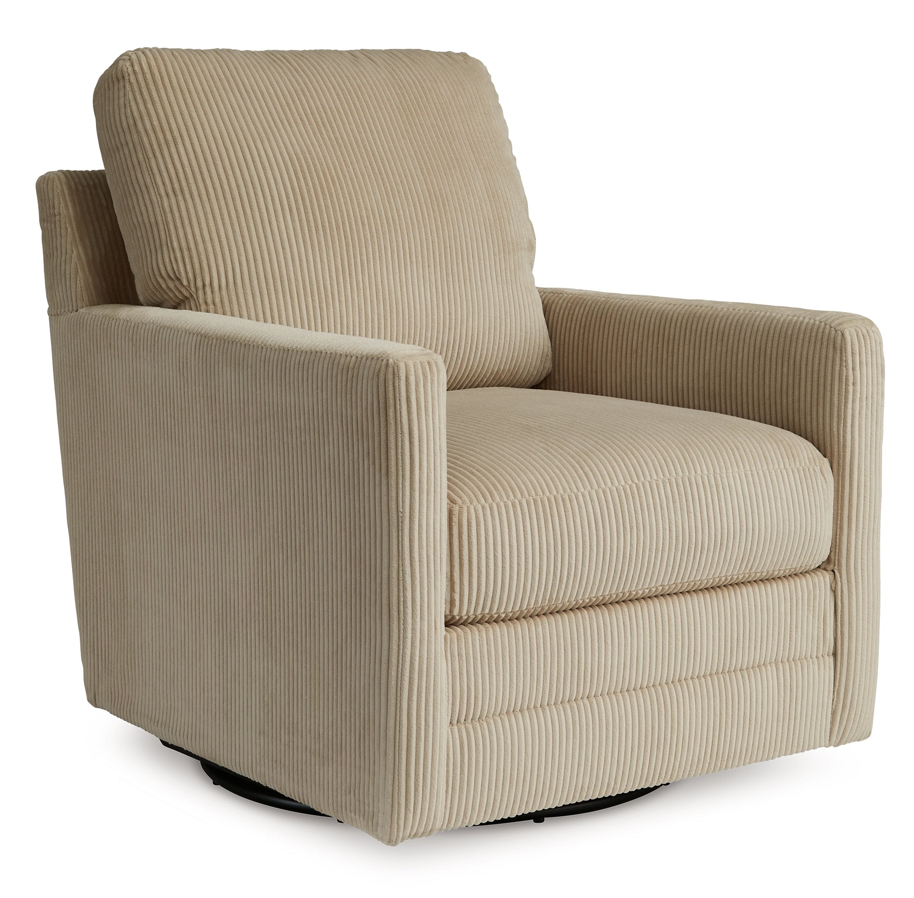 Clean-lined, contemporary style. Relaxed, homey comfort. This swivel chair has it all. Lightweight navy blue corduroy upholstery makes it a cozy yet head-turning piece. Factor in the 360-degree spin, and you've got a win-win.