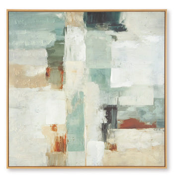 Develop a space with dimension when you hang this wall art. Abstract shades of green, tan, white and rust mingle in an assortment of soothing hues to make a subtly eye-catching impression. Decidedly modern, it works as a fresh addition to your gallery wall or a solo statement piece.