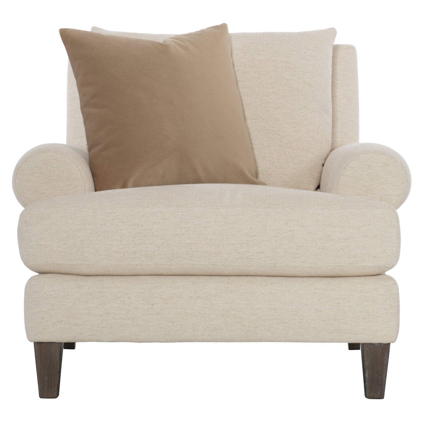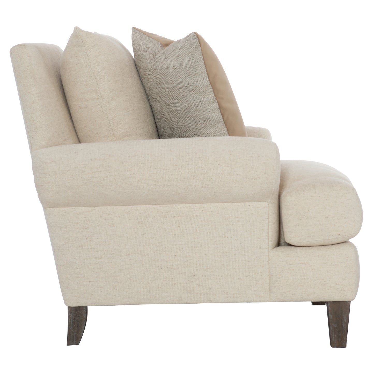 The Isabella collection offers a casual transitional roll arm with deep, plush seating. Shown in a soft, ecru chenille cover accented with textured toss pillows, this classic style is sure to impress any space!