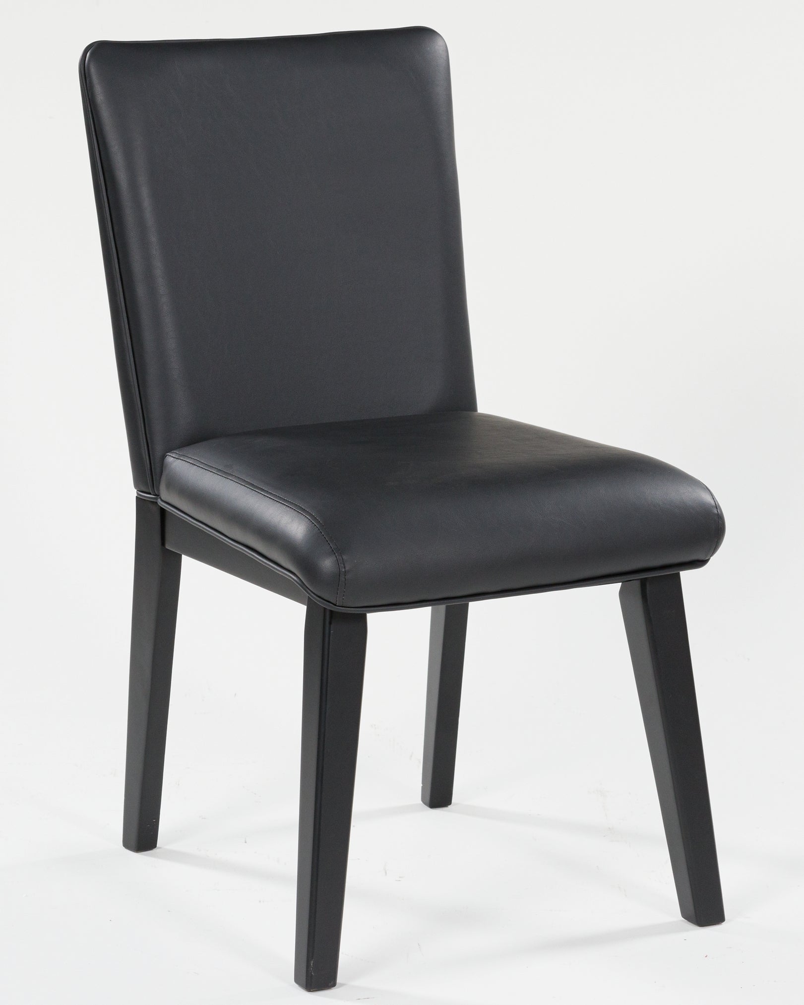 This dining chair exudes modern sophistication. Finished in a sleek black wood-tone with black faux leather upholstery for added comfort and style, it brings a beautifully balanced look to the table. A simply striking feast for the eyes—now your only worry is who to invite for dinner.
