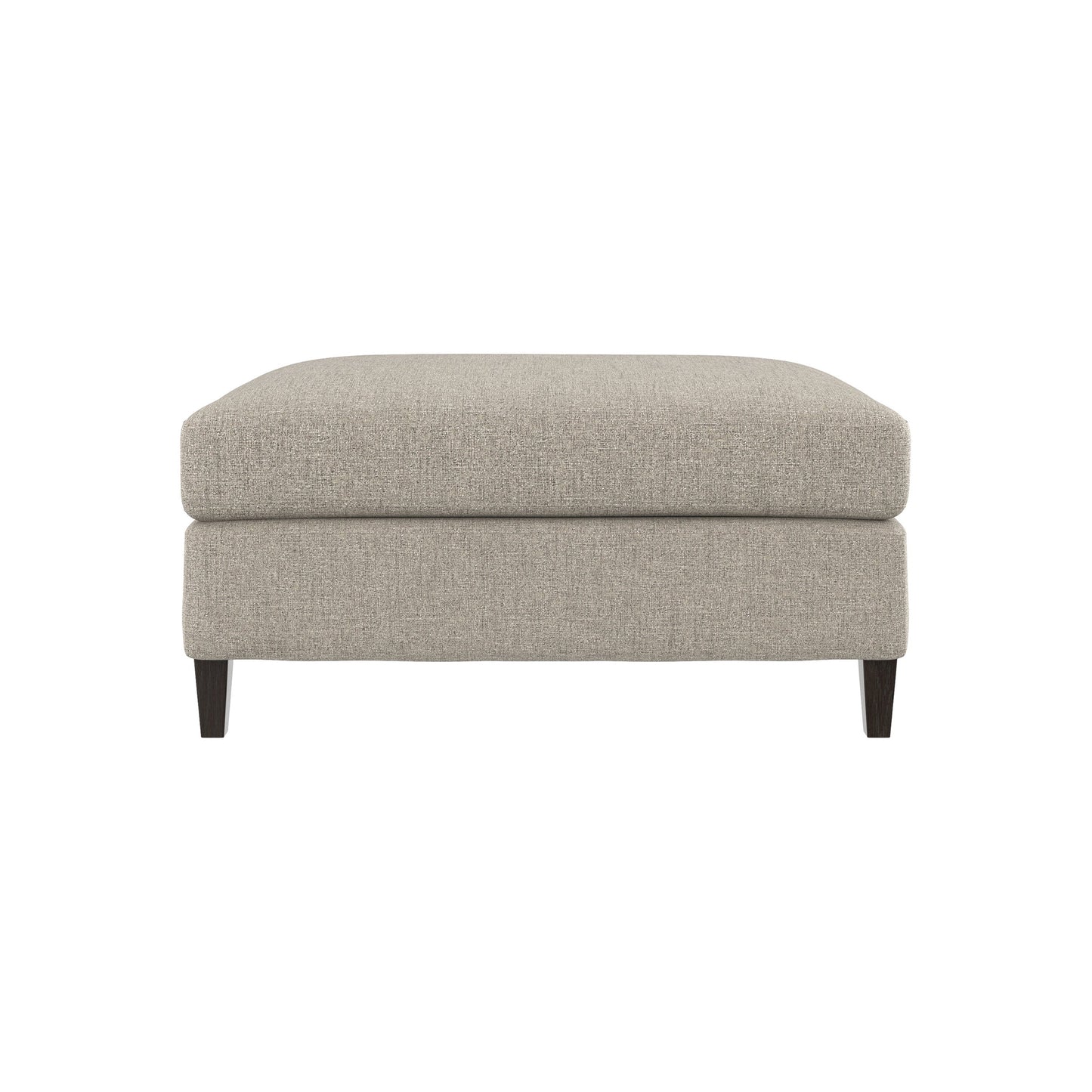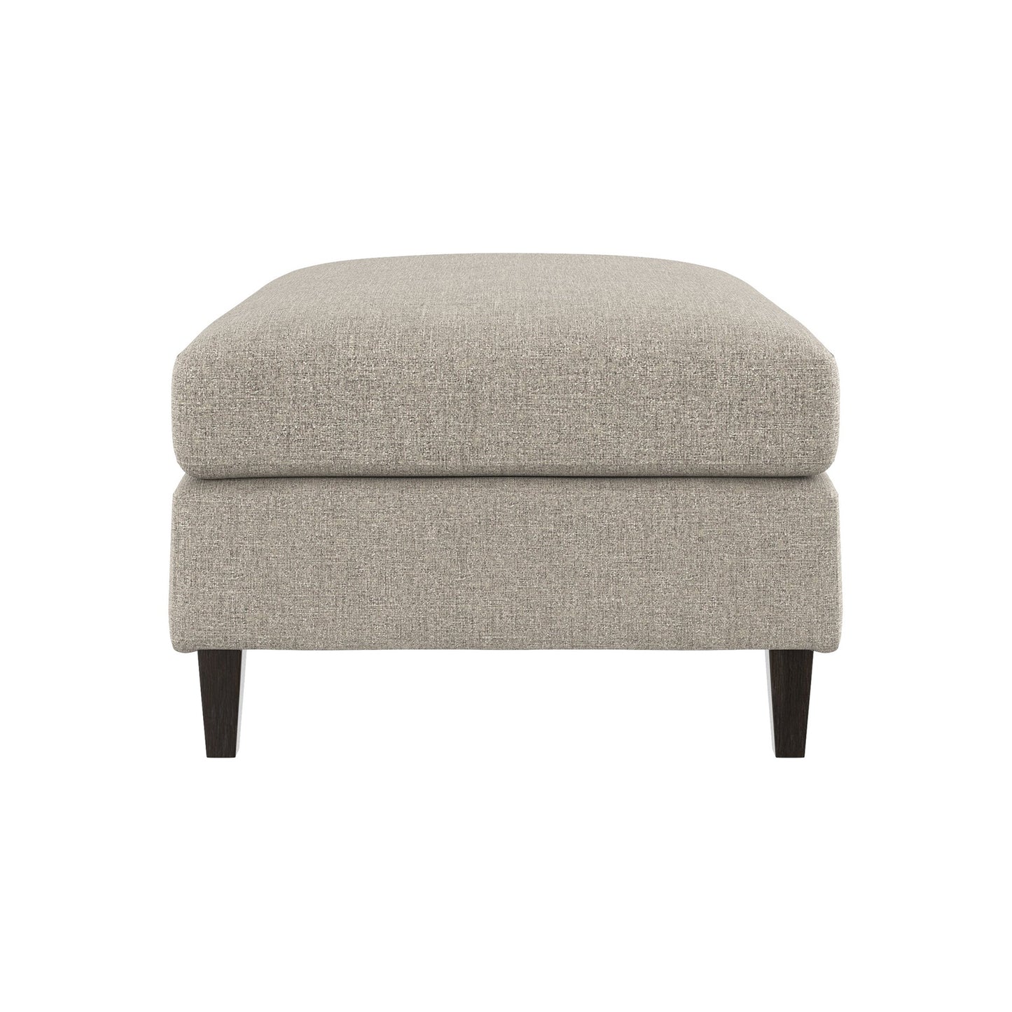 Low European-style seating. Rectangular ottoman. Exposed wood legs.