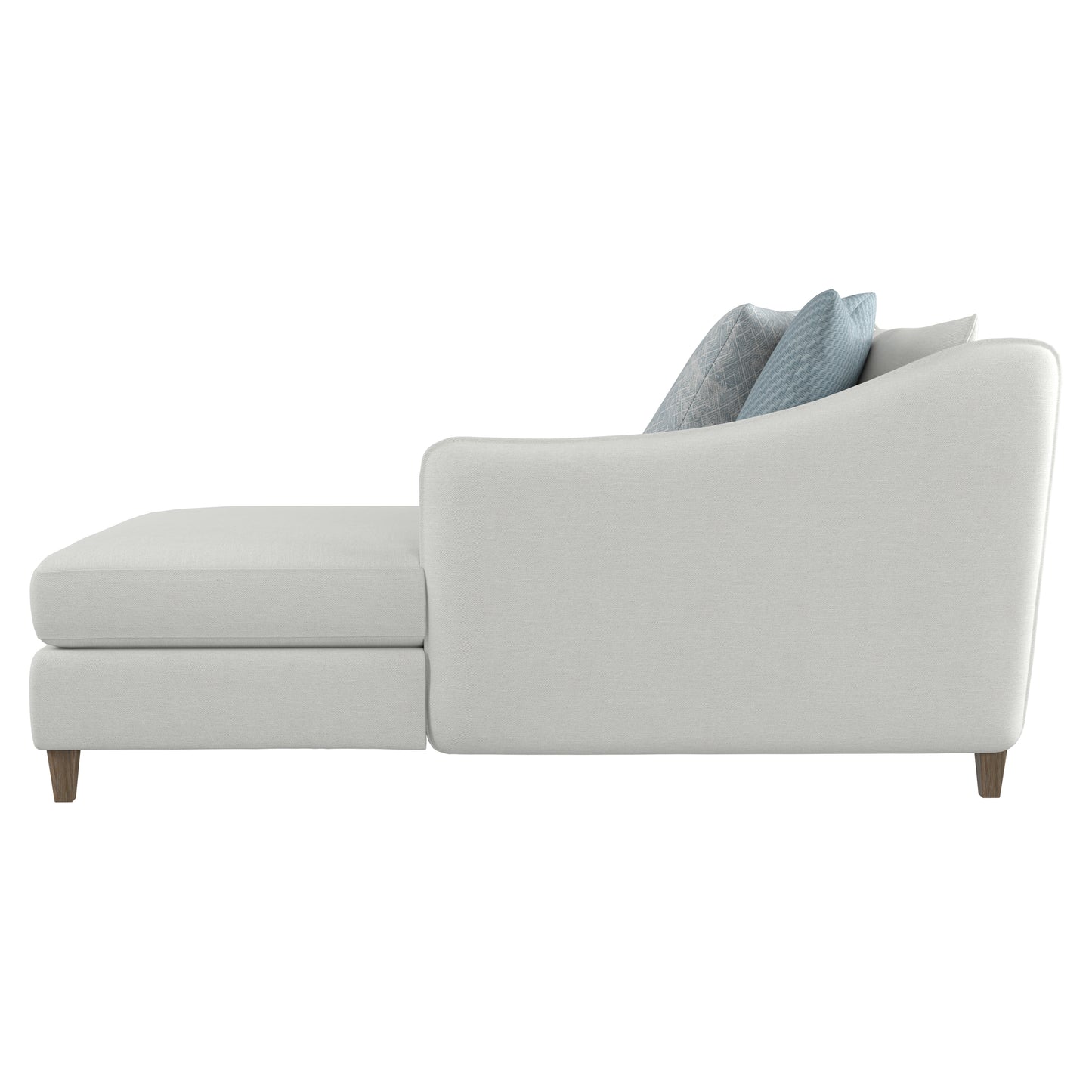 Sophisticated European style meets casual elegance. With a low, deep seat and superior plush cushioning, the Joli right arm chaise is the ultimate in comfort. Stylish and modern, this piece combines natural fabrics with relaxed tailoring and gracious scale. A sloped arm and sleek tapered legs complete the contemporary look.