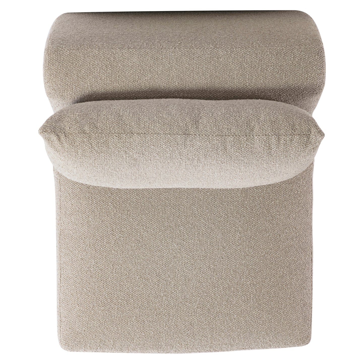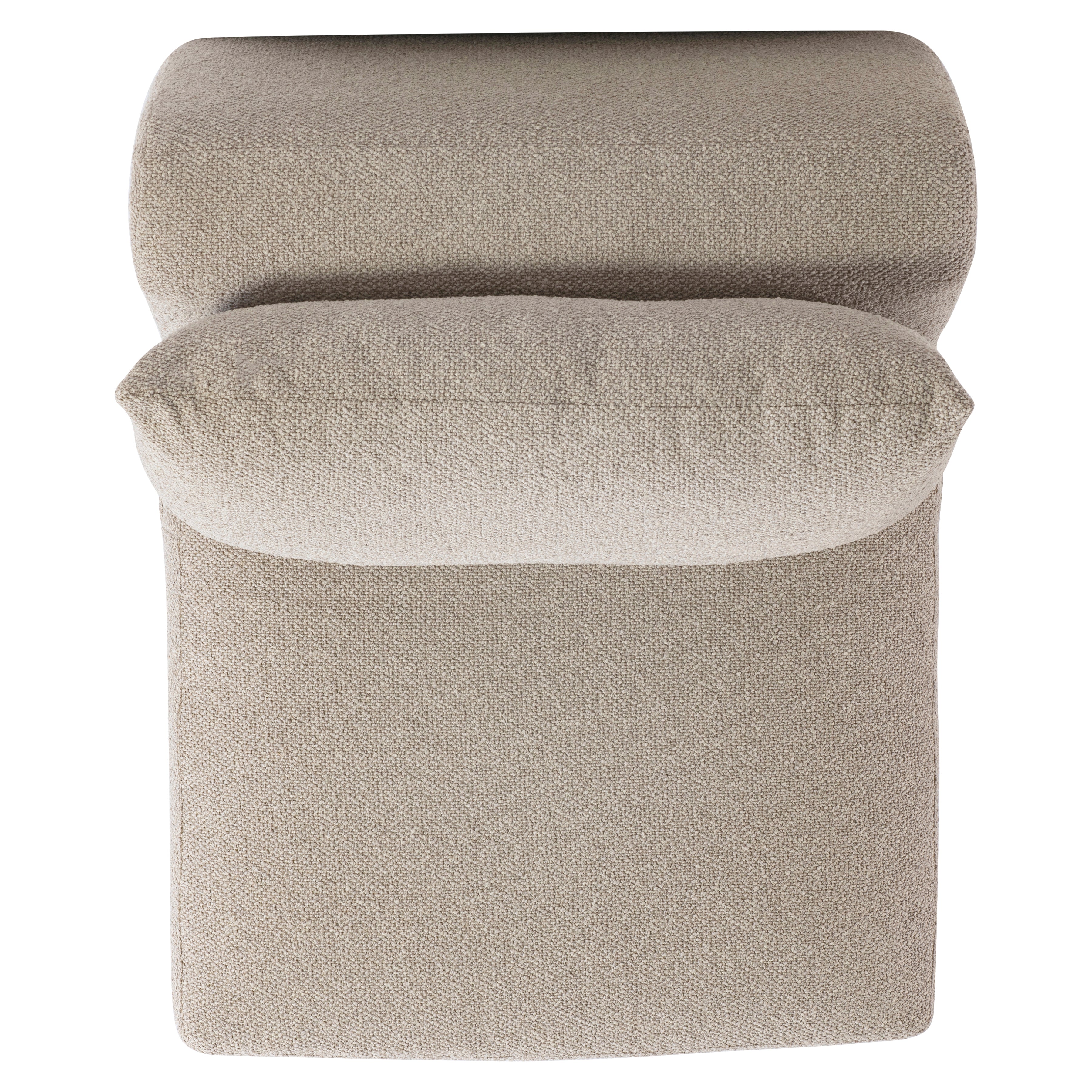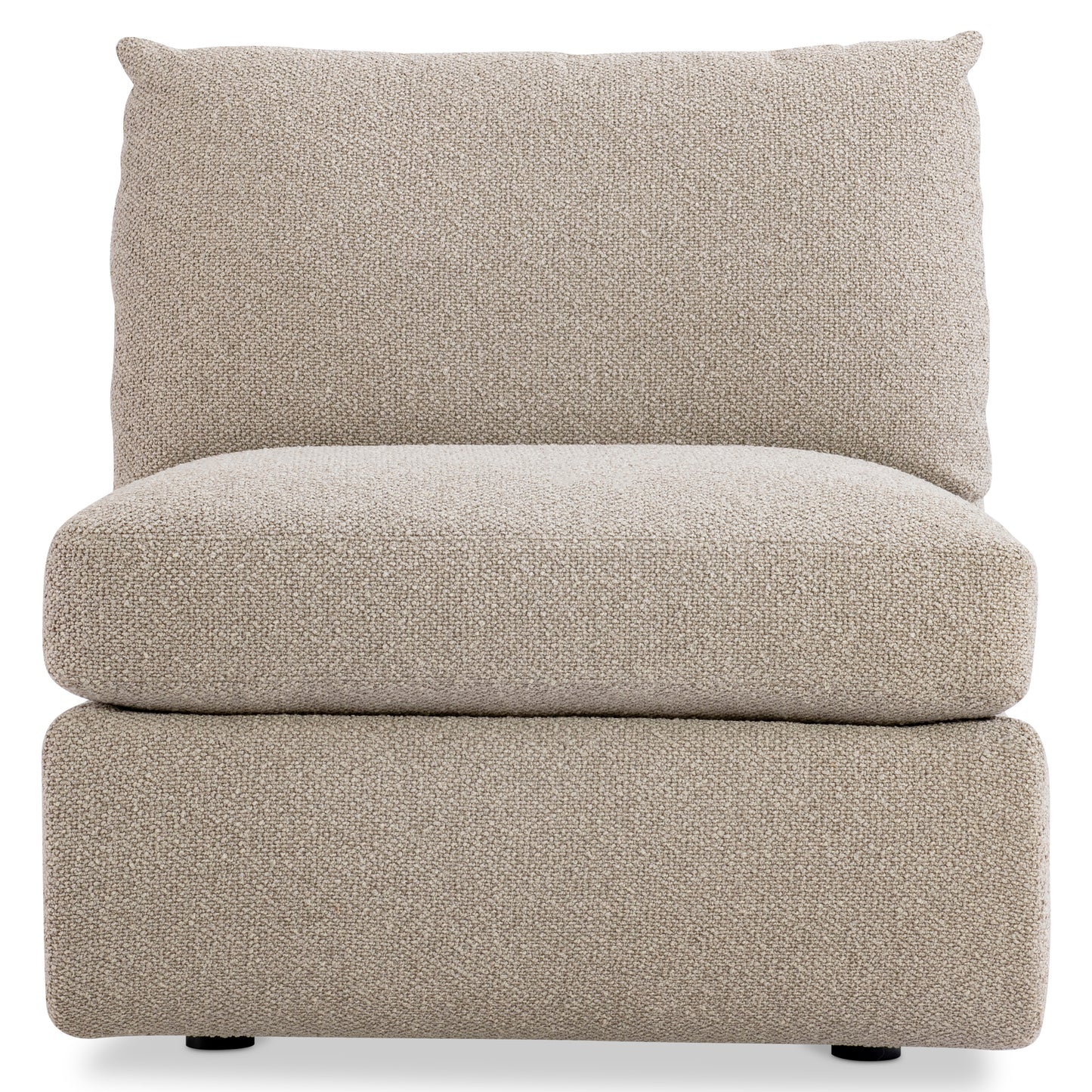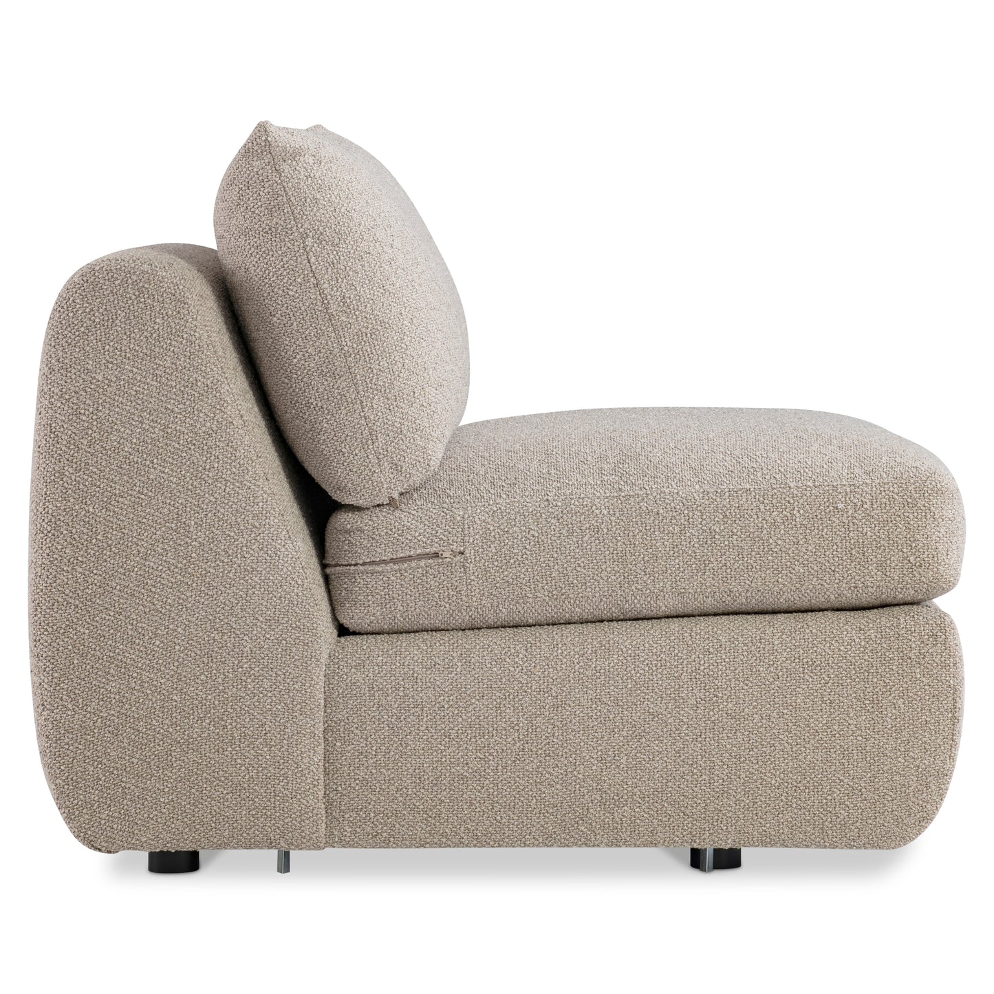 Bold curves craft a deep frame for the Jules armless chair. Comfort is clearly defined with a deep seat cushion and a plush back pillow. This chair can stand alone or be used as part of the Jules sectional.