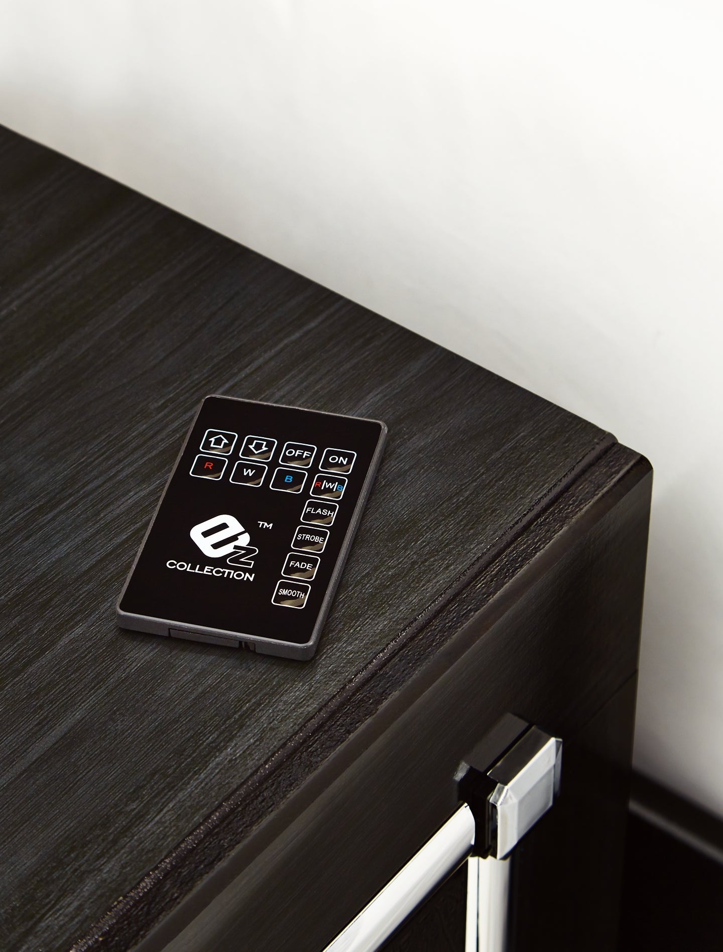 Rest easy. The luxurious look you’ve been dreaming of is yours for the taking—at a price sure to put you at ease. This bedroom package brings a sense of old Hollywood with a contemporary flair. The set’s deep, dark finish and faceted chrome-tone accents exude Hollywood-chic style to the max. The bed’s padded windowpane stitching on sleek, black upholstery, in addition to LED lighting, infuses a sumptuous look that’s upscale and indulgent. A wireless remote allows you to control the color and brightness to suit the mood. The dresser’s faux alligator panels and smooth-gliding drawers are sure to entice those with refined taste, making this set a contemporary masterpiece.