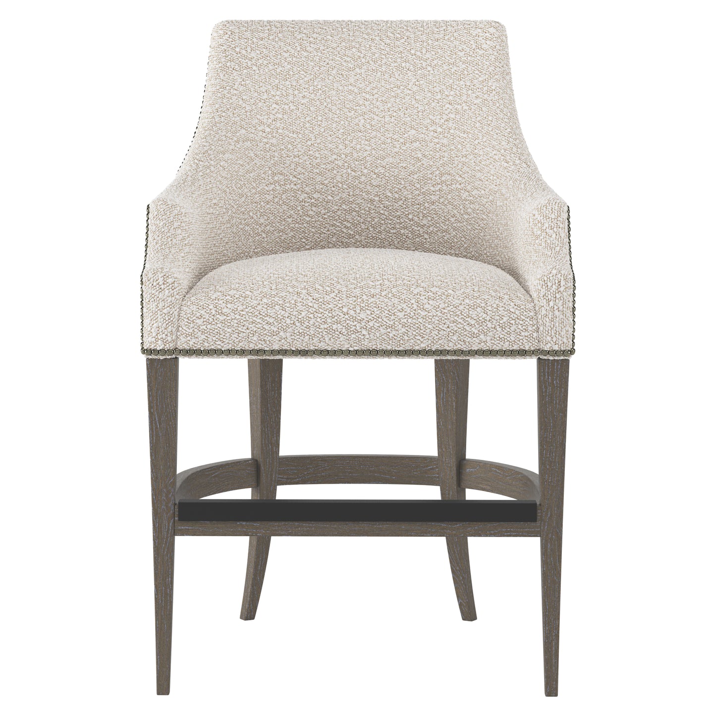 Curved legs available in three finishes and a fully upholstered back and seat define the elegant Keeley counter stool. Nailhead trim under the seat and along the arms add to the chic, sophisticated look.