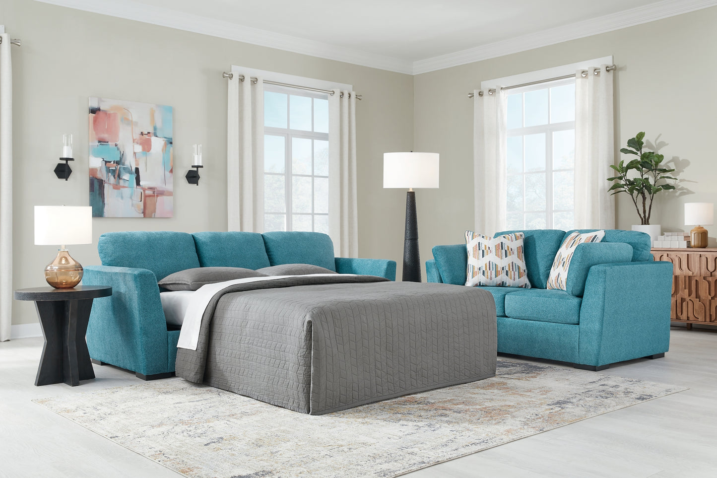 You want your home to reflect your modern, trendy eye for design. This sleeper sofa is here to help. Bold, bright and beautiful, it adds a fashion-forward pop of color to your living room. Velvet-like upholstery and matching bolster pillows keep comfort at top of mind. And when overnight guests drop by, a built-in queen mattress effortlessly accommodates. How’s that for fresh style and functionality?