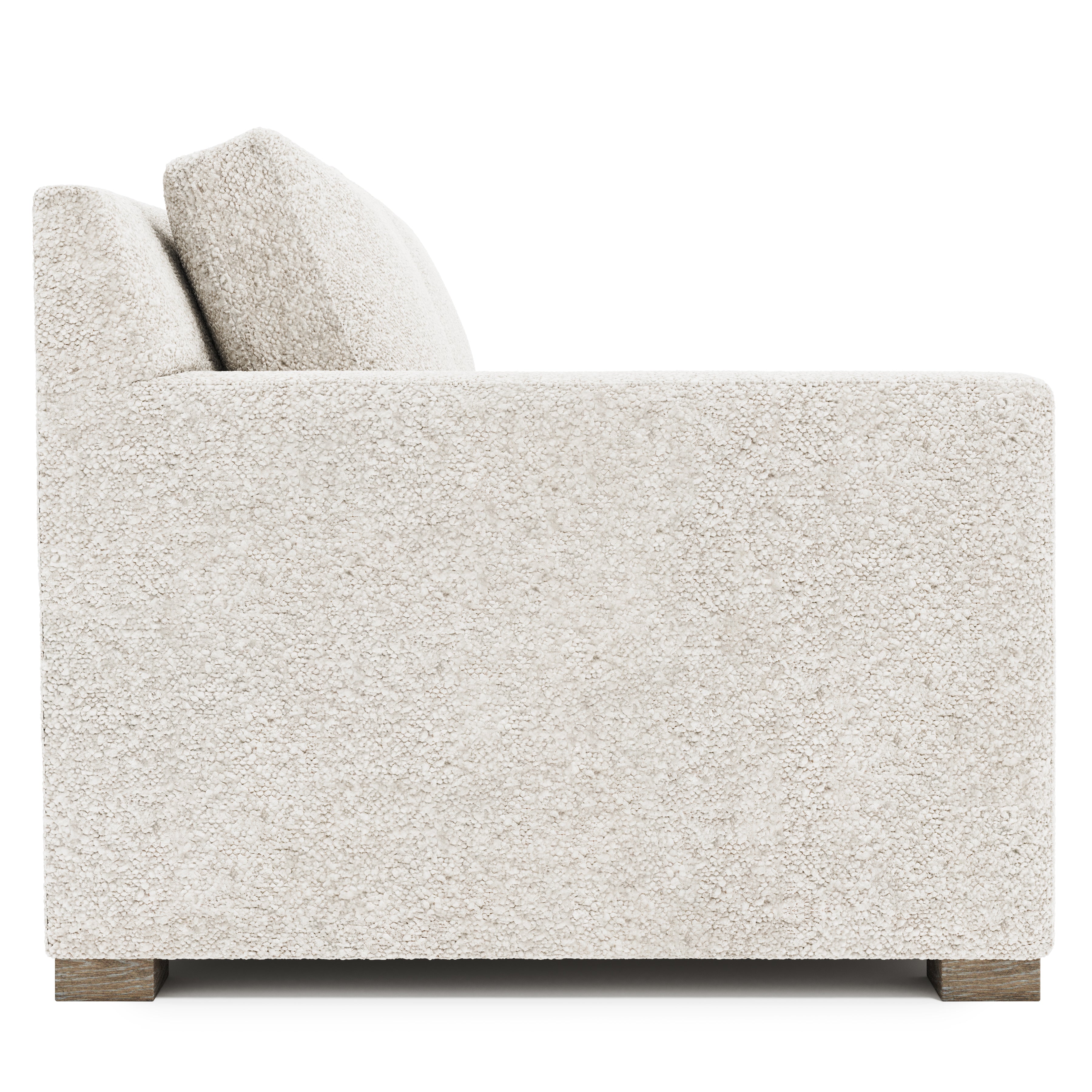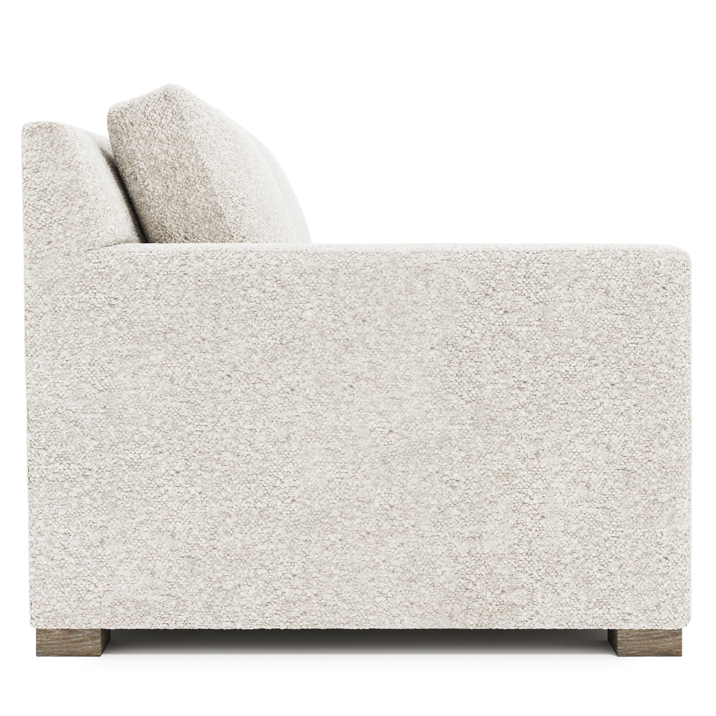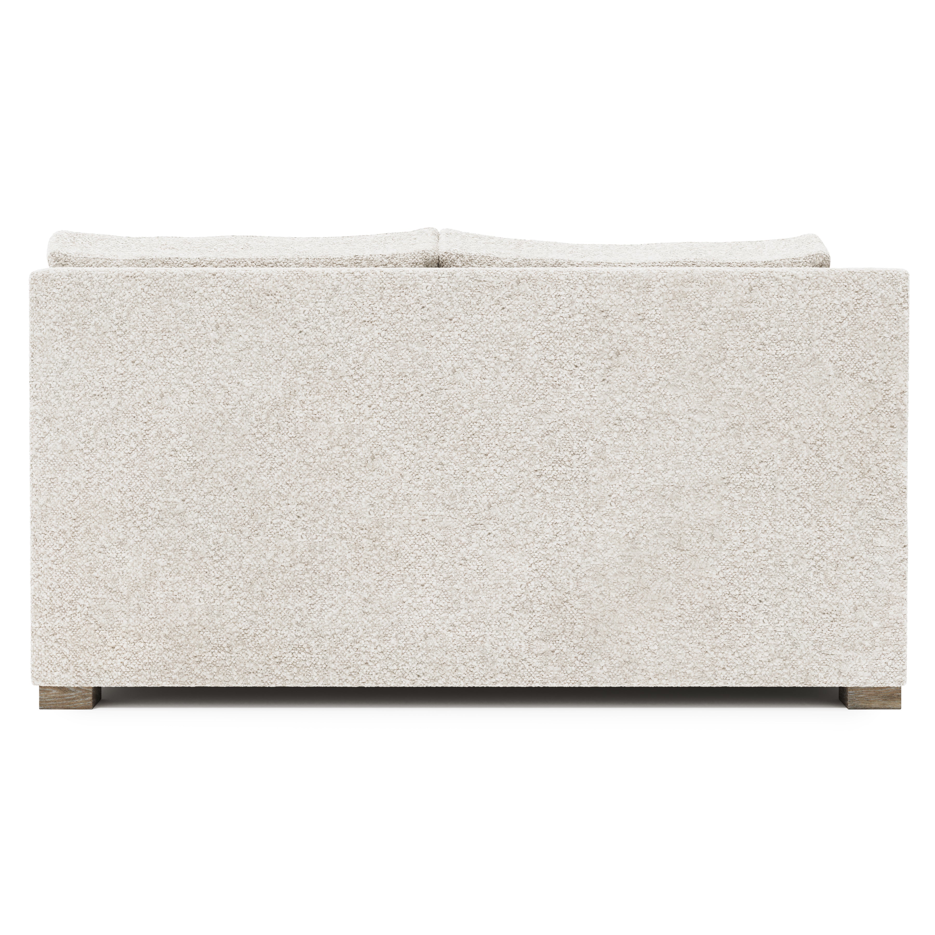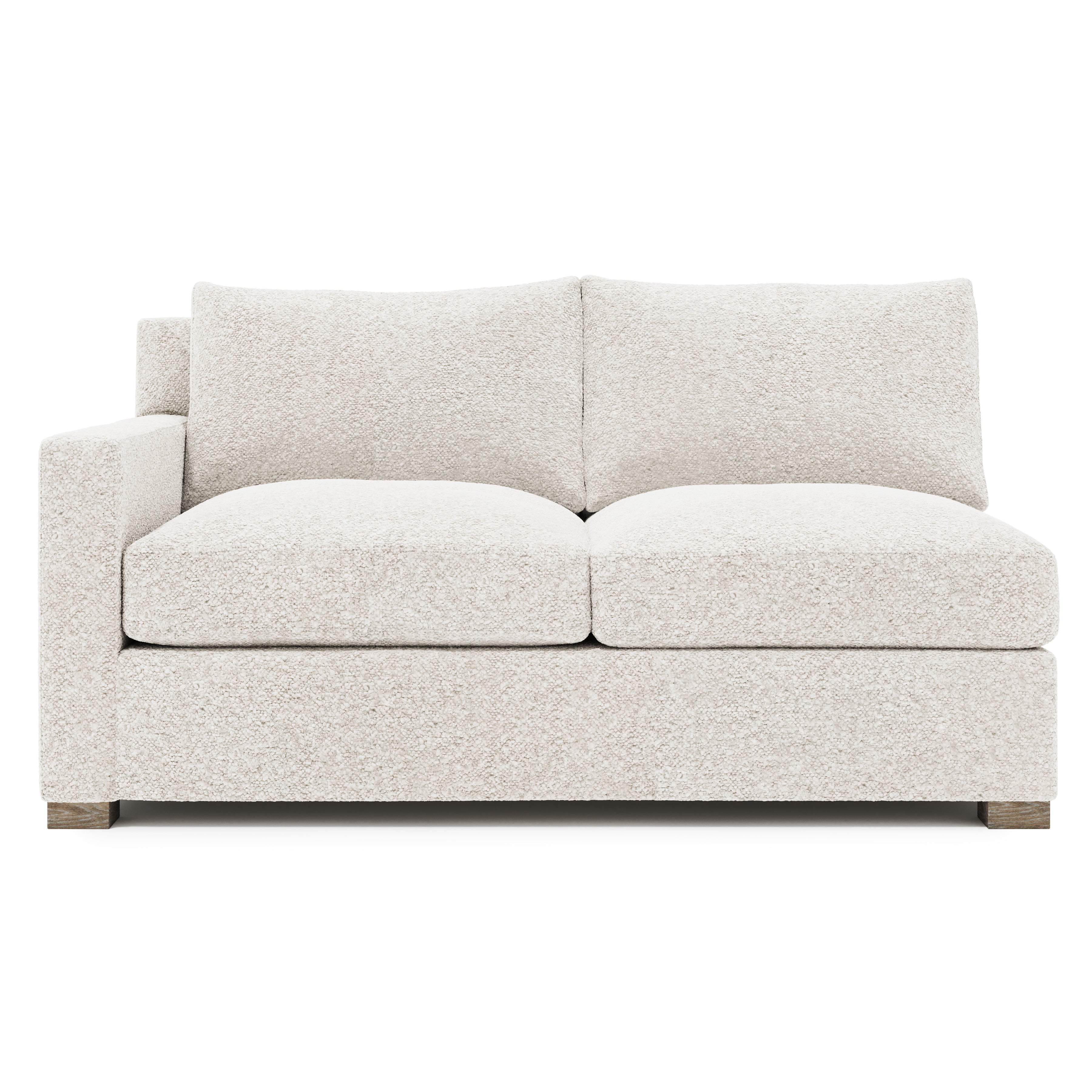With gracious scale and a simple modern aesthetic, the Kelsey left arm loveseat offers luxury and style. The linear design features a track arm and block feet for a clean, contemporary look. Plush down cushions and fiber back cushions soften the lines, promising unprecedented comfort.